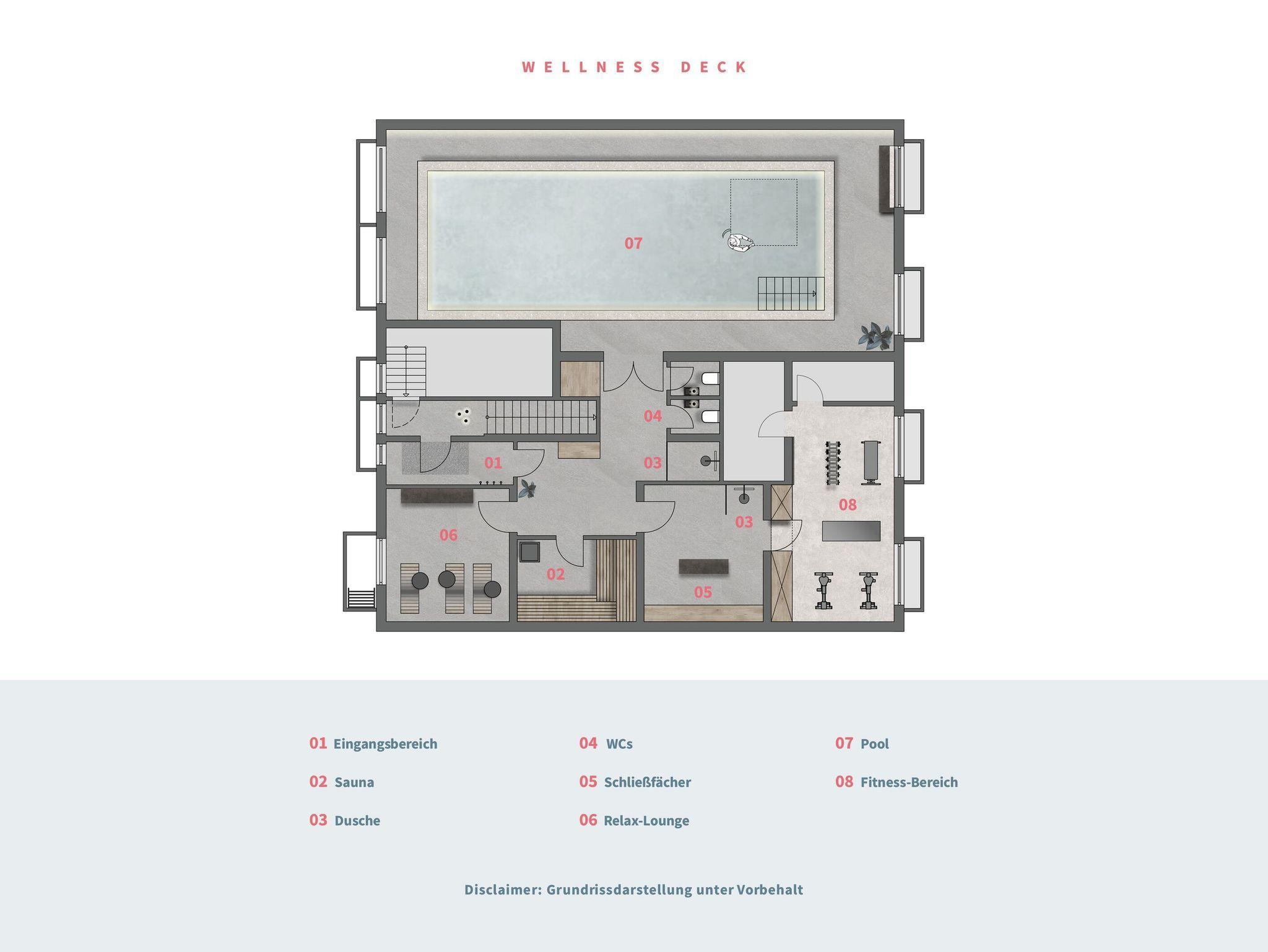 Sport oder Wellness, was ist Ihre Passion? Als unser Gast haben Sie die Möglichkeit unseren hochmodernen 200 qm großen gemeinschaftlichen Pool- und Saunabereich in Dock 6d, kostenfrei zu nutzen. Neben 1 Laufband, 1 Bike, 1 Rudergerät, verschiedenen Gewichten und dem 12 x 4 m großen Pool erwarten Sie hier auch Liegen im Loungebereich sowie eine moderne Sauna, die gerade an kühleren Tagen zur optimalen Entspannung beitragen kann.