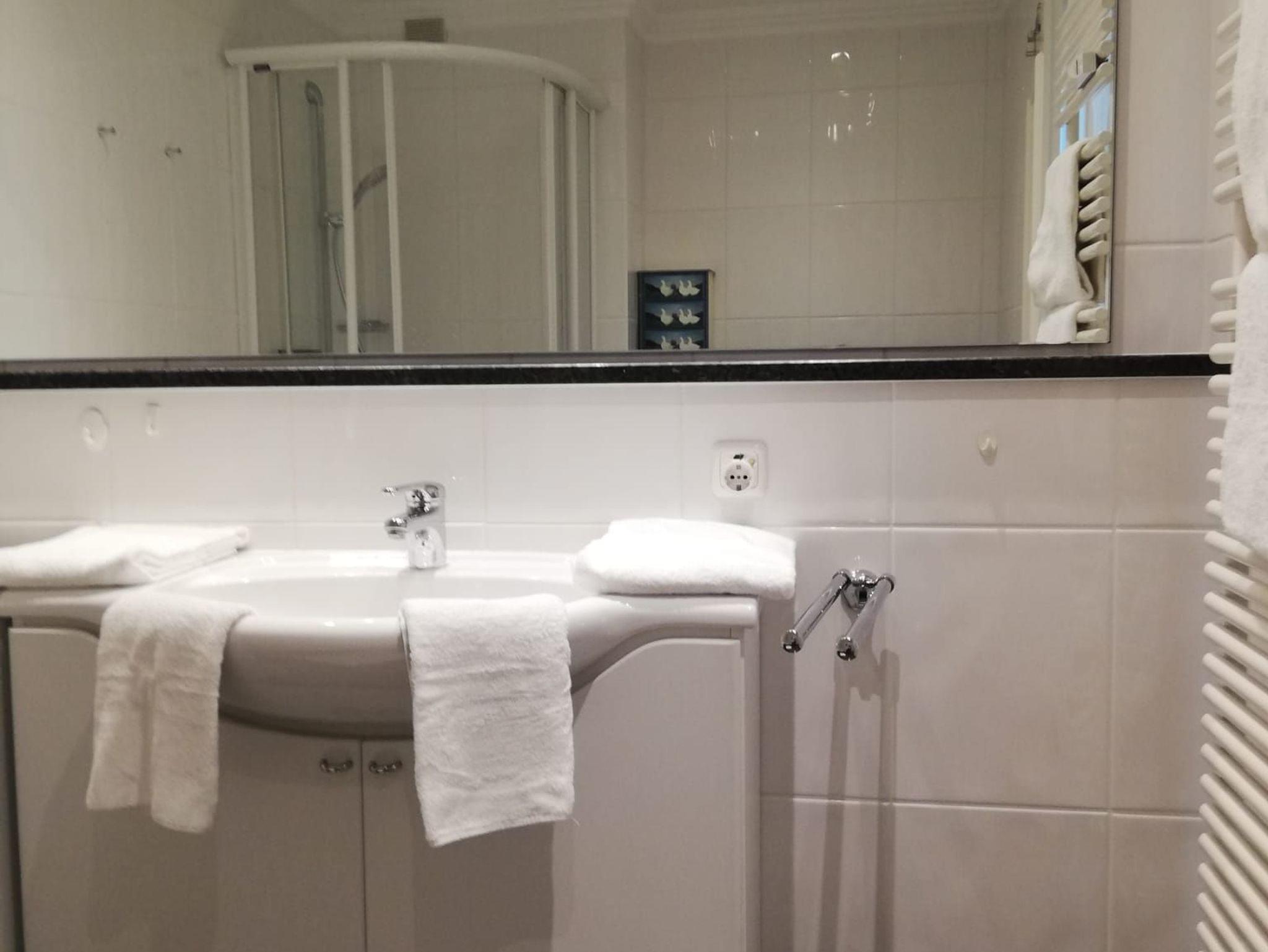Von hier hat man direkten Zugang zum modernen großzügigem Duschbad/WC mit Kosmetikspiegel und Fön.