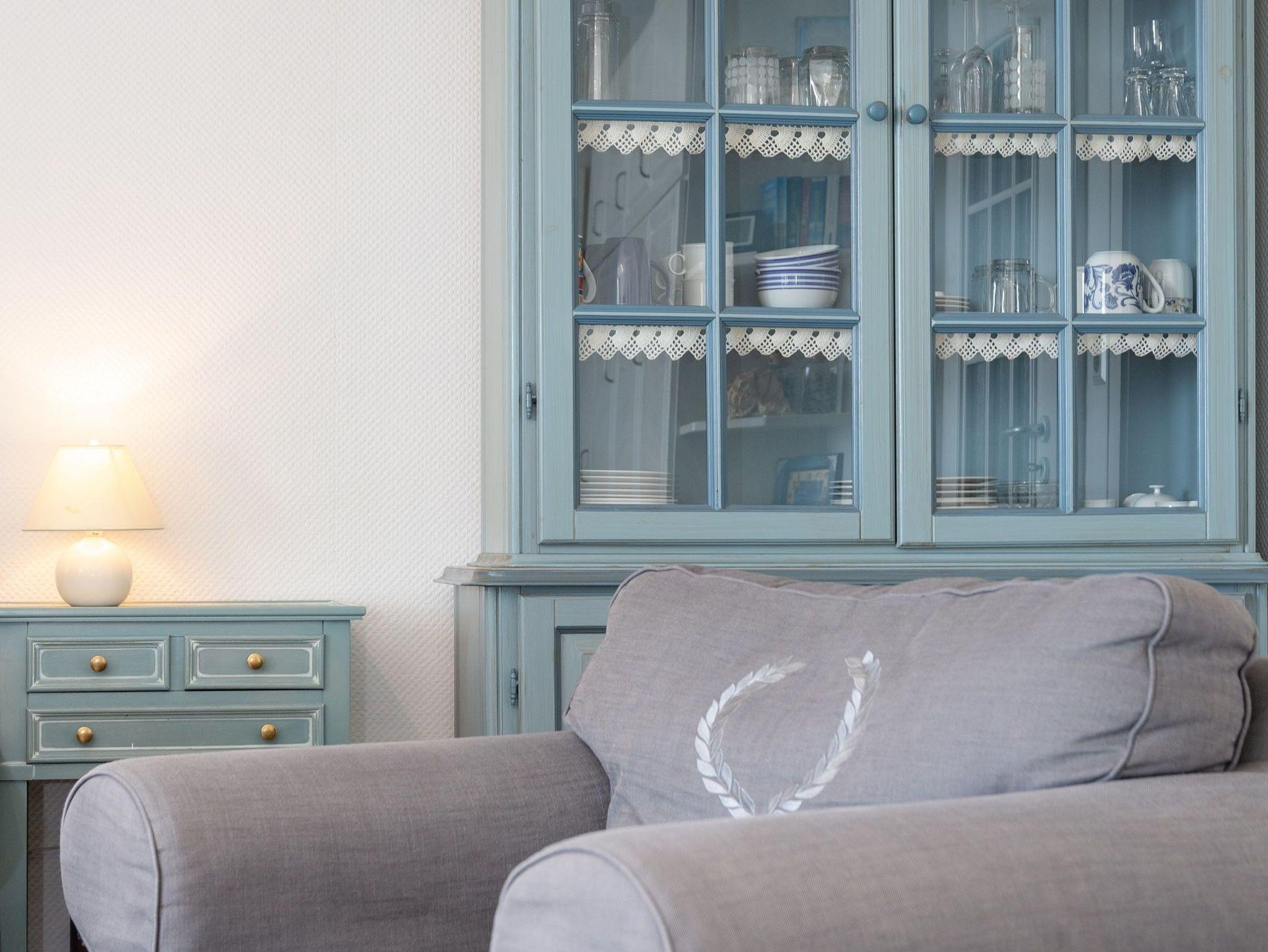 Der Wohnraum besteht aus einer Sitzgarnitur (Drei-Sitzer-Couch und Sessel), einem Doppelschrankbett, einem Essplatz, einem Sat-Flachbild-TV, einer Radio/CD-Anlage und einem Telefon.