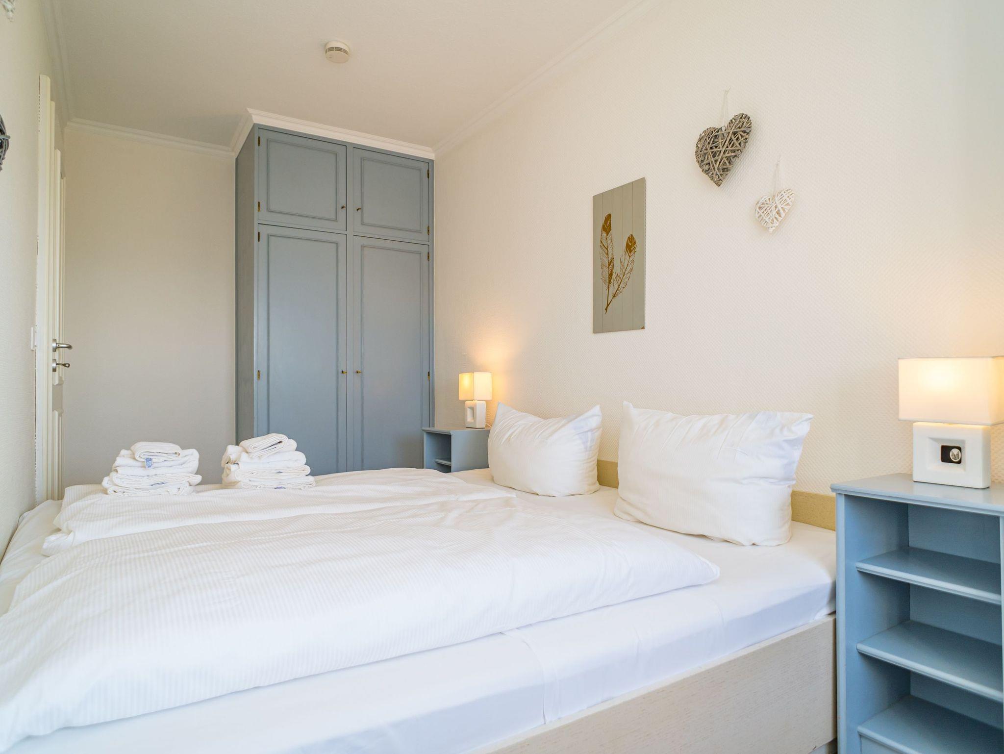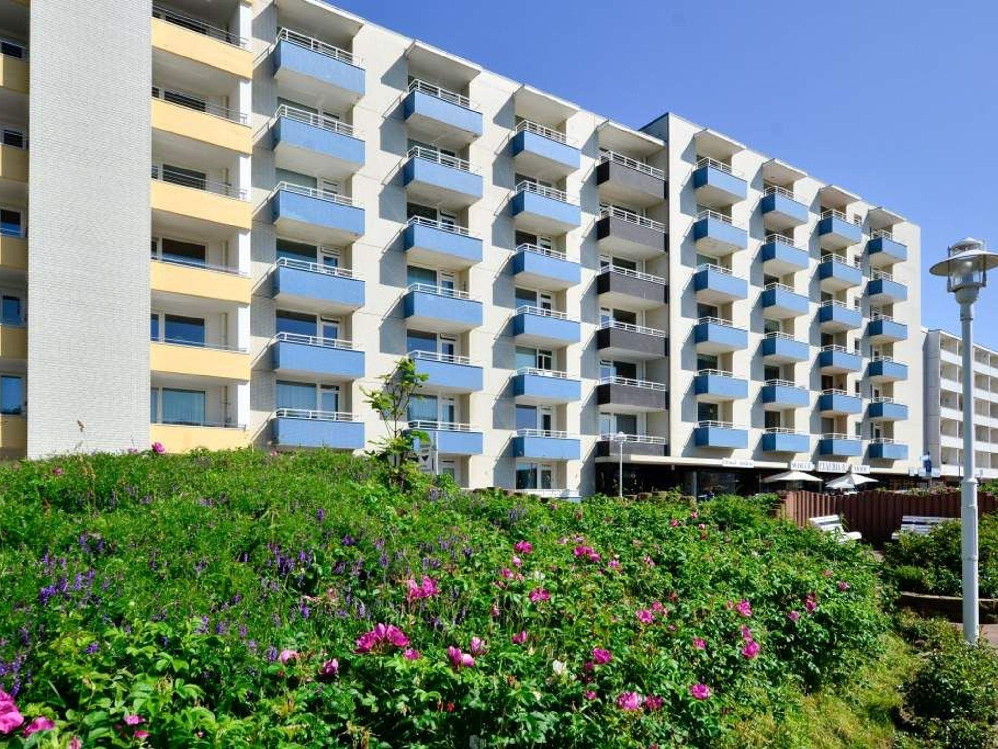 2-Zimmer-Nichtraucher-Ferienwohnung (ca. 50 qm) in der 5. Etage mit Meerblick und Westloggia (Seeseite, mit Balkonmöbeln und Auflagen) für max. 4 Personen.