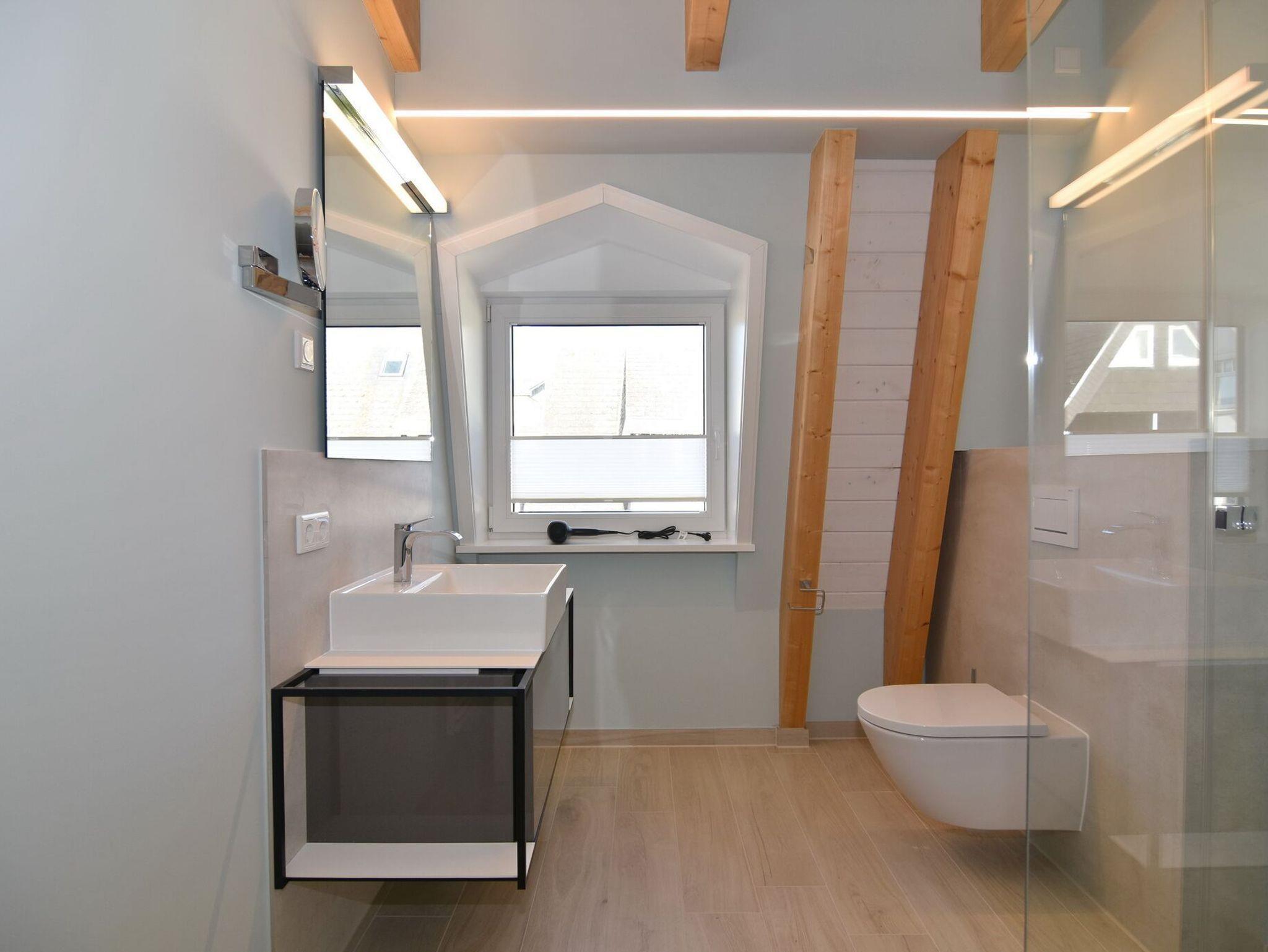Moderne 2-Zimmer-Wohnung in zentraler Lage Westerlands mit Balkon, Wellnessbereich und nur 400 m zum Strand.
