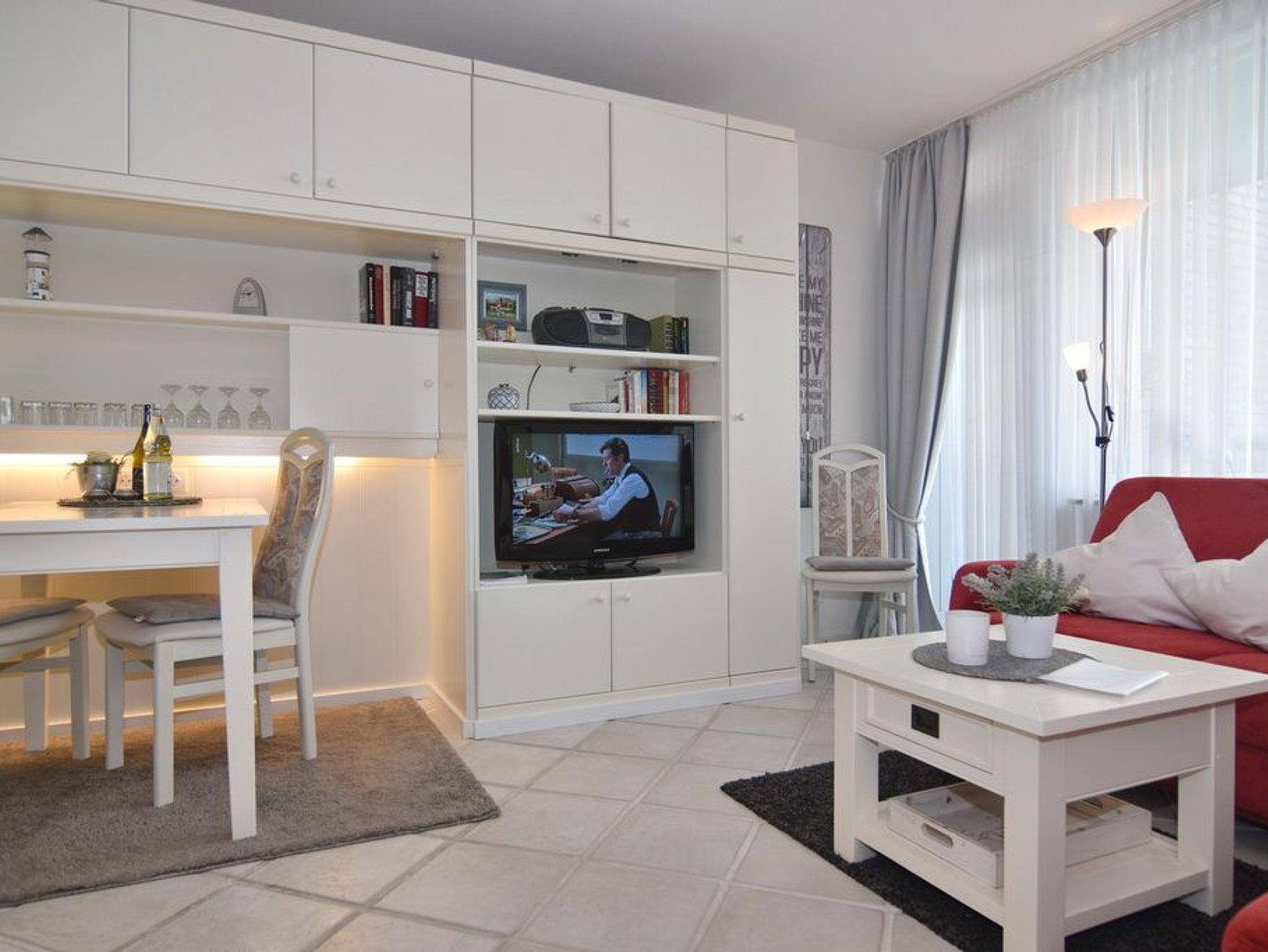 1-Zimmer-Ferienwohnung, ca. 35 qm; Nichtraucher-Whg. Zentrale Lage u. nur 200 m zum Strand![nbsp][nbsp]Wohn-/ Schlafraum mit Doppelbett (2x80x200), Eckcouch, Nordbalkon mit Balkonmöbeln, Radio und Flat-TV, Eßplatz, im Flurbereich weiße Friesenküche mit Geschirrspüler und Microwelle, Dusche / WC. Münz-Waschmaschine und Trockner im Keller, Tierhaltung ist nicht gestattet! v PKW-Garagenstellplatz /Durchfahrtshöhe 1,80m (79/01) kann kostenpflichtig dazu gebucht werden, ist direkt im Haus. Bitte bei der Buchung mitbestellen, ansonsten kein Anspruch