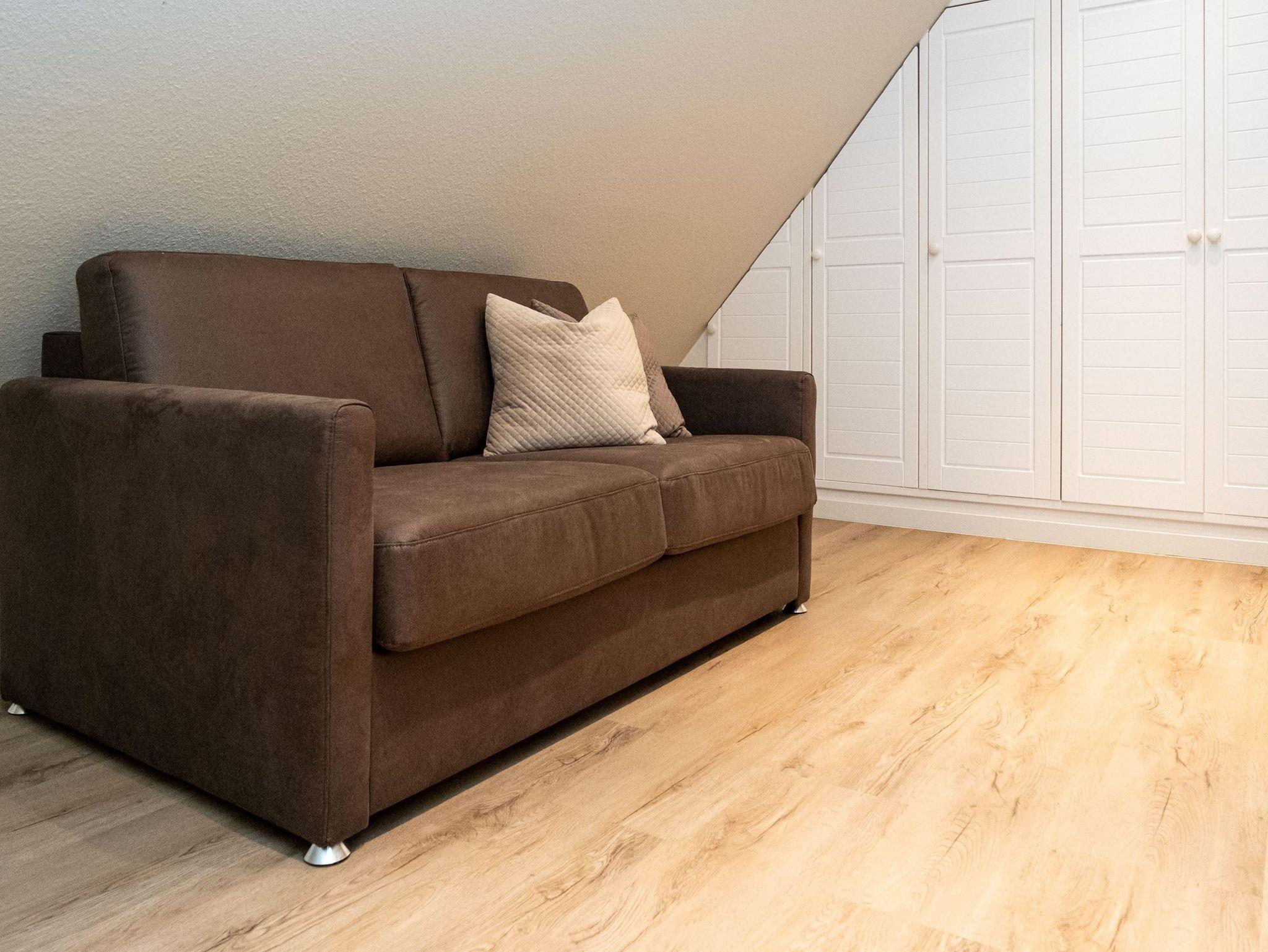 Die Raumaufteilung mit 2 Schlafzimmern, davon eines im 1. OG mit bequemen Doppelbett und einem weiteren Schlafzimmer (mit Doppelbett und einer Schlafcouch), welches über eine Treppe innerhalb der Wohnung erreichbar ist, macht diese Unterkunft ideal für Familien oder Gruppen. Das Wohnzimmer verfügt über eine große, sehr bequeme Couch und einem großzügigen Essplatz. Die Küchenzeile verfügt über einen Backofen, 4-Platten Herd, Geschirrspüler, Mikrowelle, Kaffeemaschine, Toaster und Wasserkocher. Das Badezimmer ist mit einer Dusche und WC ausgestattet. Die moderne und komfortable Einrichtung lässt Sei den Alltag vergessen. In dieser Unterkunft stehen erholsamen Ferien nichts im Wege.