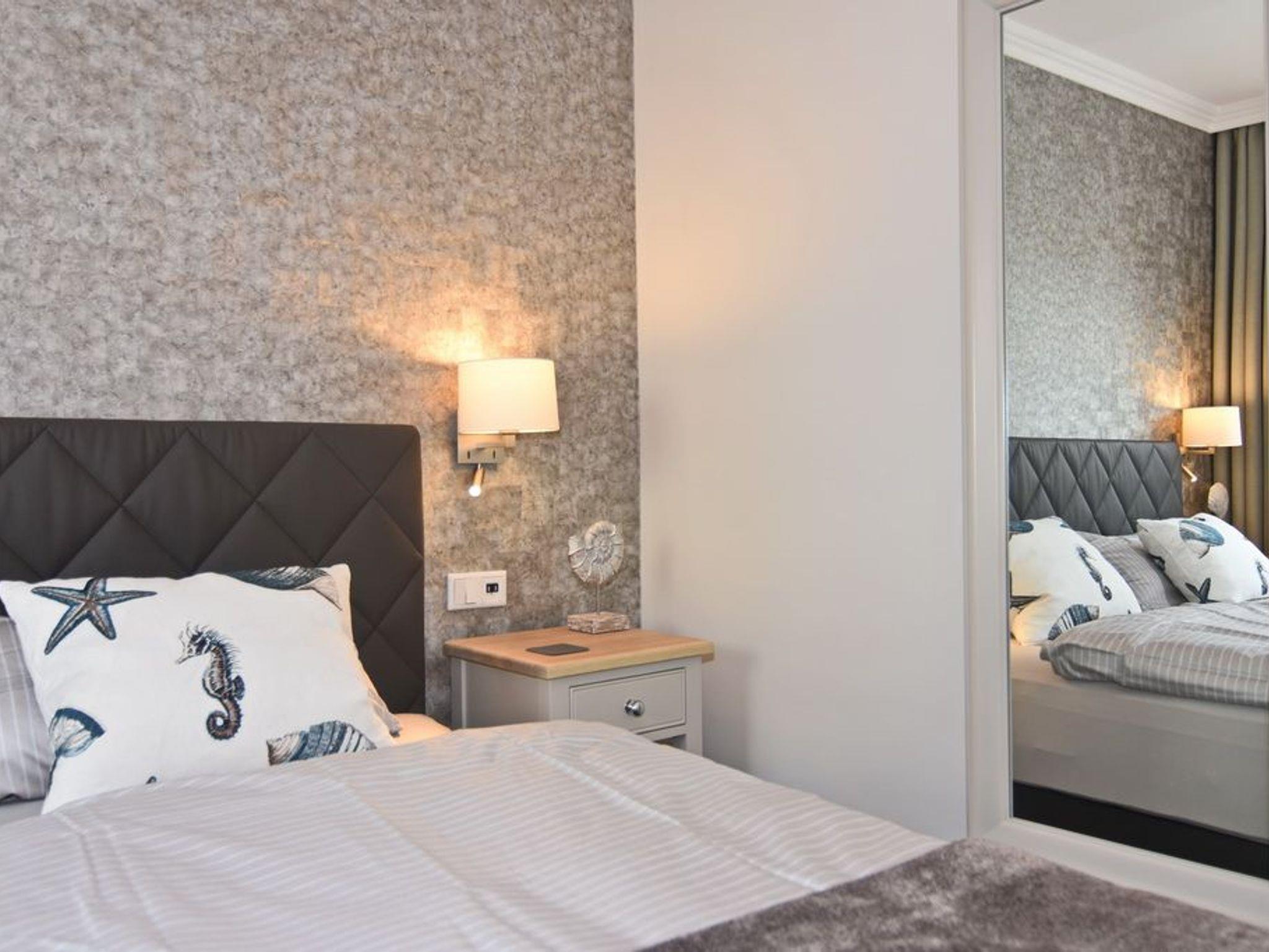 Genießen Sie hier eine exklusive und großzügige 2-Zimmer-Wohnung in stadt- und strandnaher Lage - die Wohnung befindet sich im 2. OG des Hauses. Die Wohnung verfügt über einen hellen Wohnraum mit Designboden, offener Küche mit Kochinsel und Zugang zum großen Südbalkon. Im Wohnbereich gibt es neben der Essgruppe eine Sitzecke mit Schlafcouch (Liegefläche 160x200). Vom Flur aus gelangen Sie in das Schlafzimmer mit Doppelbett (2x100x200) und Badezimmer mit ebenerdiger Dusche. Die Wohnung verfügt über einen Internetzugang und Safe. Im Haus steht Ihnen ein Pkw-Stellplatz Nr. 25 in der Tiefgarage, ein Fahrradabstellraum und eine Waschküche gegen Gebühr zur Verfügung. Tierhaltung und Rauchen sind hier nicht gestattet. Bettwäsche und Handtücher sind zur Anreise aufgezogen.