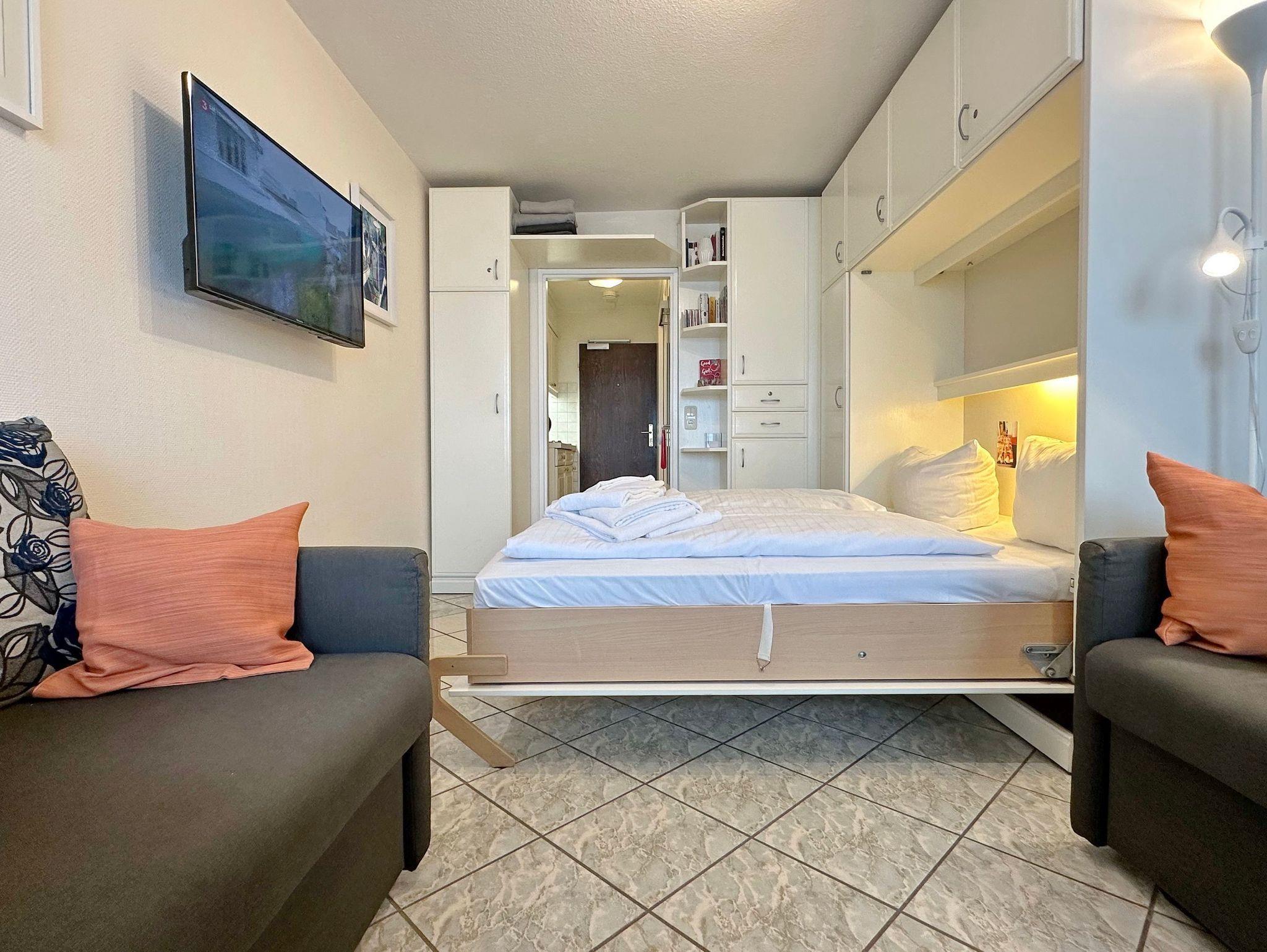Helles 1-Zimmer-Apartment mit Meerblick und Balkon in Westerland auf Sylt, nur 100 m vom Strand entfernt.