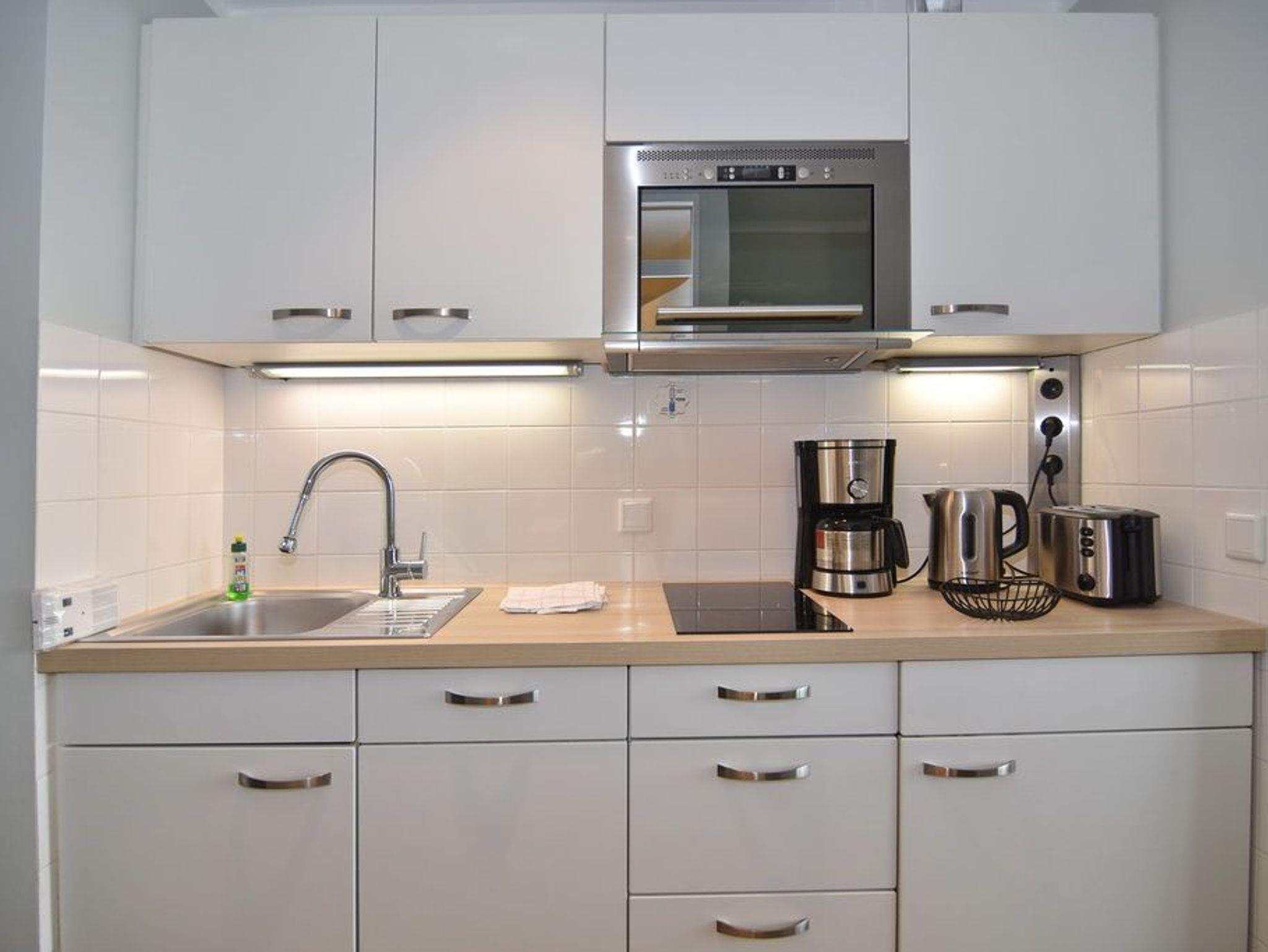 Modernes 1-Zimmer-Appartement im Haus Metropol, 3. OG mit Ostbalkon und Balkonmöbeln, ca. 30 m², Nichtraucher-Appartement. Wohn-/Schlafraum mit Doppelbett (Boxspringbett, 160x200) und Essplatz am Fenster, Sofa, Flat-TV, Radio und W-LAN ( ohne Gewähr ), Küchenzeile im Flurbereich mit Mikrowelle, Geschirrspüler und 2 Platten-Ceranfeld, Duschbad/WC. Tierhaltung ist nicht gestattet. Bettwäsche und Handtücher sind zur Anreise aufgezogen. Ein PKW-Stellplatz kann kostenpflichtig zugebucht werden.