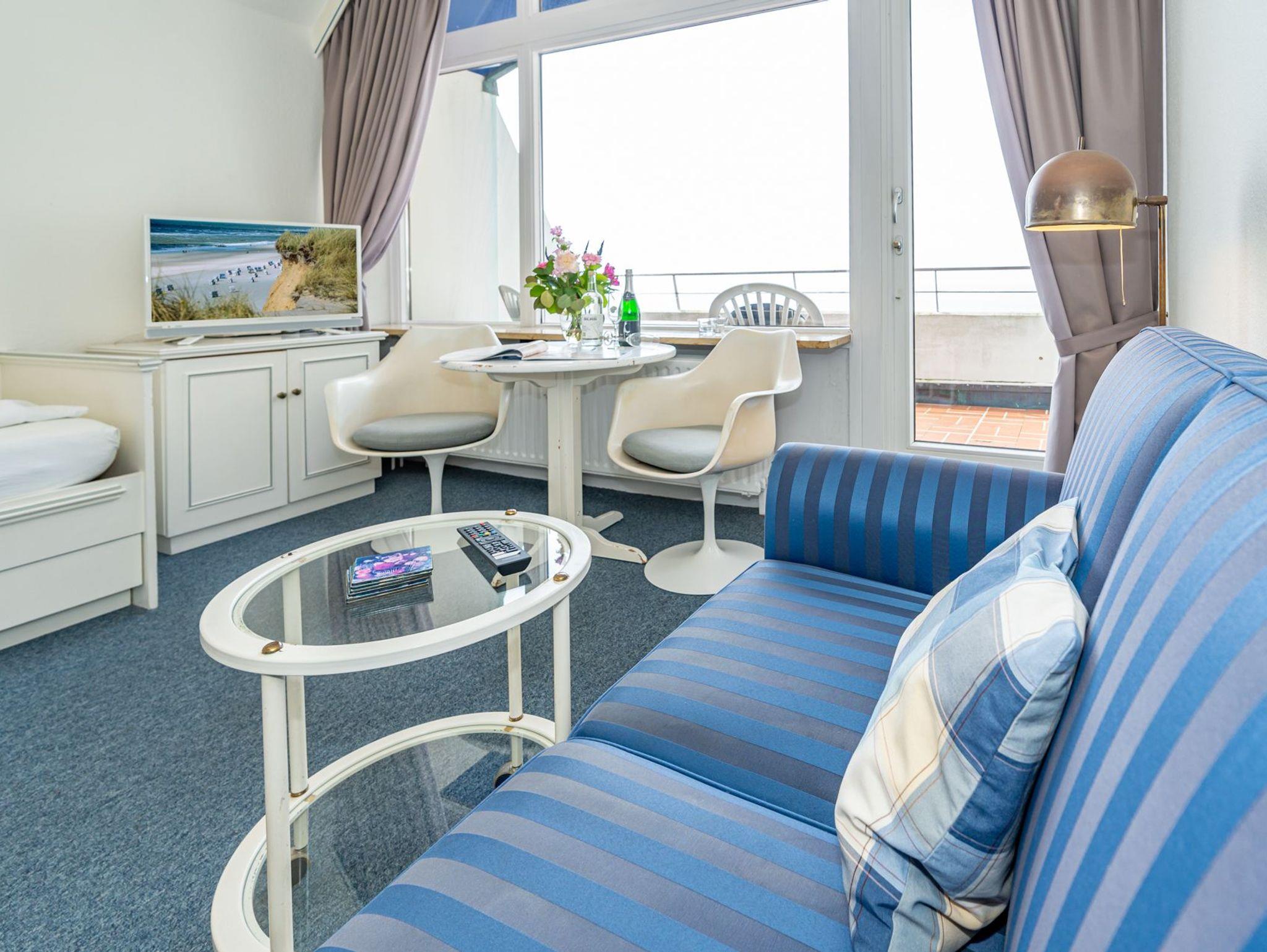 Moderne 1-Zimmer-Ferienwohnung in Westerland mit traumhaftem Meerblick und Westbalkon zur Entspannung bei Sonnenuntergang.