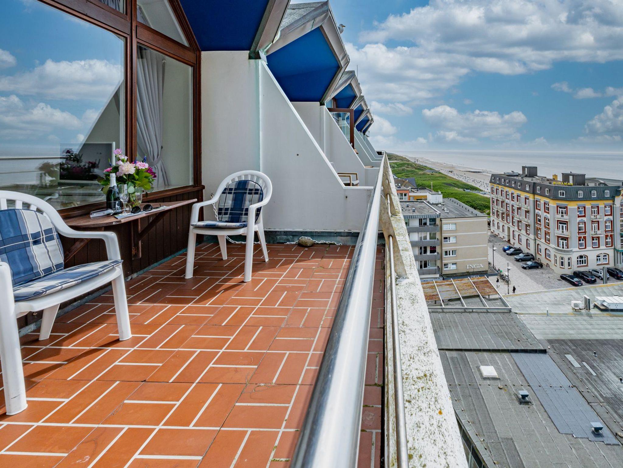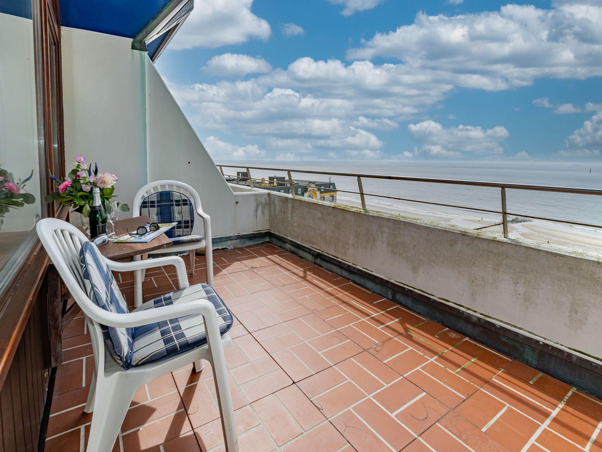 Ein Highlight ist der Westbalkon mit Nachmittagssonne, ausgestattet mit Balkonmöbeln und Auflagen ? perfekt, um bei Meeresrauschen zu entspannen und den Sonnenuntergang zu genießen.