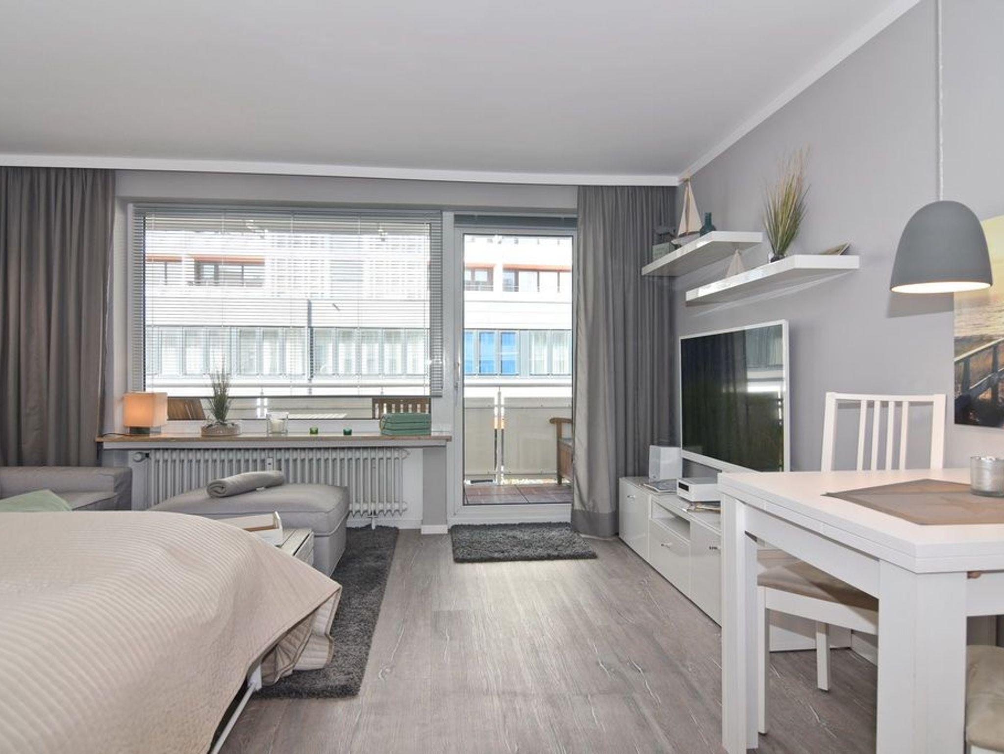 Moderne 1-Zimmer-Ferienwohnung in Westerland auf Sylt, strandnah und zentral gelegen, mit Balkon und offener Küche.