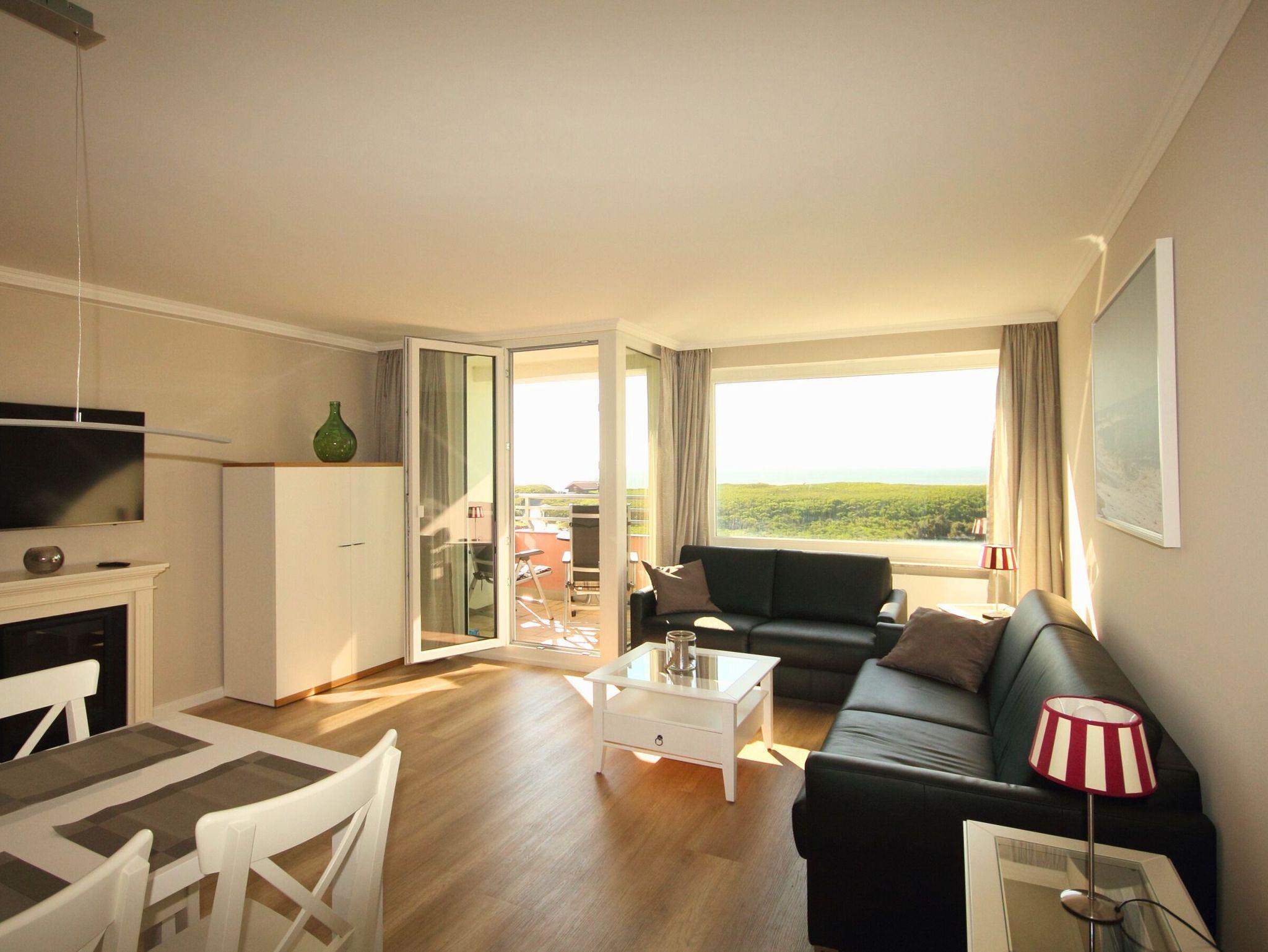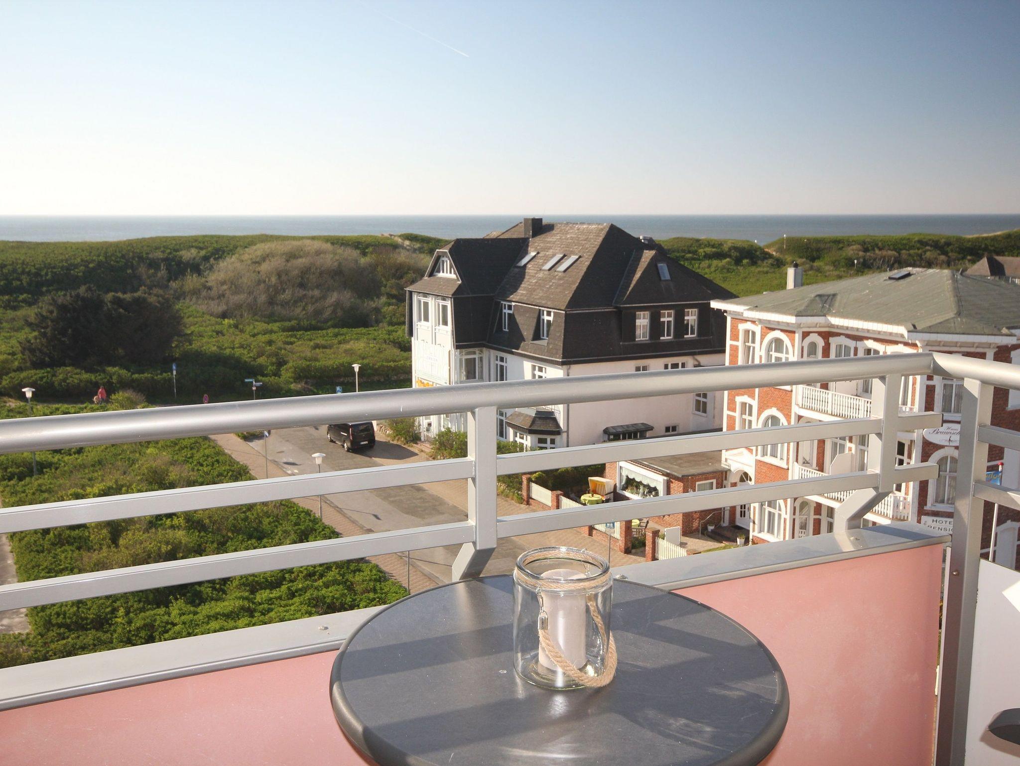 Exklusive 2-Zimmer-Ferienwohnung in Westerland mit traumhaftem Meer- und Dünenblick und Balkon im 5. Stock.
