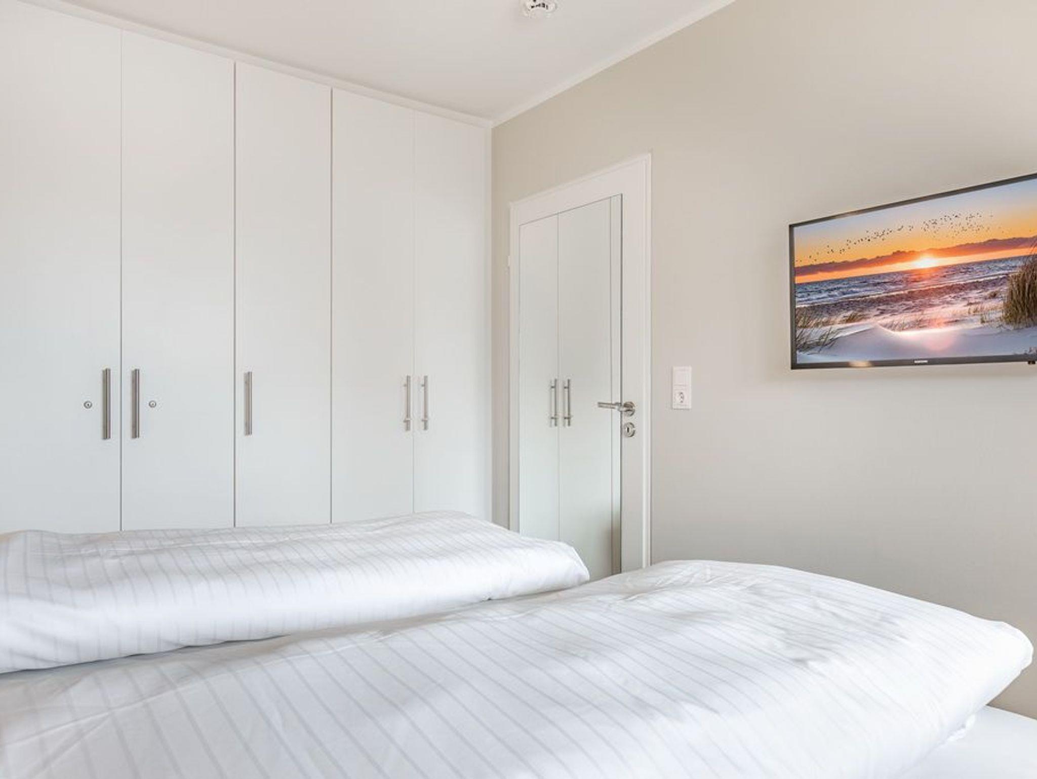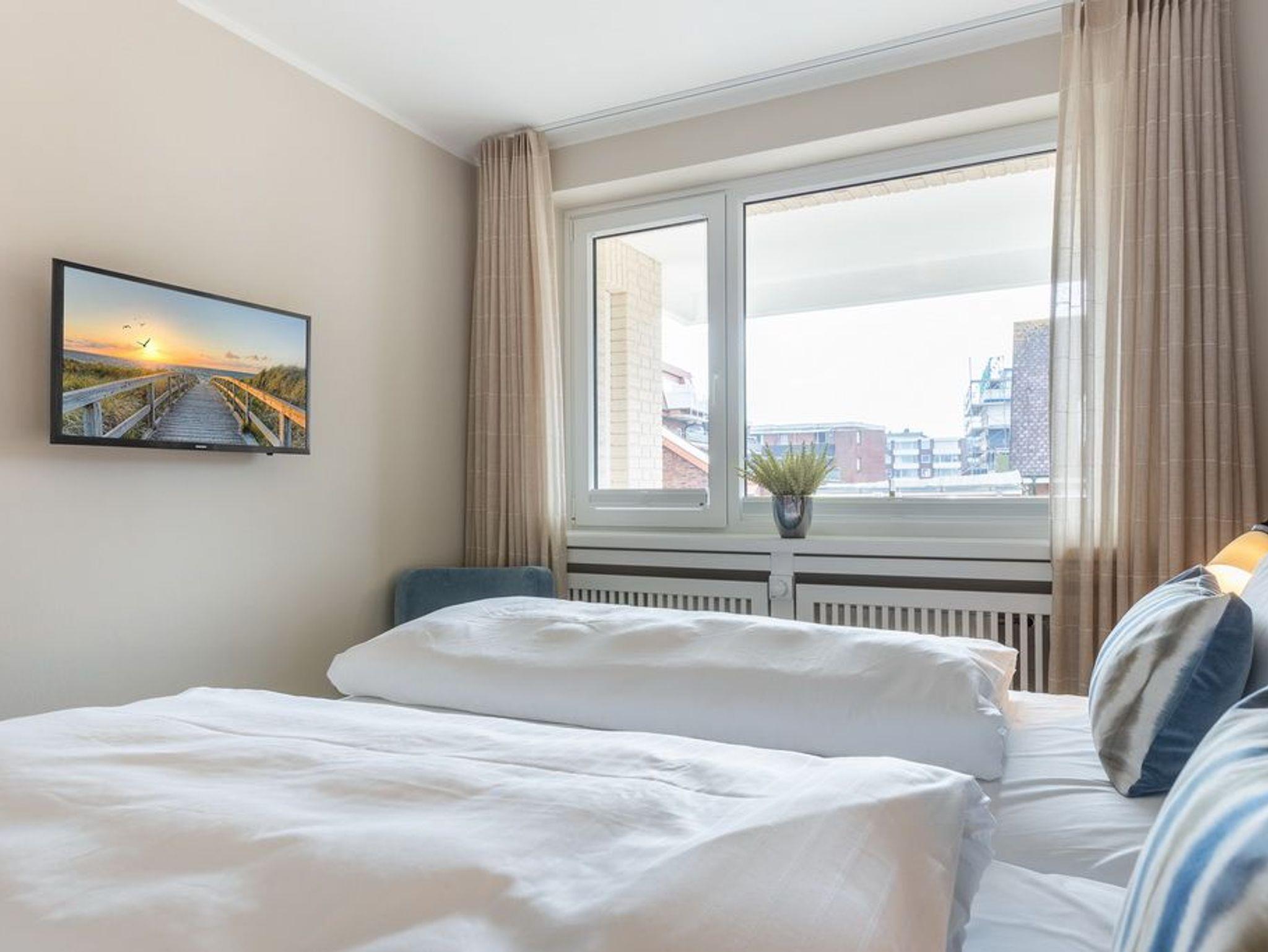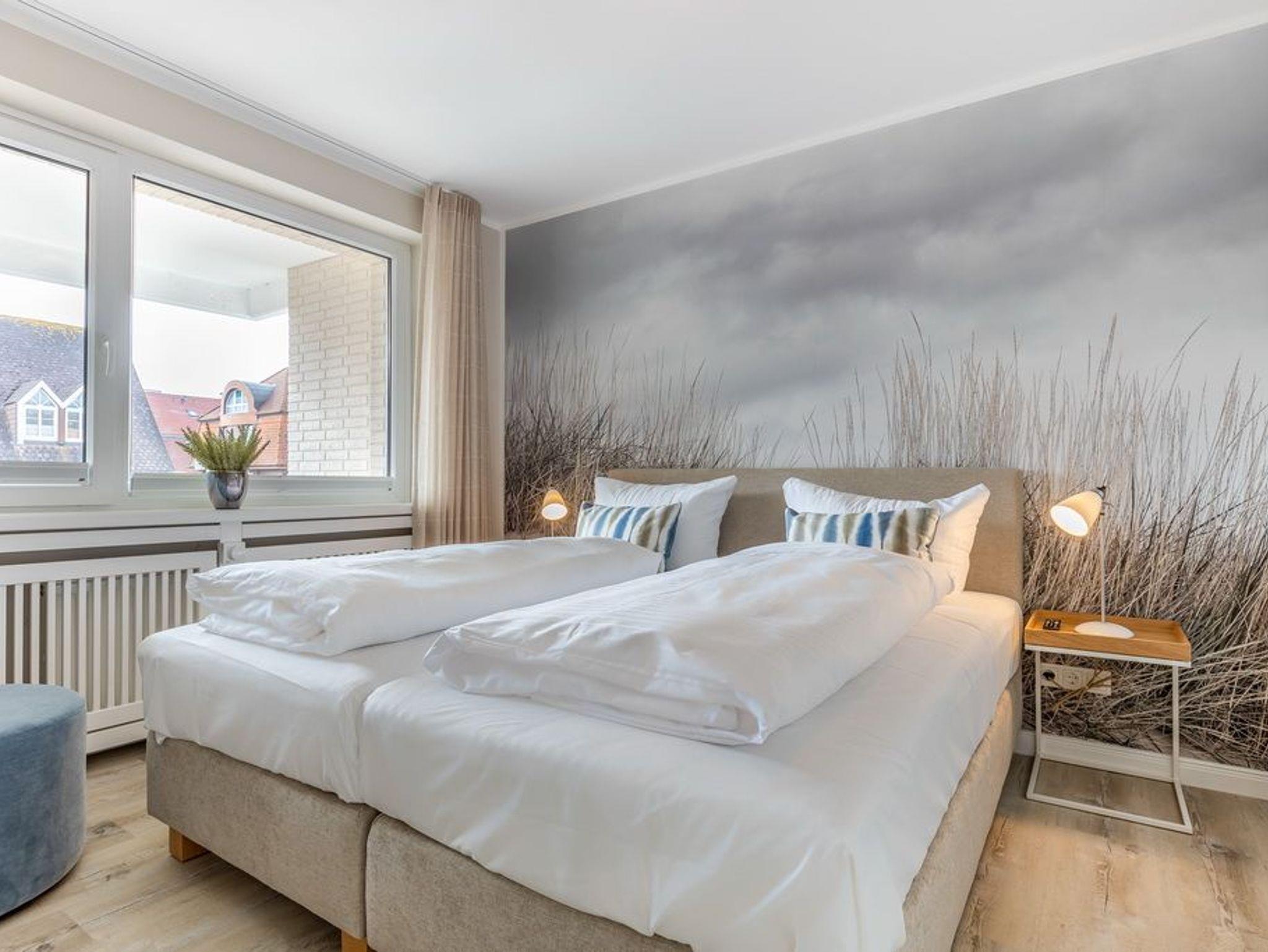 Neu gestaltete, moderne 3-Zimmer-Appartement im Haus Undine, ca. 58m², Hochparterre für max. 4 Personen in Strandnähe, Nichtraucher Appartement. Wohnzimmer mit Essplatz für 4 Personen, Couch und 2 Sessel, Flat-TV, Radio, W-Lan (ohne Gewähr), Tresor, sonniger Südbalkon mit Balkonmöbeln. Separate Küche mit Geschirrspüler, Backofen und Mikrowelle. 1 Schlafzimmer mit Boxspringbett ( 180x200 ), Flat-TV und Kleiderschrank, 1 Schlafzimmer mit Boxspringbett ( 160x200 ) und Kleiderschrank. Duschbad /WC mit Waschmaschine und Trockner. Das Appartement ist komplett mit Designboden ausgelegt. PKW-Stellplatz Nr. 36 ist inklusive und befindet sich auf dem Hof. Kein Fahrstuhl vorhanden. Tierhaltung ist nicht erlaubt. Bettwäsche und Handtücher sind zur Anreise aufgezogen.