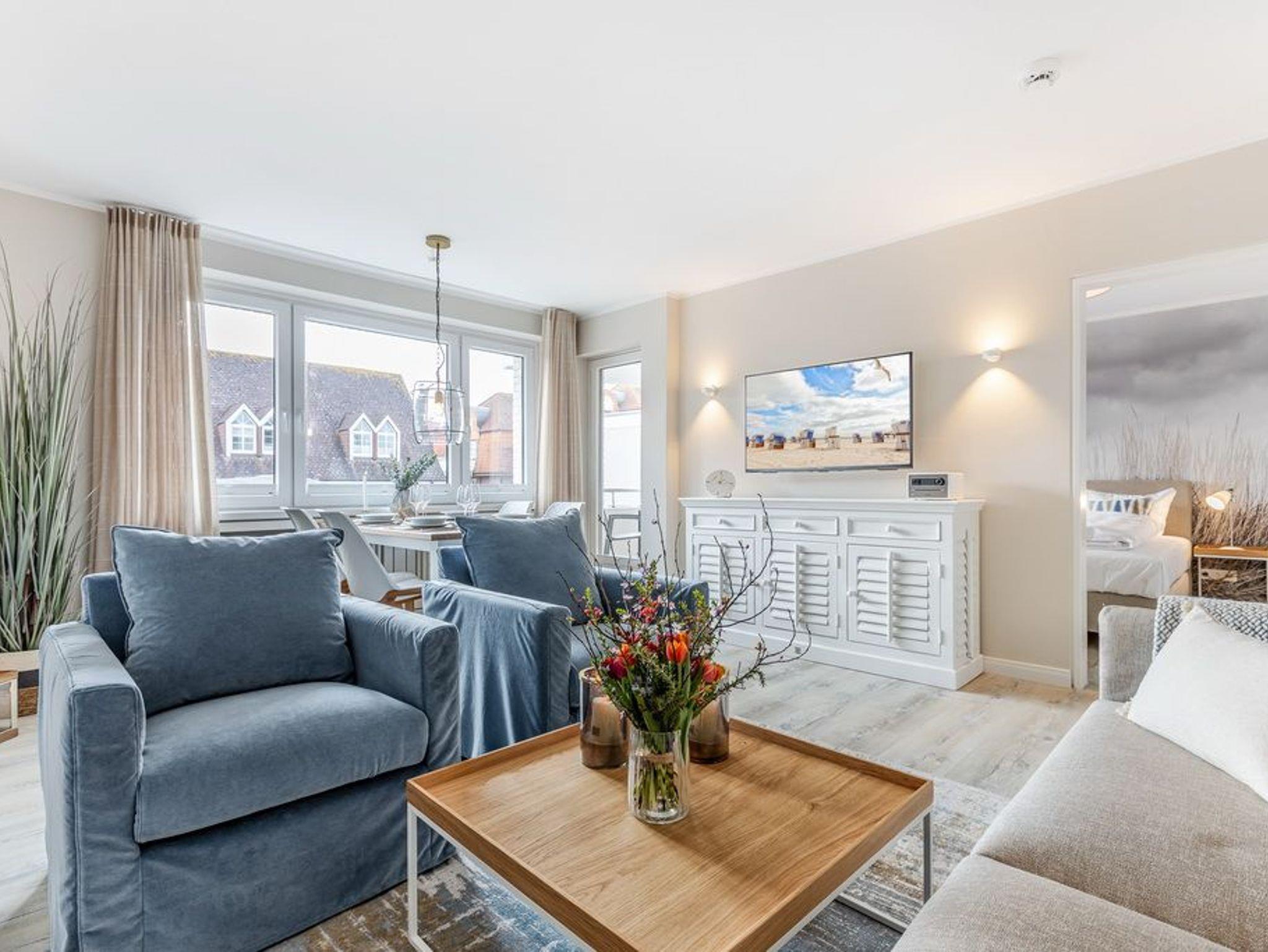 Modernes 3-Zimmer-Appartement mit Südbalkon nahe Strand in Westerland auf Sylt, ideal für bis zu 4 Personen.