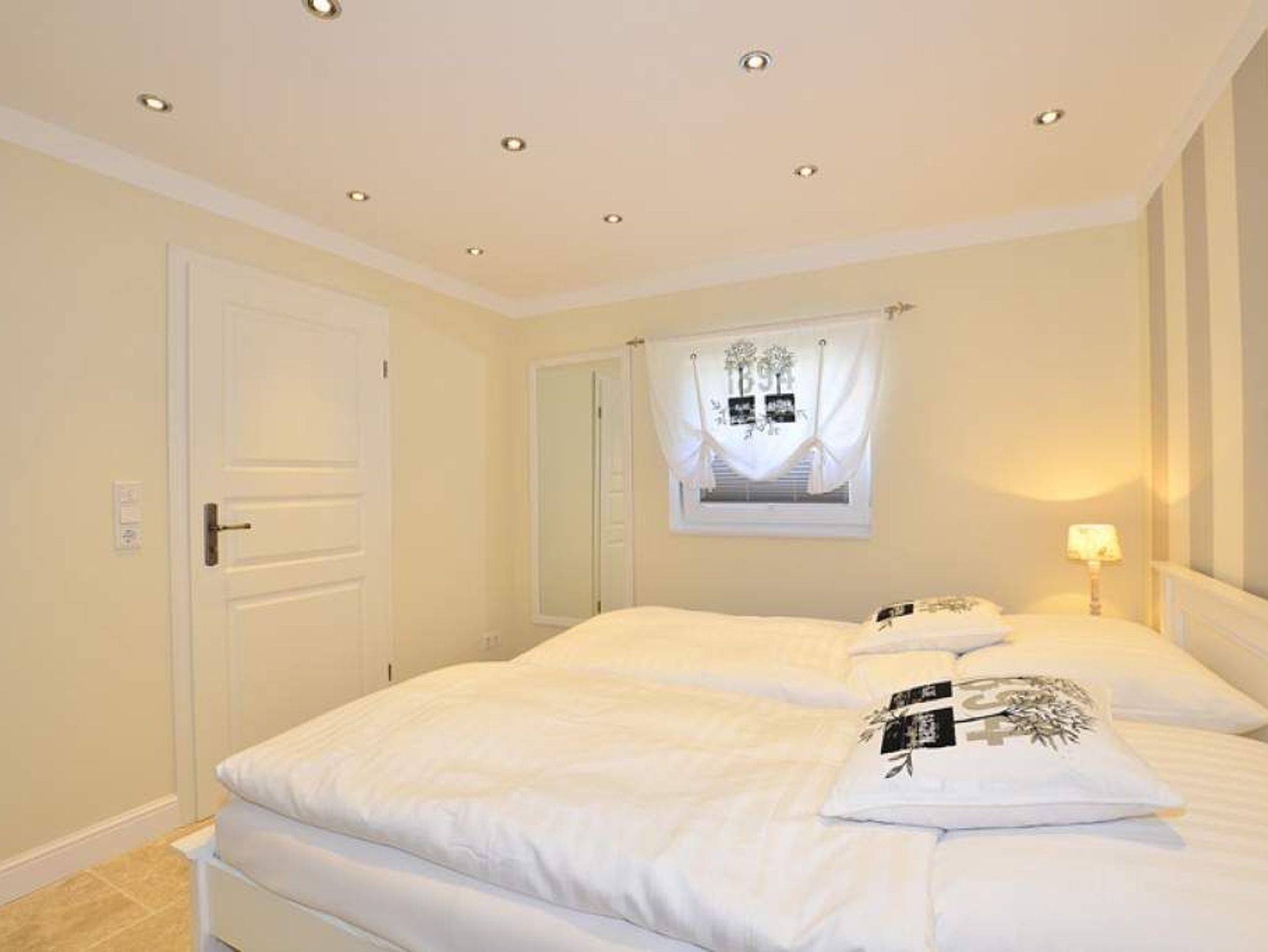 Vom Vorflur mit Garderobe gelangt man in das Wohn-/Esszimmer mit offener Küche (Geschirrspüler, Induktionskochfeld, Mikrowelle, Backofen, Kühlschrank, Kaffeemaschine, Nespresso Kapselmaschine etc.). Das Wohnzimmer ist mit einer gemütlichen Couch, Flachbild-TV, W-Lan und Telefonflat ins Deutsche Festnetz (Handynummern gesperrt) ausgestattet. Im großen Doppelschlafzimmer befinden sich ein Doppelbett (1,80 x 2,00 m, Bettdecken in Überlänge). Das kleinere Schlafzimmer verfügt über ein 1,40 x 2,00 m breites Bett (Bettdecken in Überlänge). Im geräumigen Duschbad mit großem Waschtisch und WC befindet sich außerdem eine Waschmaschine.