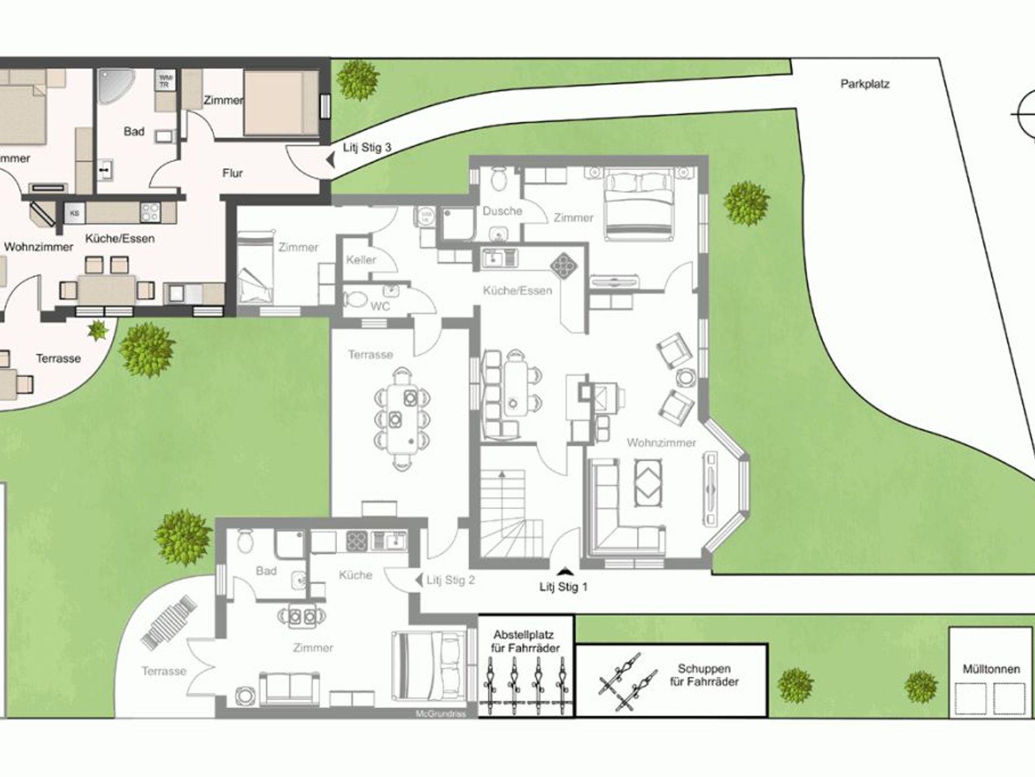 Des Weiteren gehören ein PKW-Stellplatz für EIN PKW und ein gemeinschaftlicher Fahrradabstellplatz zu dieser Ferienwohnung.