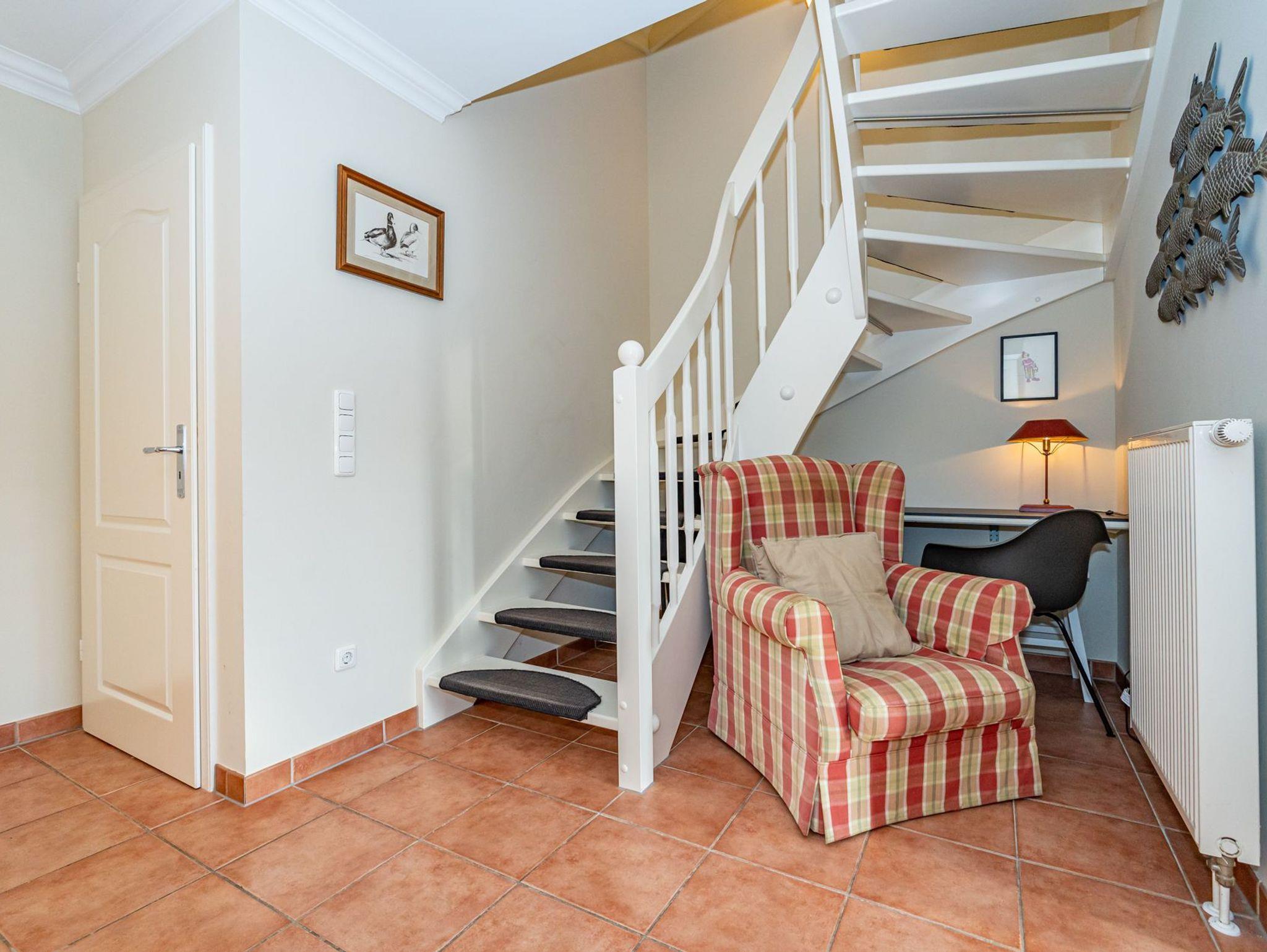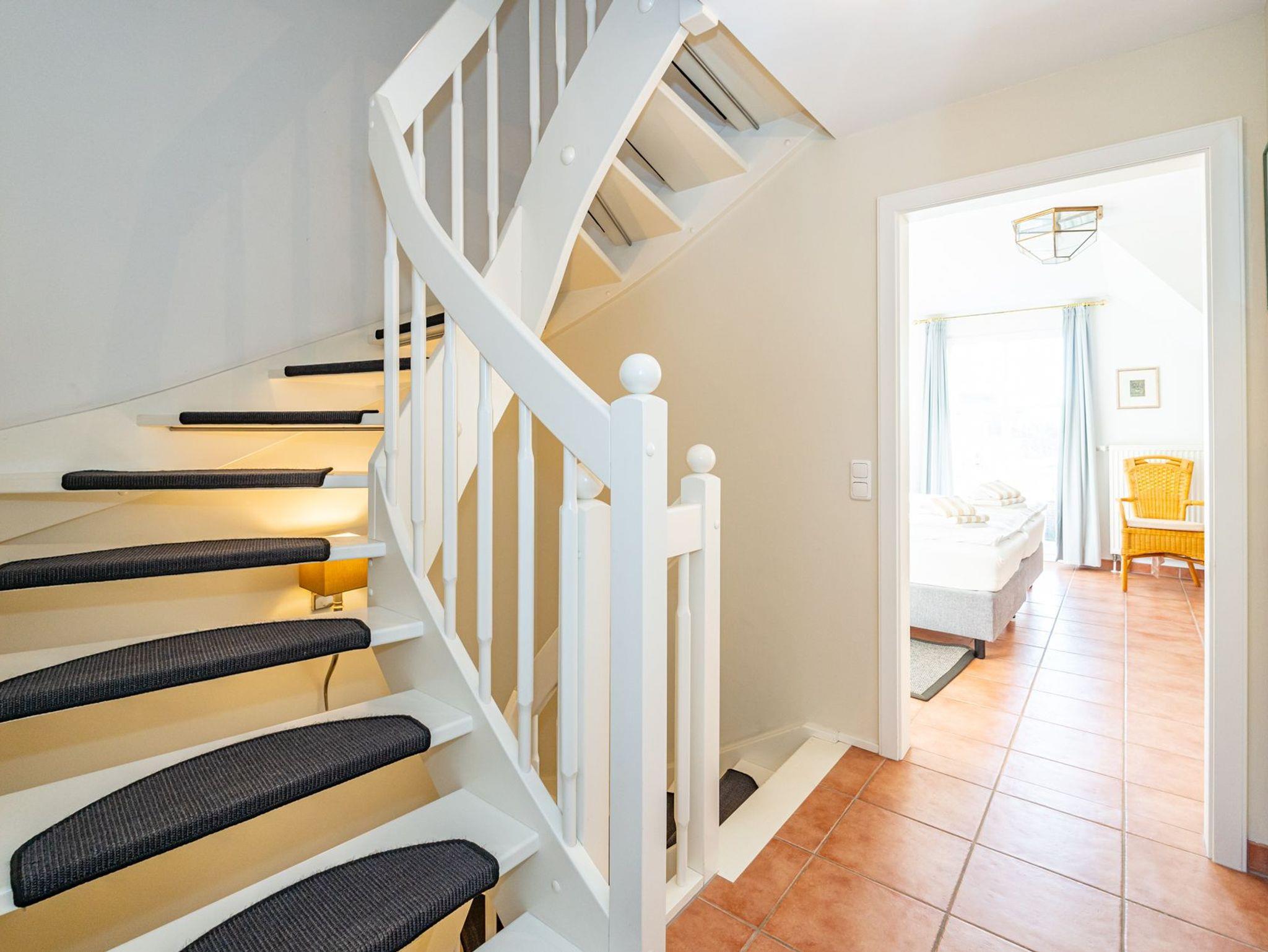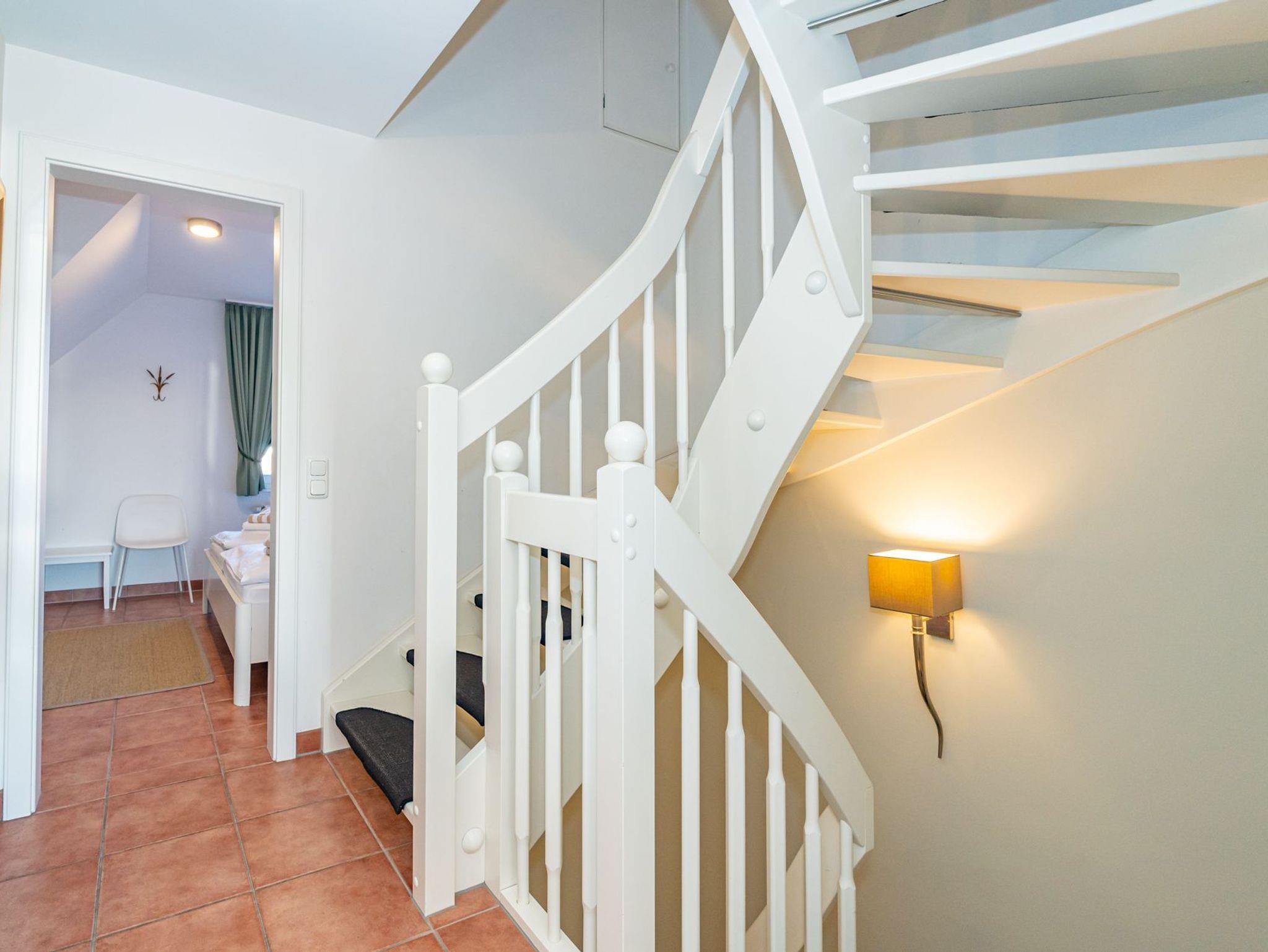 Im 1. Obergeschoss befindet sich ein großzügiges Schafzimmer mit Doppelbett (0,90 m x 2,00 m), Kleiderschrank, Stuhl und zusätzlichem Flachbild-TV. Und ein weiteres gemütliches Doppel-Schlafzimmer (0,90 x 2,00 m) mit Kleiderschrank, Stuhl und TV.