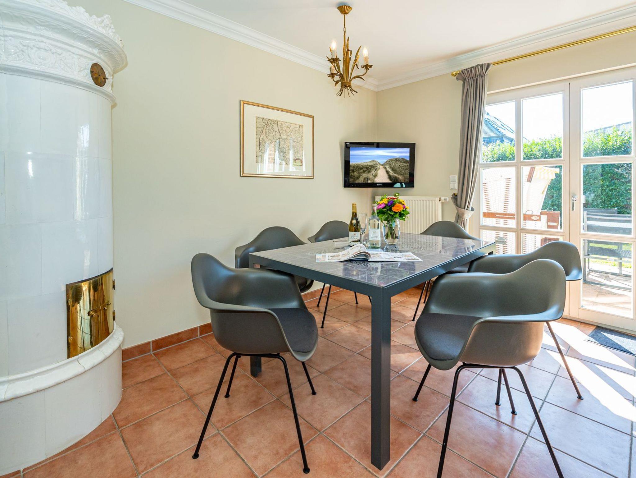 Exklusives Ferienhaus Hardy auf Sylt mit antikem Kachelofen, Sonnenterrasse und PKW-Stellplatz, nur 300 m vom Strand entfernt.