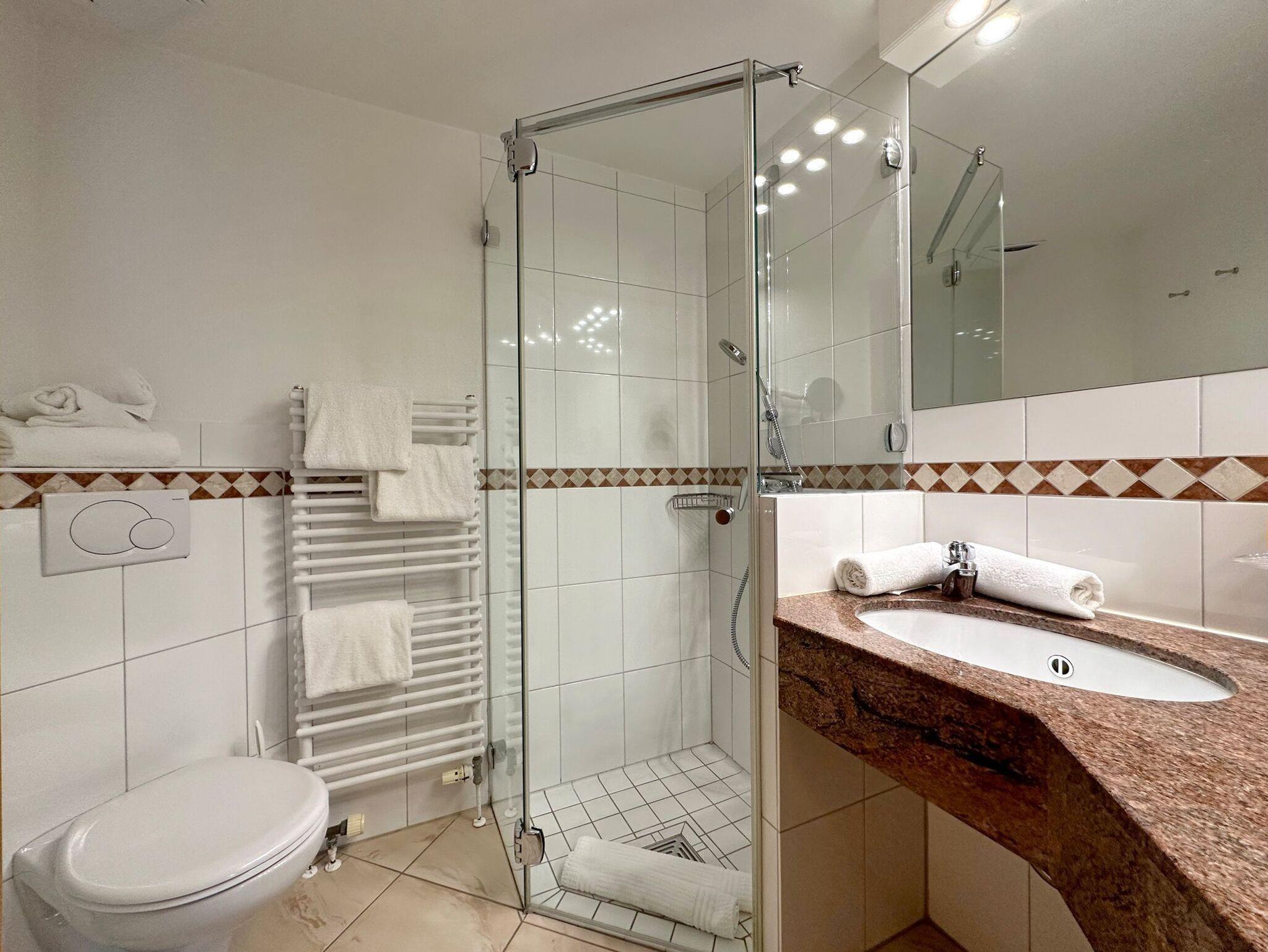 Hübsche 2-Zimmer-Ferienwohnung im Haus Olympia III im 1. OG mit sonnigem Südwestbalkon. Ca. 50m². Nichtraucherwohnung. Wohnzimmer mit hübscher Küche mit Geschirrspüler und Backofen, Doppelschlafcouch und Essplatz für 4 Personen, Duschbad/WC, Schlafzimmer mit Doppelbett, Flur mit Garderobe, Kabel-TV und Radio. Unter Haus 4 befindet sich das Schwimmbad mit Finnischer Sauna. Unter Haus 2 befindet sich ein separater Wellnessbereich mit Dampfsauna, Finnischer Sauna und Ruhebereich. Eine Waschküche mit Gemeinschaftswaschmaschine/Trockner ist vorhanden. Offenes W-LAN-Netzwerk steht zur Verfügung (ohne Gewähr). Bettwäsche und Handtücher sind zur Anreise aufgezogen. Ein Garagenstellplatz kann kostenpflichtig gebucht werden!