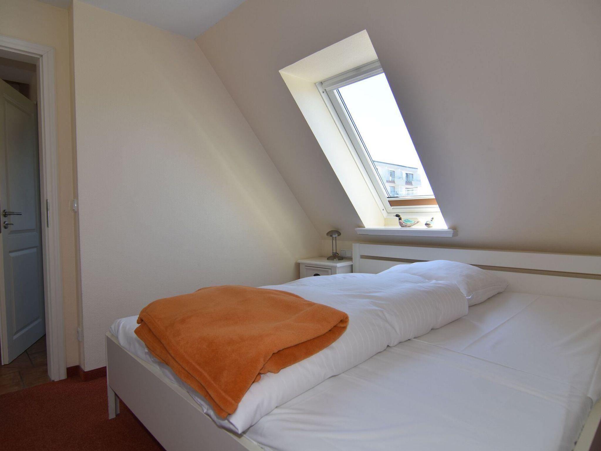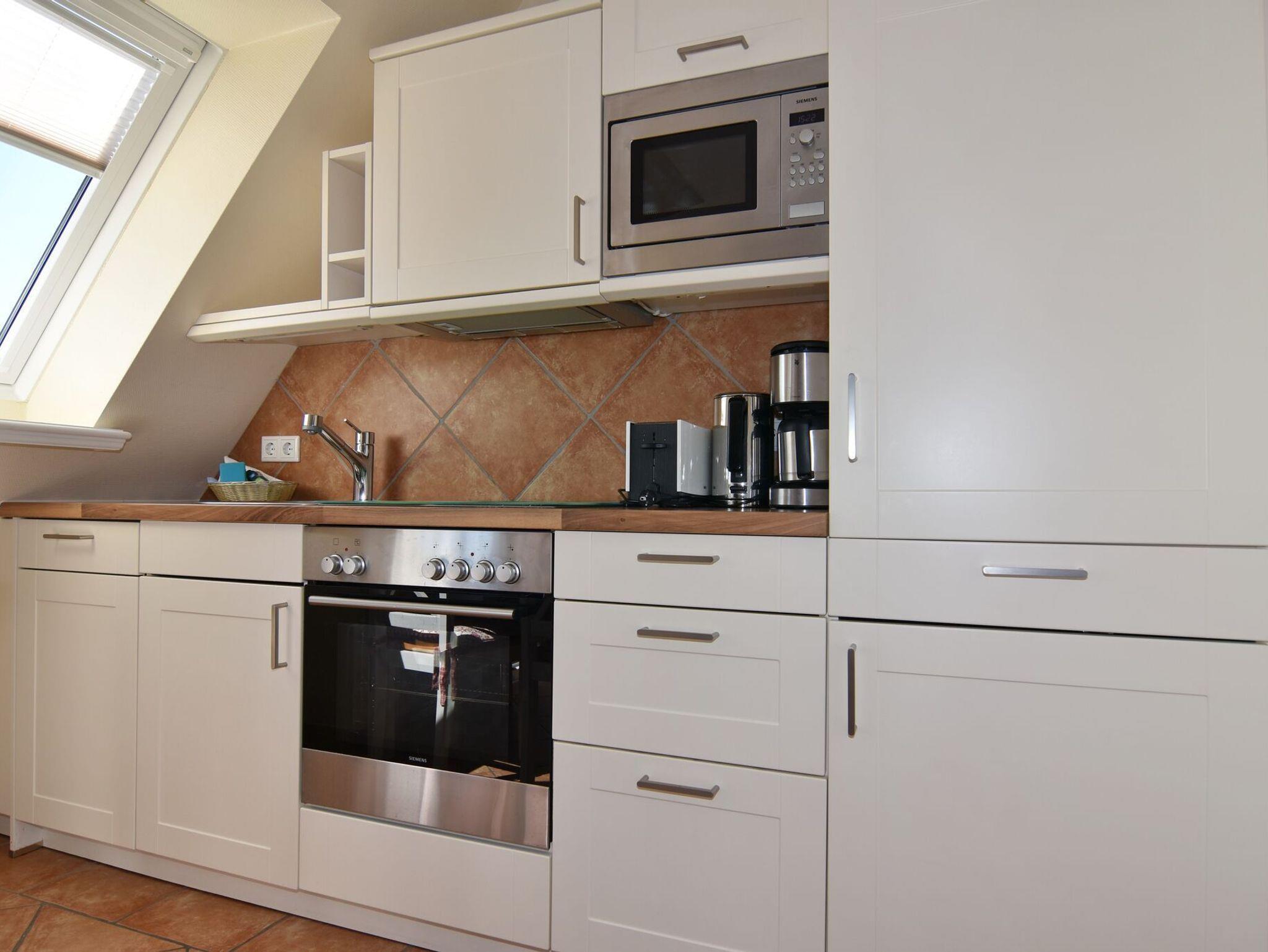 3-Zimmer-Ferienwohnung mit Südbalkon in guter Lage. Ca. 57m², OG/DG. OG: Sonniges Wohnzimmer mit offener Küche , Geschirrsspüler, Mikrowelle und Backofen, 2-Sitzer-Couch und Sessel, Essplatz für 4 Personen, TV/Stereo, WLAN (ohne Gewähr), Schlafzimmer mit Doppelbett und TV, schönes Duschbad/WC, Diele. DG: Schlafzimmer mit 1 Einzelbett. Pkw-Stellplatz am Haus. Rauchen und Tierhaltung ist nicht gestattet. Bettwäsche und Handtücher sind zur Anreise aufgezogen.