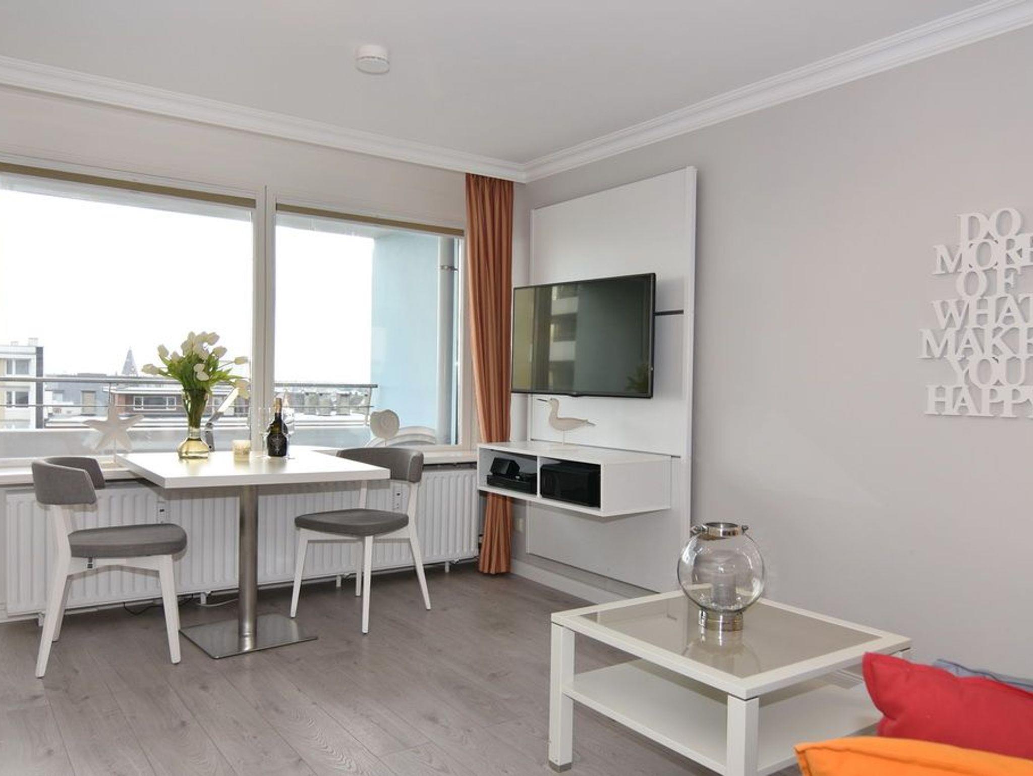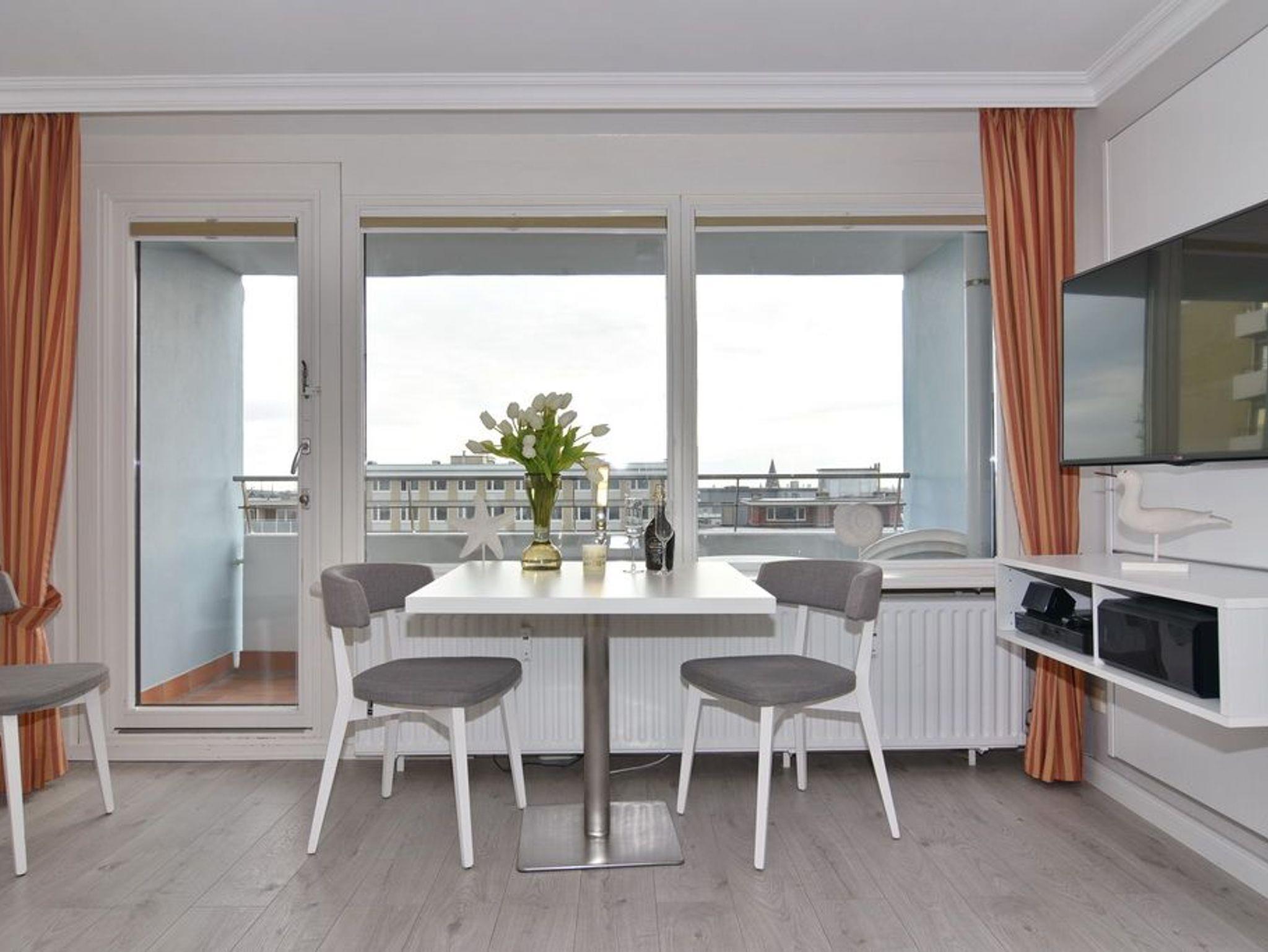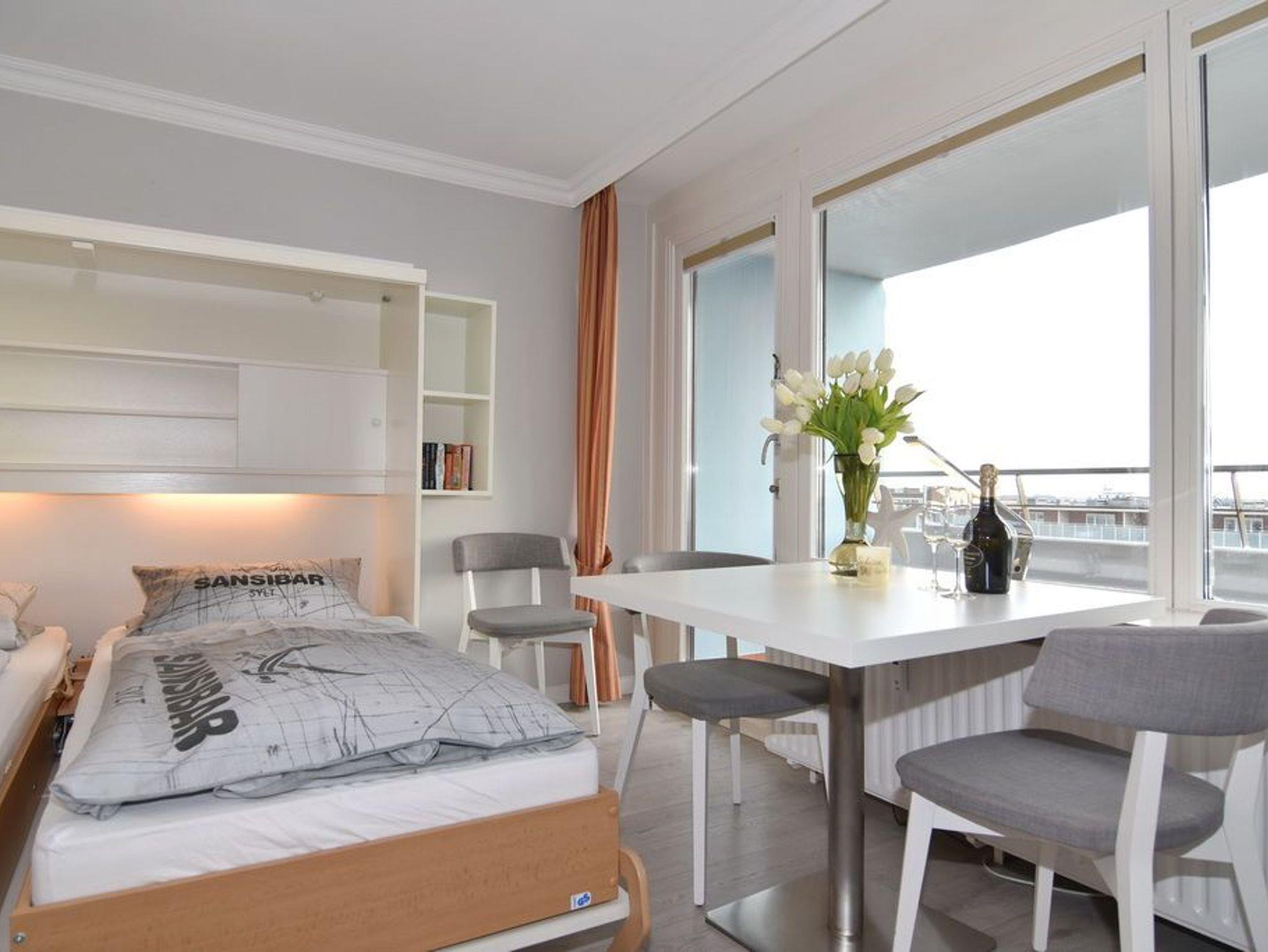 1 Zimmer-Appartement im Haus Metropol, 4 OG. mit Ostbalkon und Balkonmöbeln, ca. 30 m², Nichtraucher-Appartement. Wohn-/Schlafraum mit 2 Einzelschrankbetten ( 80x200 ) und Kleiderschrank, Esstisch am Fenster und kleine Schlafcouch für 1 Person (Querschläfer), Flat-TV, Radio, DVD und Internet ( ohne Gewähr ). Küchenzeile im Flurbereich mit Mikrowelle und Geschirrspüler und 2 Platten-Ceranfeld, Duschbad/WC. Tierhaltung ist nicht gestattet. Bettwäsche und Handtücher sind zur Anreise aufgezogen. Ein PKW-Stellplatz kann kostenpflichtig zugebucht werden.