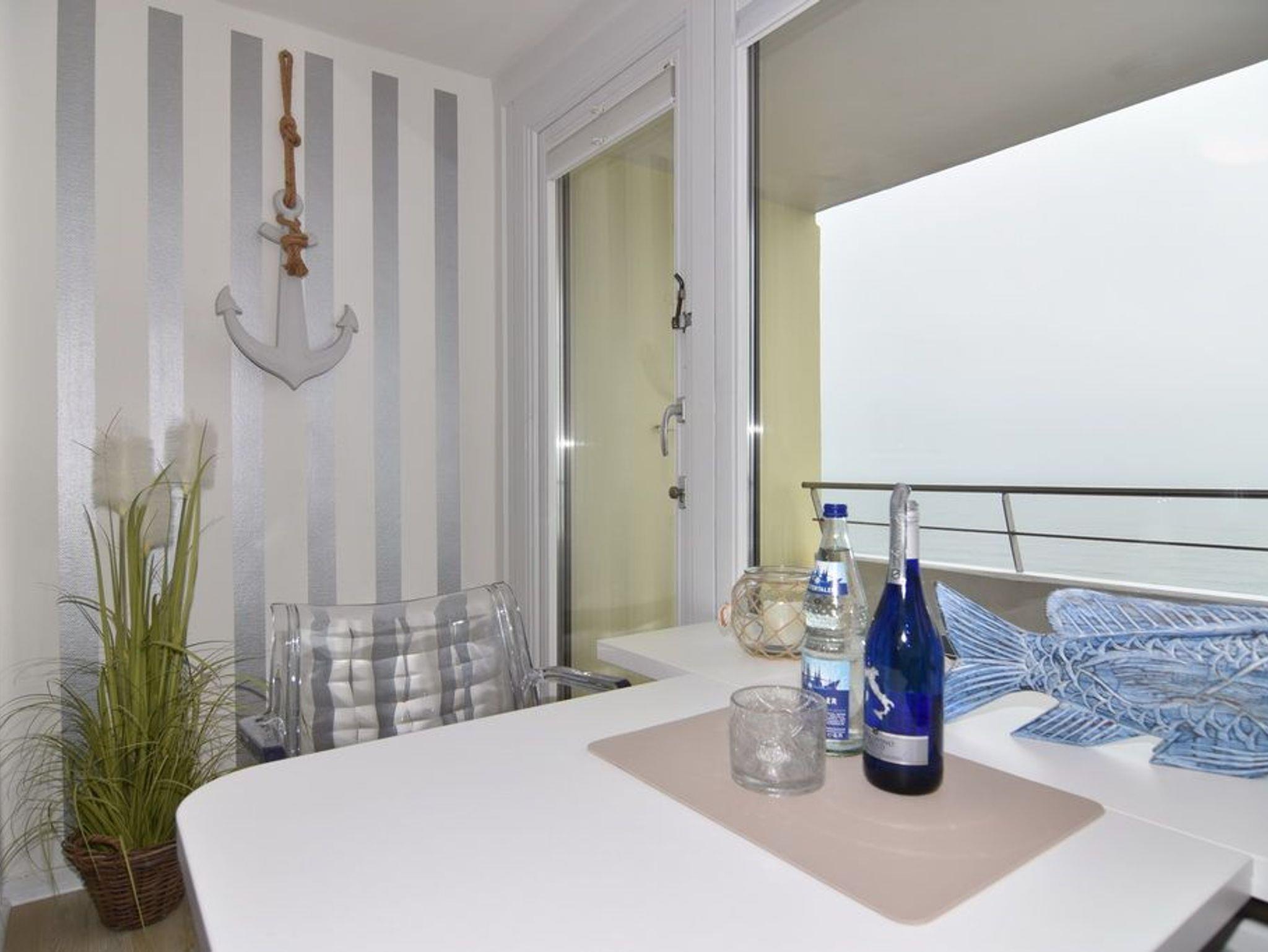Nichtraucher-Whg.! 1 Zimmer-Ferienwohnung, 12. OG, ca. 25 m², Neues Kurzentrum, Haus Metropol Wohn-/ Schlafraum mit 2 Einzelschrankbetten (2x90x190), Zwei-Sitzer-Sofa, Sessel, abklappbarer Esstisch an der Seite, Kabel-TV, Radio, WLAN (ohne Gewähr),[nbsp][nbsp]Westbalkon mit herrlichem Meeresblick, Küchenzeile im Flurbereich mit Mikrowelle (Hauptschalter Ceranfeld oben rechts), Duschbad/WC. Tierhaltung ist nicht gestattet. Bettwäsche und Handtücher sind zur Anreise aufgezogen. Ein PKW-Stellplatz kann kostenpflichtig zugebucht werden.