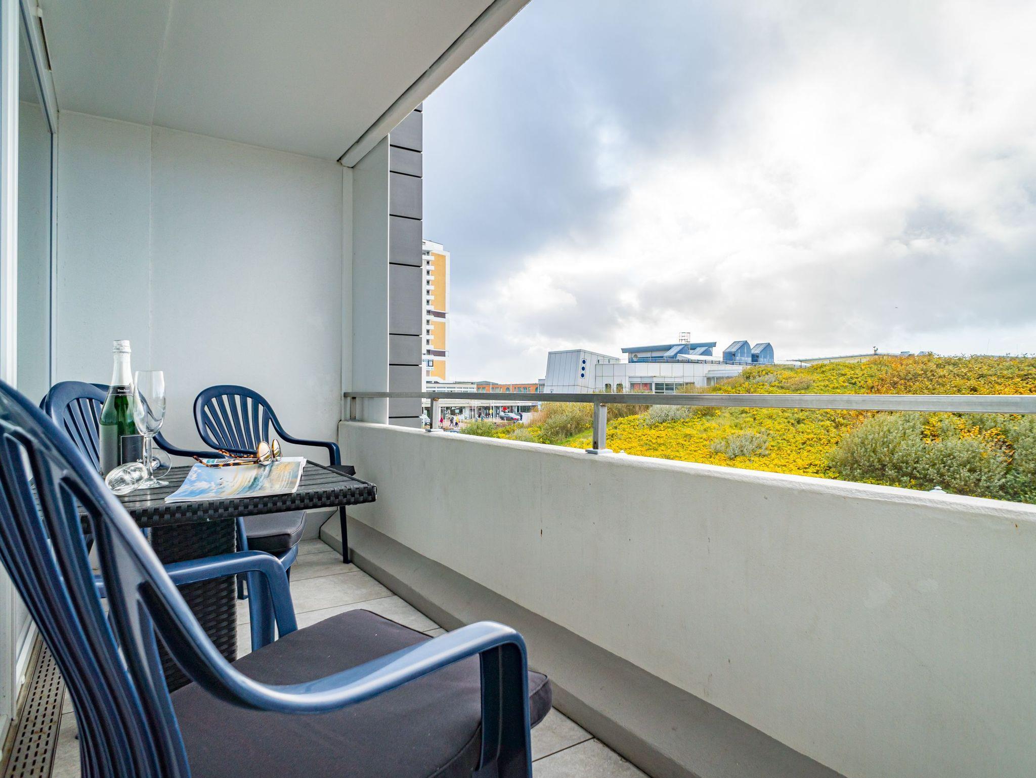 Erleben Sie exklusiven Wohnkomfort in dieser stilvollen 2-Zimmer-Nichtraucher-Ferienwohnung (ca. 51 qm) in der 2. Etage zur Seeseite ? ideal für maximal 4 Personen. Die Wohnung besticht durch eine Westloggia, die Sie in der Nachmittagssonne mit Balkonmöbeln und Auflagen zum Verweilen einlädt. Beim Betreten der Ferienwohnung gelangen Sie über einen großzügigen Vorflur mit Garderobe in das helle Wohnzimmer, das direkten Zugang zum Balkon bietet. Von hier aus erreichen Sie das komfortable Schlafzimmer sowie das moderne Duschbad/WC mit Fön.