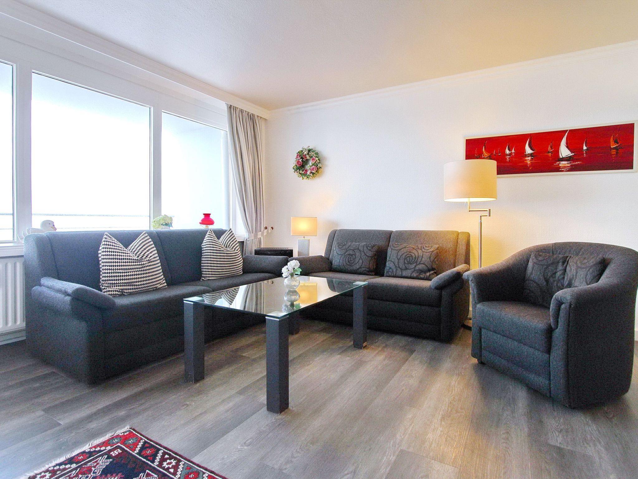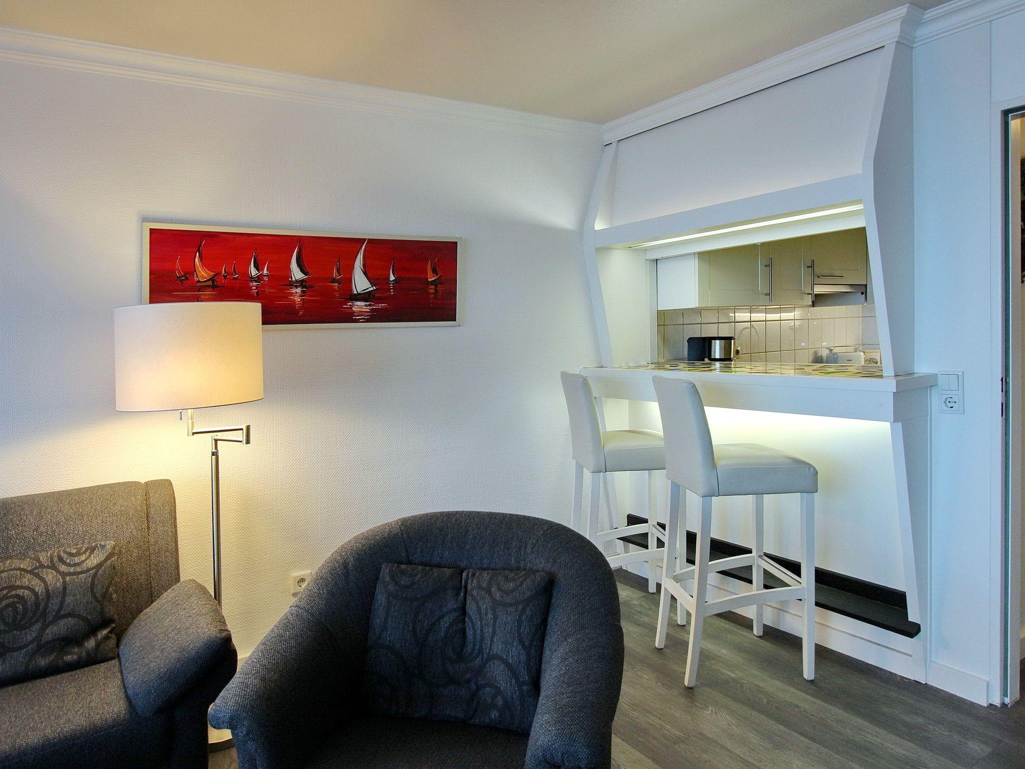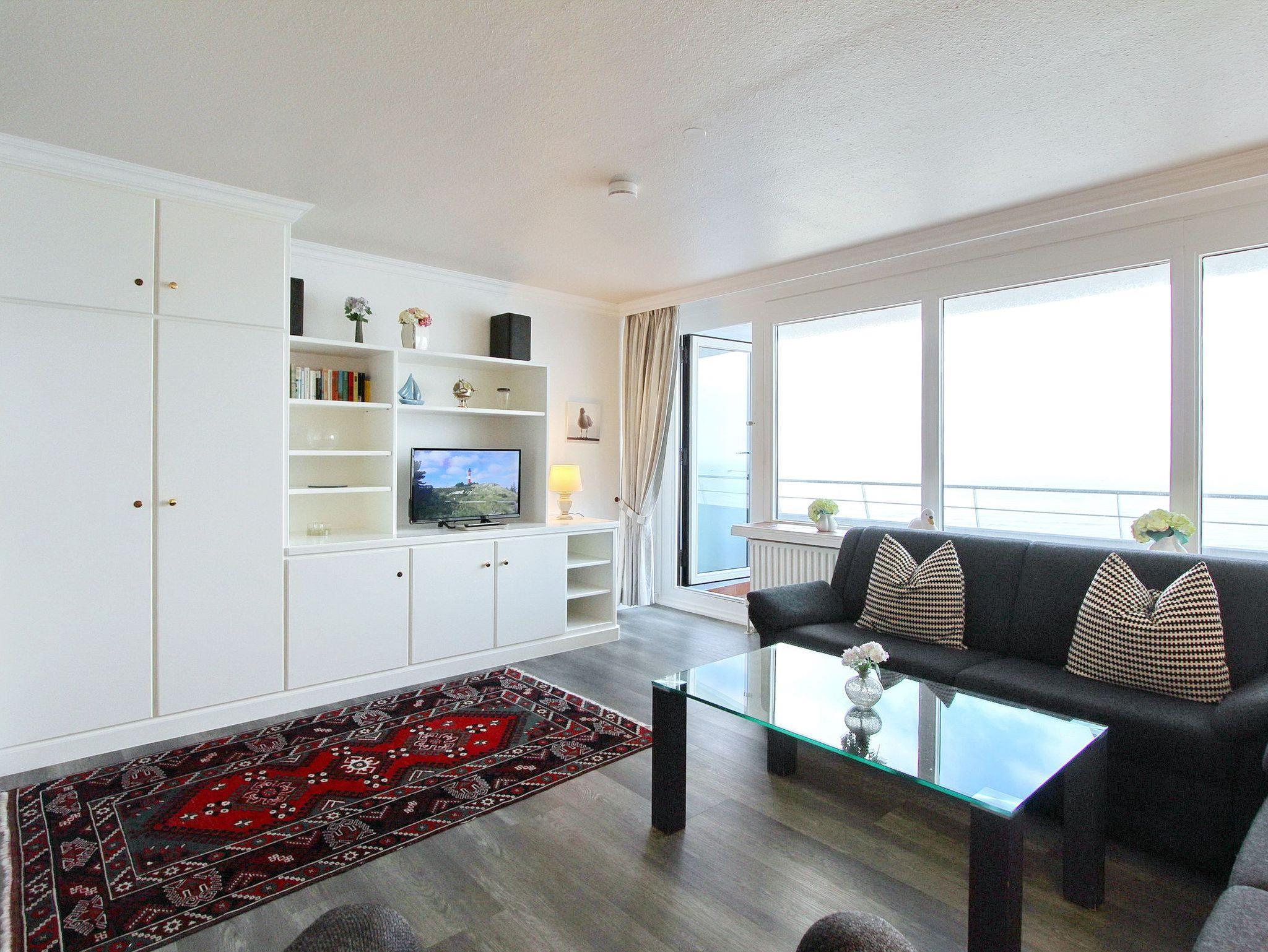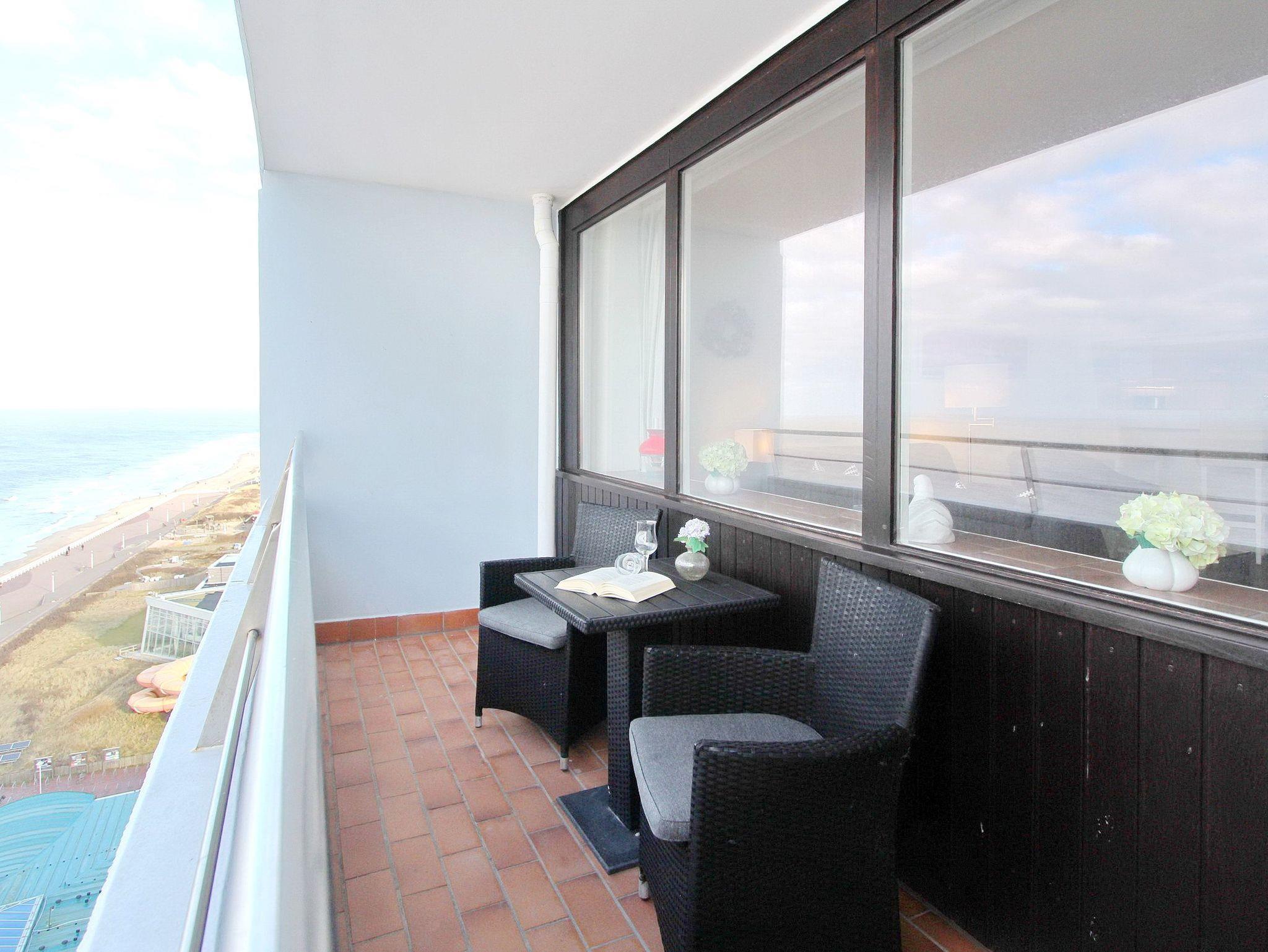 Moderne Einzimmerwohnung im Haus Metropol mit traumhaftem Meerblick und Westbalkon in Westerland auf Sylt.