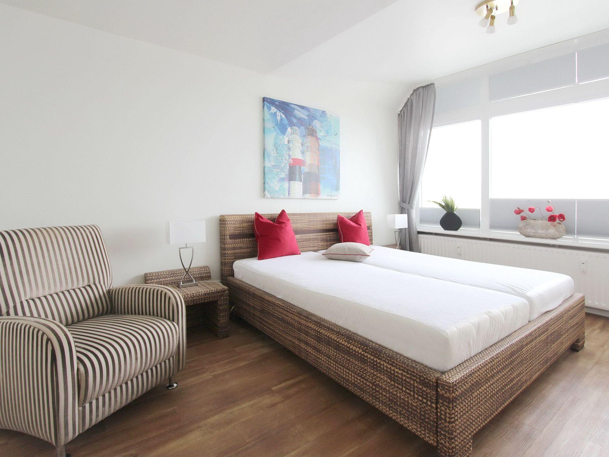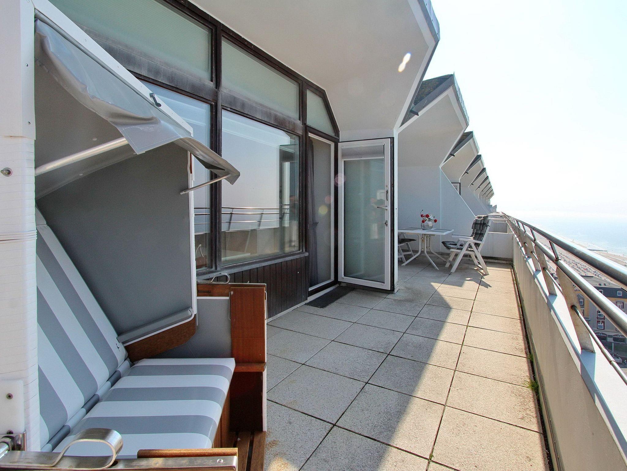 Wunderschöne Penthousewohnung in der 14. Etage im Haus Metropol mit einem unvergleichlichen Weitblick auf die Nordsee. Das Wohnzimmer, mit vorgelagerter Westdachterrasse, wurde im Frühjahr 2020 neu eingerichtet und verfügt über eine bequeme Sitzgruppe mit Schlaffunktion (Komfortmatratze), einem Fernsehsessel und einen großen Esstisch am Fenster mit 4 Stühlen. Gemütliche Candle Light Dinner zu zweit können hier, genauso wie Spieleabende mit der ganzen Familie, stattfinden. Das Schlafzimmer verfügt über ein feststehendes Doppelbett, einen Schreibtisch zum Erledigen der Urlaubspost, einen großen Kleiderschrank und einen zusätzlichen Flachbildfernseher (32 Zoll). Ein Babyreisebett hat hier auch Platz und wird Ihnen von der Eigentümerin kostenfrei zur Verfügung gestellt. Auf der großzügigen Westdachterrasse gibt es Balkonmöbeln von Kettler mit Auflagen und einen Strandkorb. Um sich selbst zu verpflegen gibt es im Wohnbereich eine offene Küche mit Mikrowellen-Backkombination, eine Bosch Küchenmaschine, einen Geschirrspüler und ein Ceranfeld mit 4 Herdplatten. Küchengeräte von WMF, eine zusätzliche Nespressomaschine und hochwertiges Geschirr und Gläser sind vorhanden. Das Badezimmer hat 2 Waschbecken und eine Dusche. Handtuchtrockner, Fön und ein Kosmetikspiegel gehören zur Ausstattung. An technischen Geräten sind: ein 40 Zoll Flachbildfernseher von Panasonic, ein Blu Ray Player und eine Bluetoothanlage von Sony mit CD Player vorhanden. Der Eigentümer verfügt über einen eigenen Internetanschluss (Zugangsdaten in der Wohnung) der kostenfrei zu nutzen ist. Diese Nichtraucherwohnung in der Penthouseetage ist über eine Treppe erreichbar, der Aufzug geht nur bis zur 13. Etage. Wohnungsgröße: ca. 70 m².