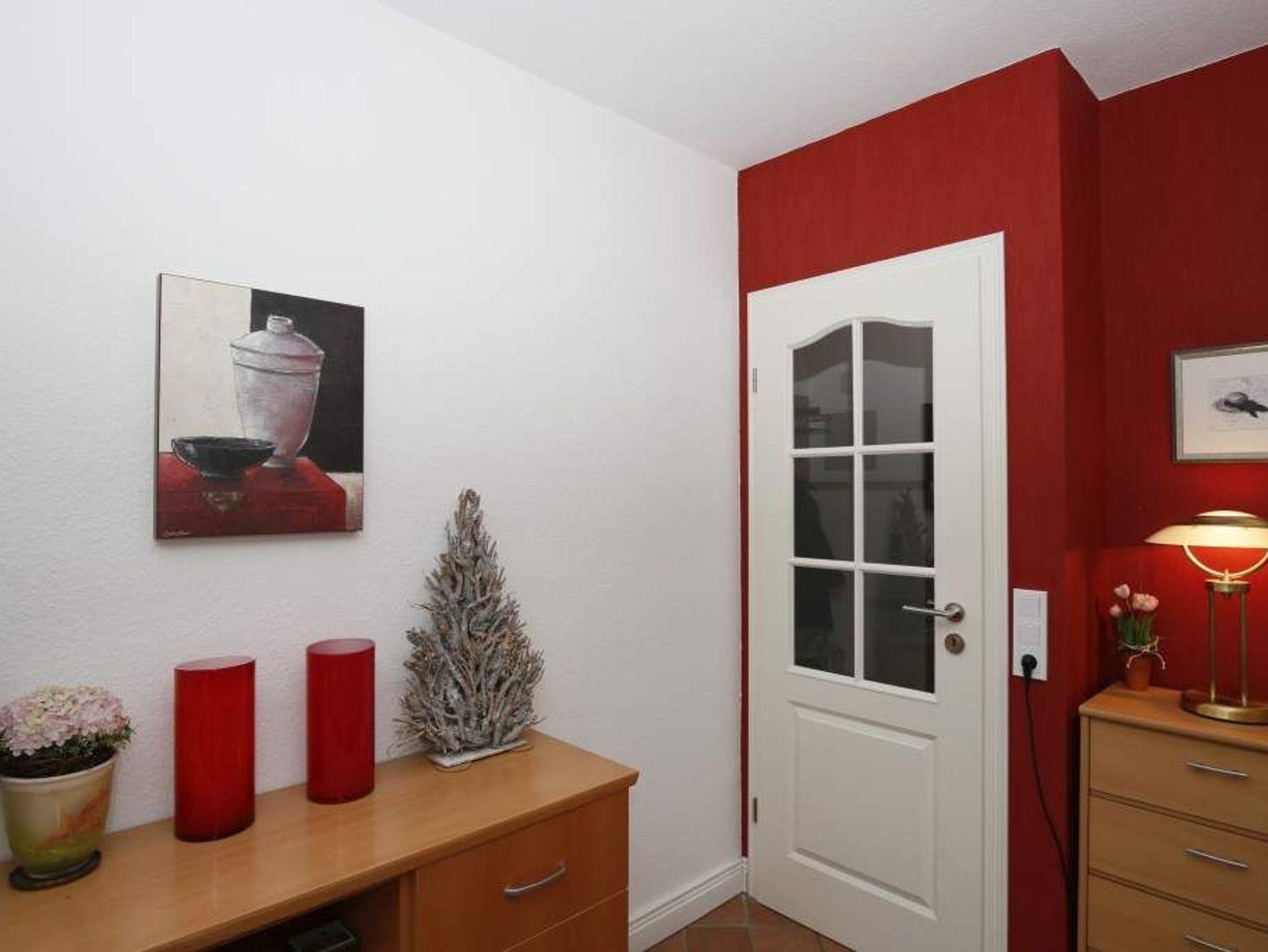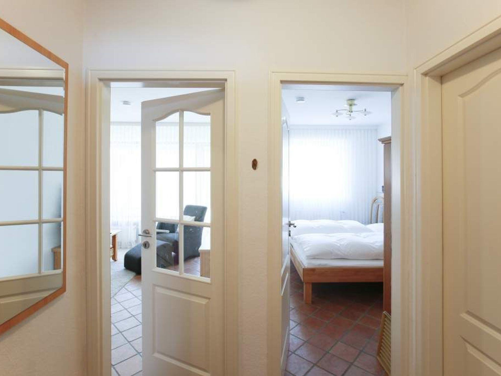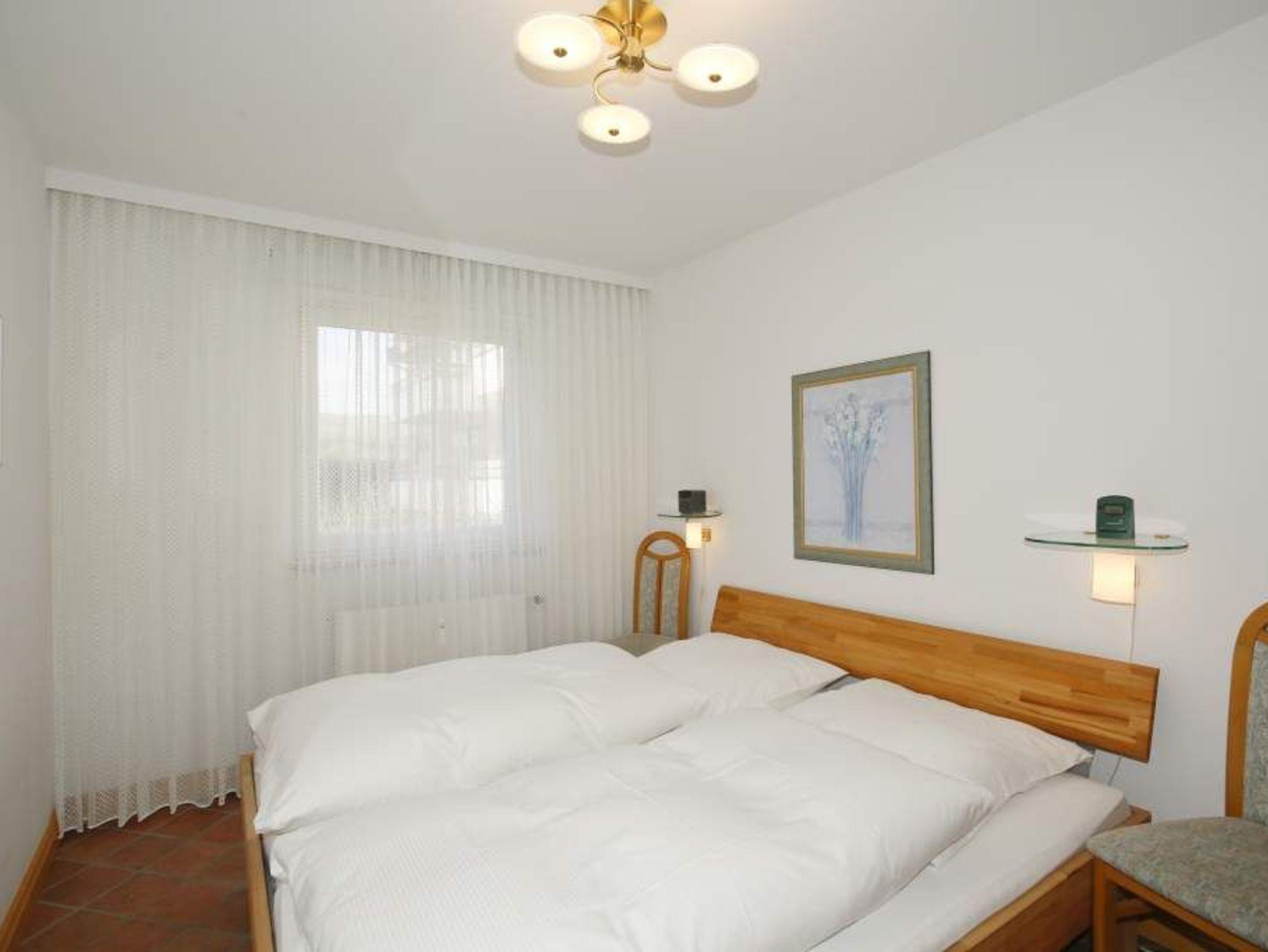 Erwartet Sie diese komplett geflieste 2-Zimmer-Nichtraucher-Ferienwohnung im Parterre zur Westseite. Mit ca. 45 m² Wohnfläche und einem Westbalkon, der in der Nachmittagssonne mit komfortablen Balkonmöbeln und Auflagen zum Entspannen einlädt, bietet die Wohnung Platz für maximal 4 Personen.