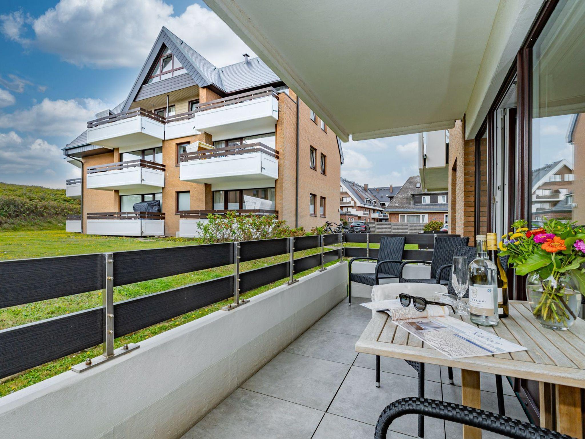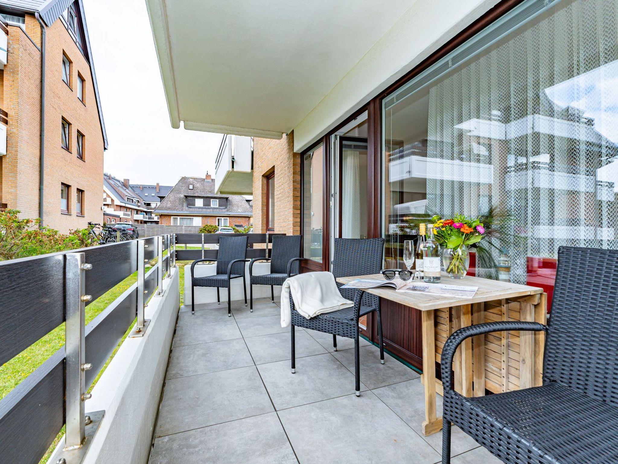 Komfortable 2-Zimmer-Ferienwohnung in Westerland auf Sylt mit Westbalkon und eigenem Stellplatz, nur 150 m vom Strand entfernt.