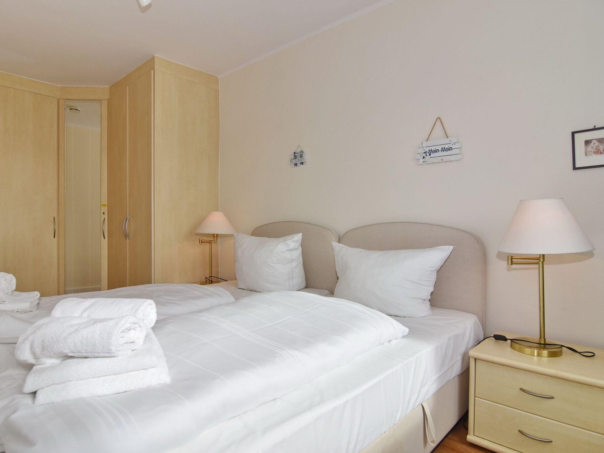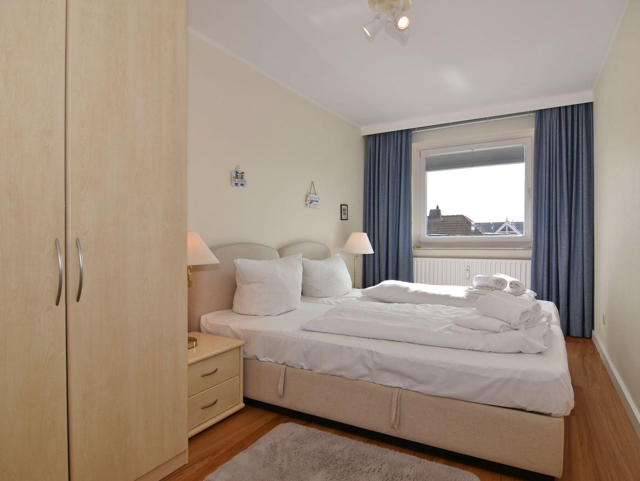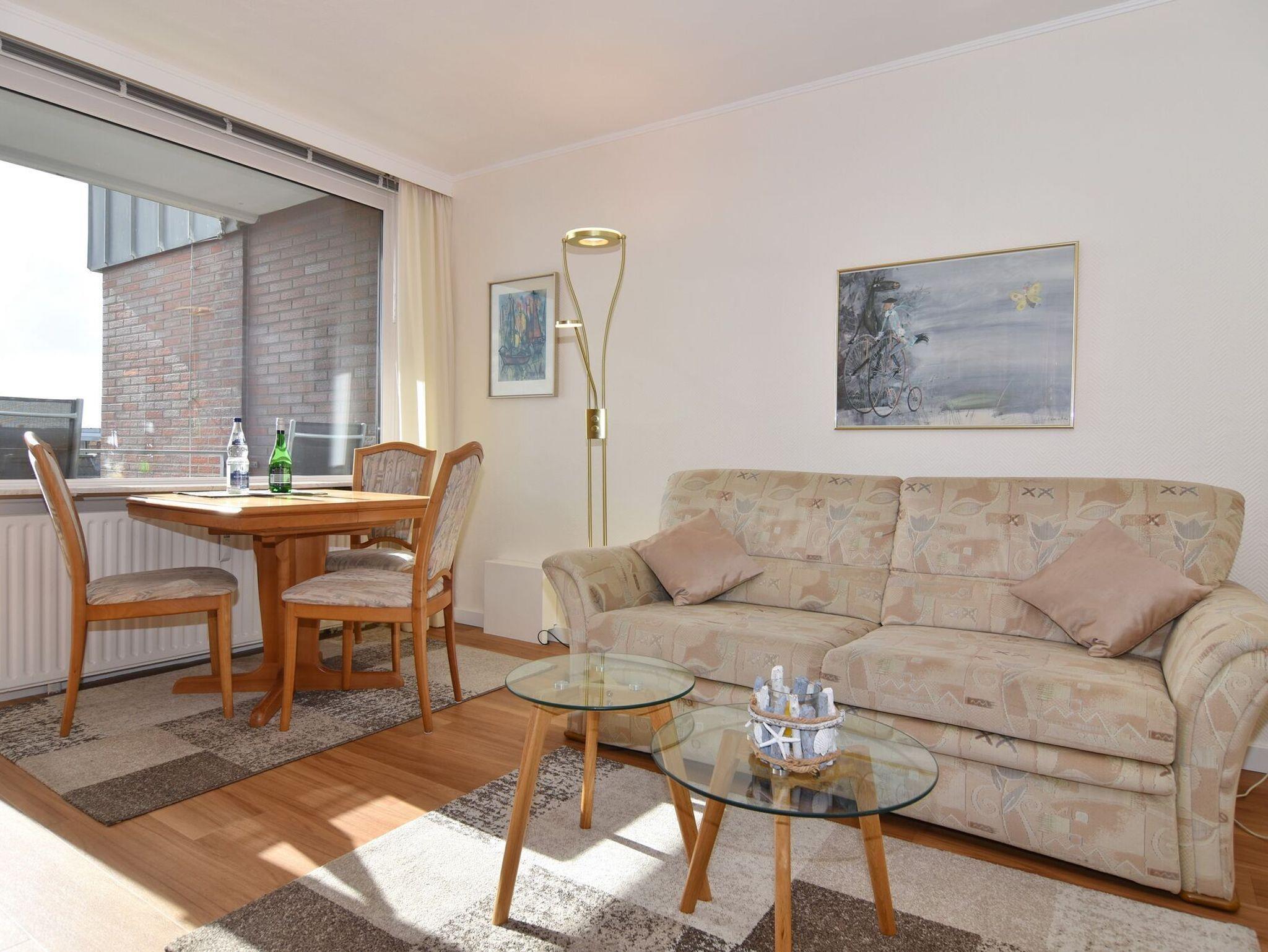Die 2-Zimmer-Wohnung mit ca. 50m² befindet sich im 2.OG des Haus Eidum und ist durch die zentrale Lage ein optimaler Ausgangspunkt zur Erkundung der Insel. Am Eingangsbereich des Hauses befinden sich ca. 10-12 Stufen bevor Sie dann bequem mit dem Fahrstuhl in die 2. Etage fahren können. Die Wohnung verfügt über ein Wohnzimmer mit Sitz- und Essecke (Schlafcouch), TV, Stereoanlage und möblierten Südbalkon, einem separaten Schlafzimmer mit großzügigem Einbauschrank und Doppelbett (2x 90x200 cm), einer separaten Küche mit Geschirrspüler, Mikrowelle und Ceranherd, großem Flurbereich und ein Duschbad / WC. Sämtliche Räume verfügen über ein Fenster. Die Wohnung ist in einem sehr gepflegten Zustand und ist mit Designboden ausgelegt. Zu der Wohnung gehört ein großer Pkw-Aussenstellplatz, der sich an der Stirnseite des Hauses befindet. Im Keller stehen Ihnen über Münzzähler Waschmaschine und Trockner zur Verfügung. Tierhaltung und Rauchen in der Wohnung ist nicht gestattet. Bettwäsche und Handtücher sind zur Anreise aufgezogen.