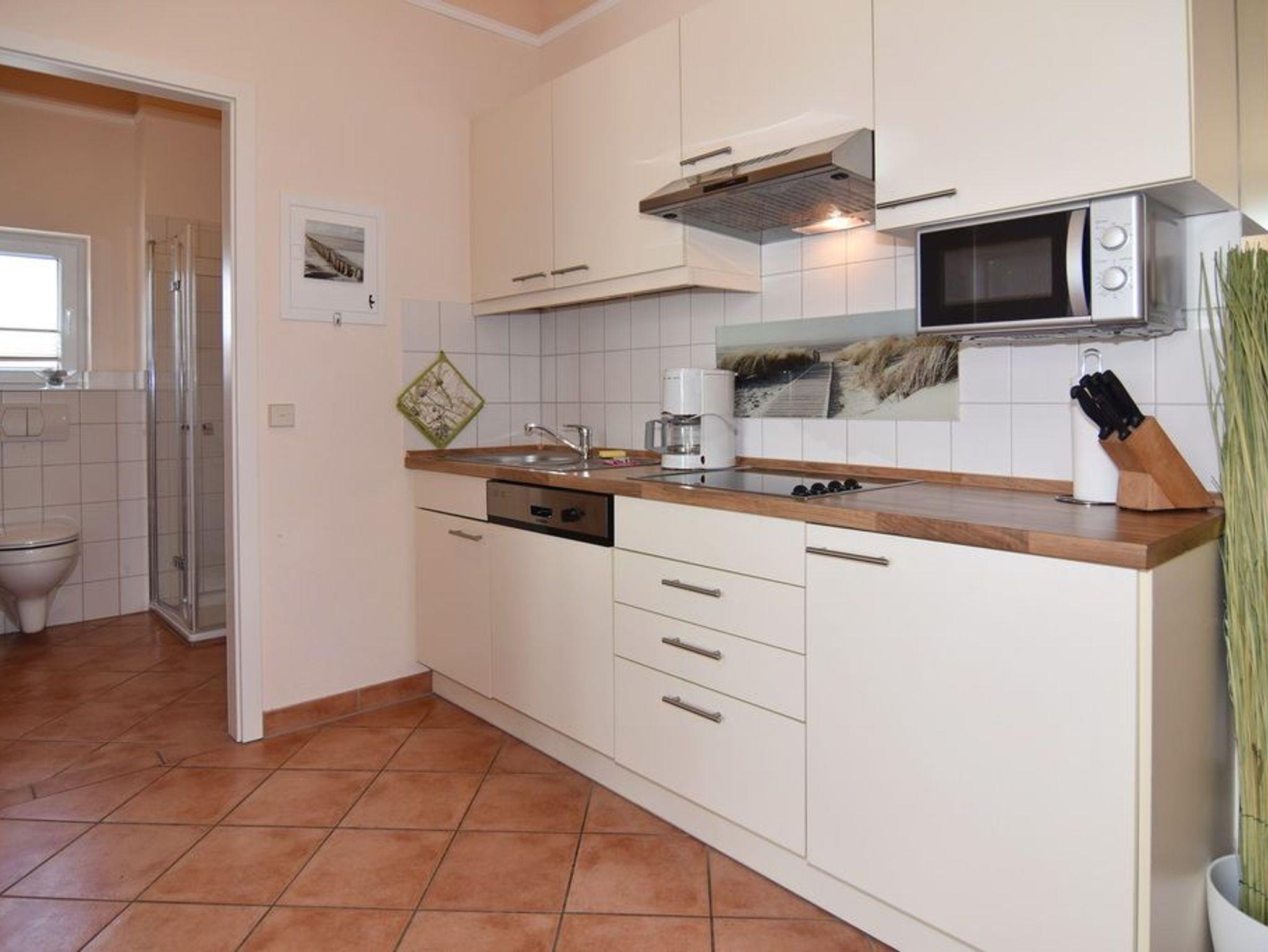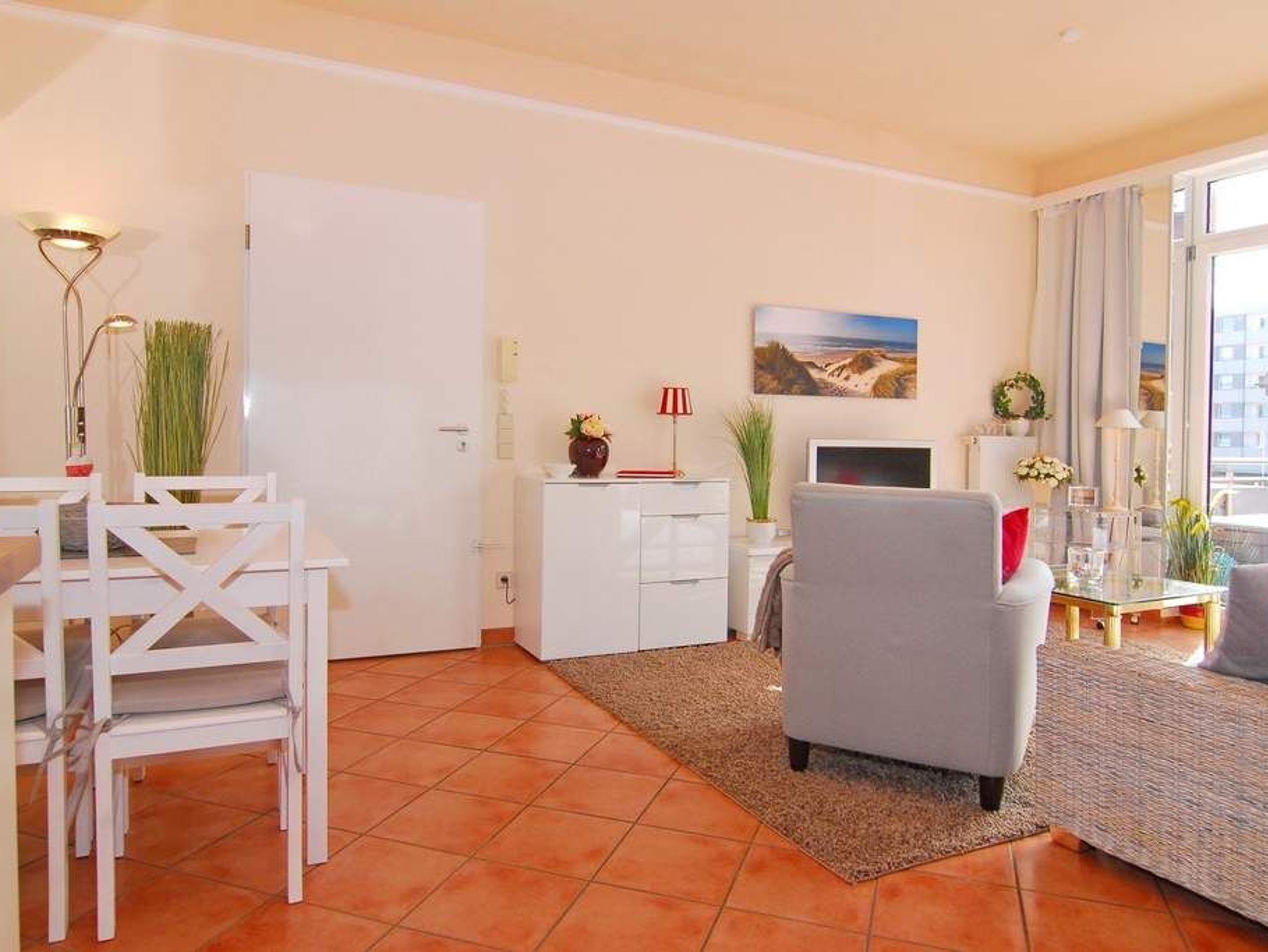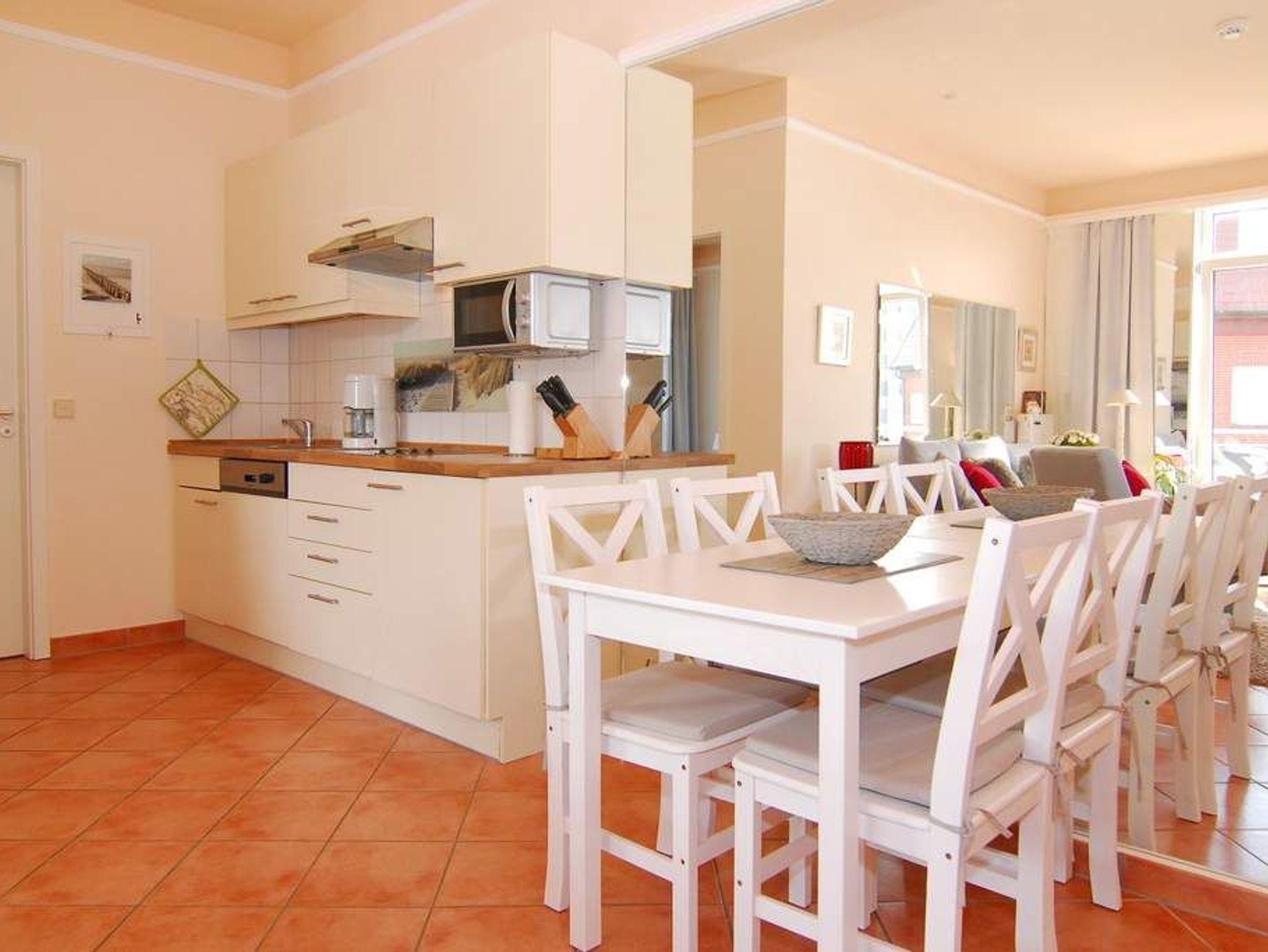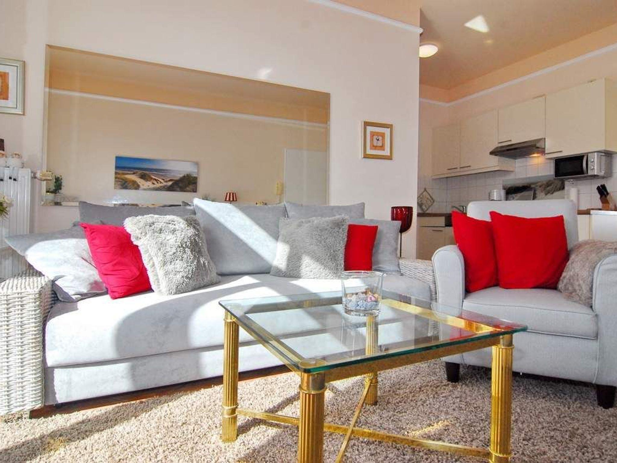 Liebevoll eingerichtete 2-Zimmer-Ferienwohnung im roten Haus der Residenz Mauritius. Auf ca. 39m² im 1. OG. bietet Ihnen diese Wohnung einen Wohnraum mit gemütlicher Sitz- und Essecke sowie eine Küchenzeile mit Mikrowelle und Geschirrspüler. Das Sofa lässt sich mühelos zu einer Schlafmöglichkeit für 2 Personen umwandeln. Vom Wohnzimmer aus gelangen Sie auf den großen Westbalkon mit Strandkorb, Tisch und Stühlen - hier genießen Sie die Sonne bis in die Abendstunden. Das Duschbad/WC und das separate Schlafzimmer mit eigenem TV runden das Angebot ab. Das Apartment ist komplett gefliest. Internetanschluß (ohne Gewähr) ist vorhanden. Eine Waschküche und ein Fahrradkeller befinden sich im Nebenhaus Mauritius. Tierhaltung ist gestattet und muss bitte angemeldet werden. Pkw-Stellplatz kann kostenpflichtig hinzugebucht werden. Bettwäsche und Handtücher sind zur Anreise aufgezogen!