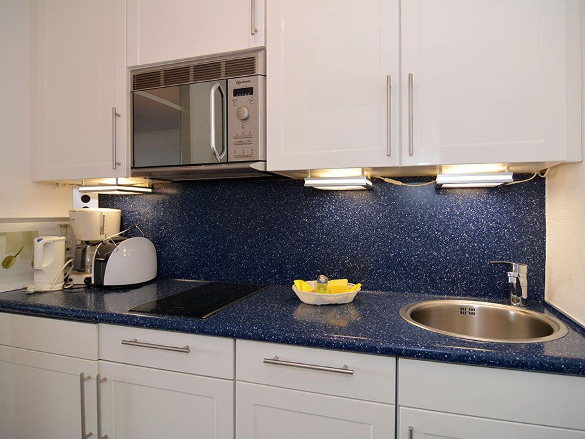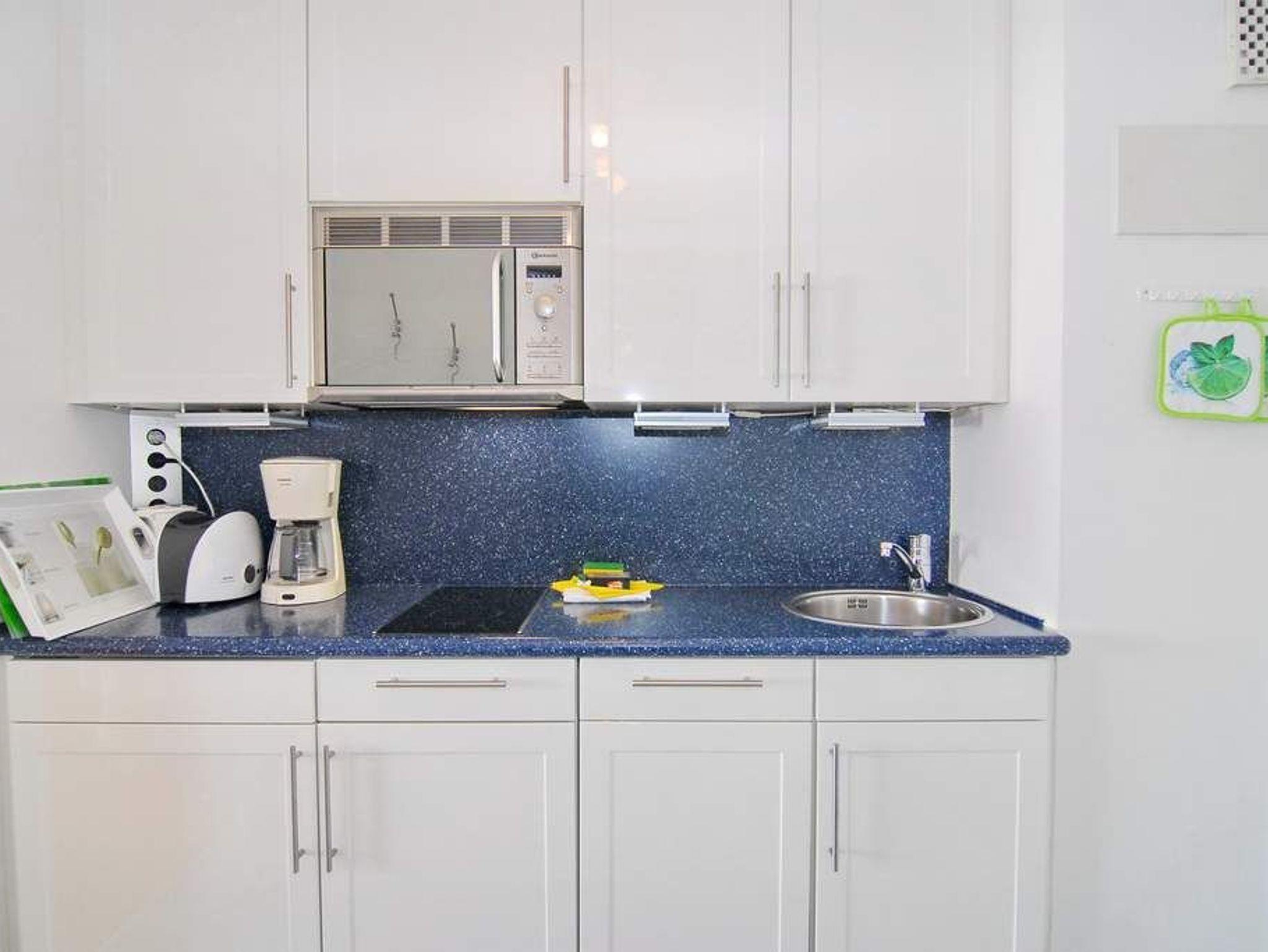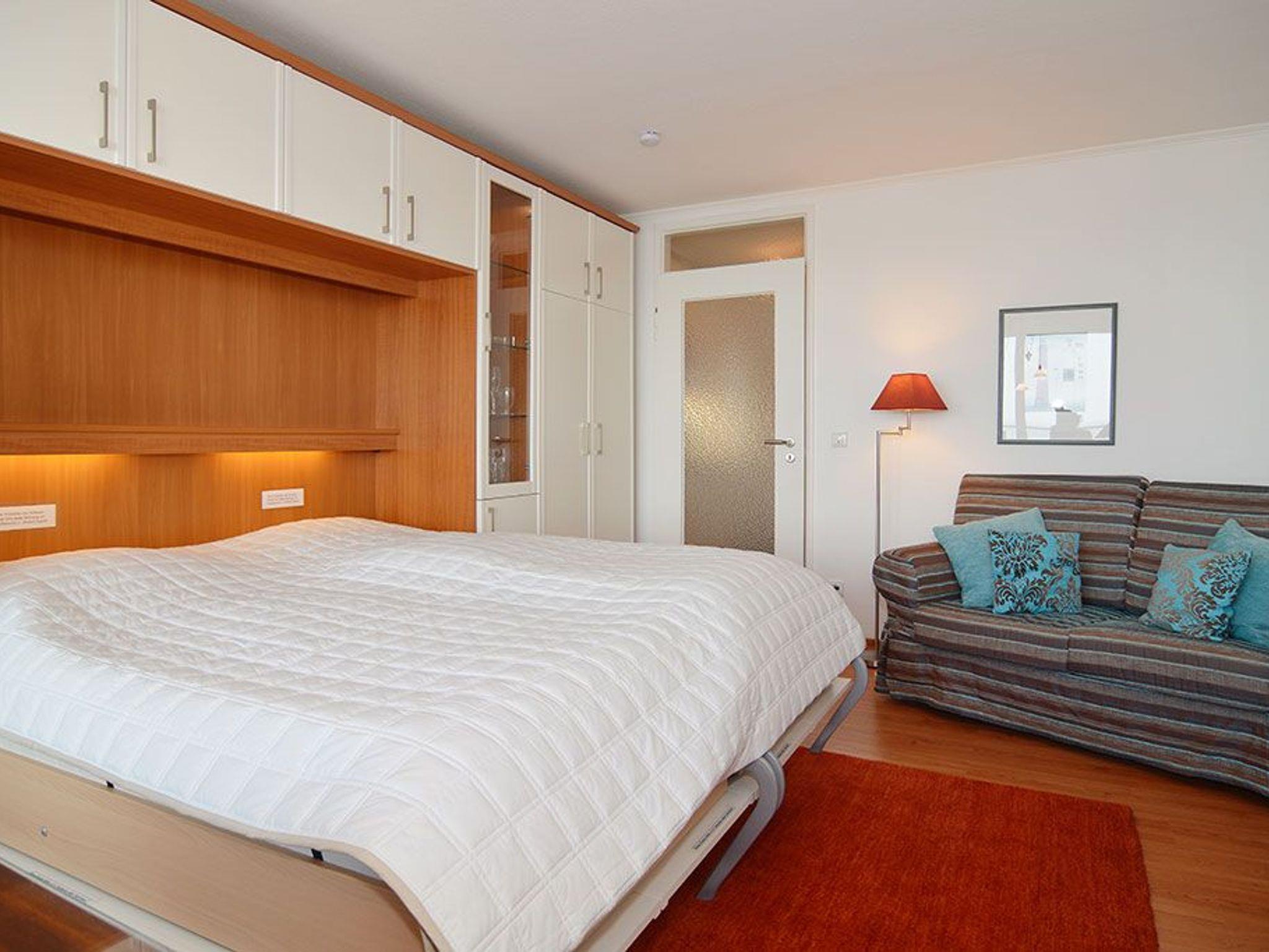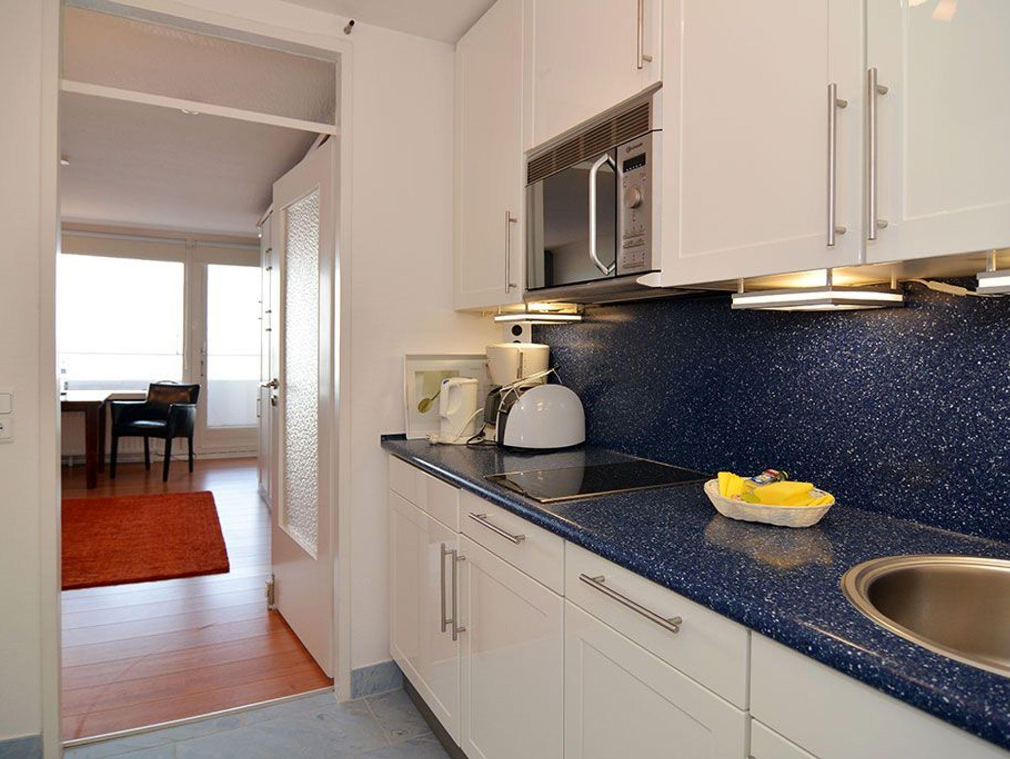 Hübsches1-Zimmer-Ferienwohnung, ca. 34 qm im Haus Sylter Welle, 4 OG. Nichtraucher-Whg.! Wohn-/Schlafraum mit Westbalkon und Meeresblick, 2 Einzelschrankbetten, Esstisch mit 2 Lederstühlen am Fenster und Blick auf das Meer, Zweisitzer-Couch, Vitrine-und Kleiderschrank, Flat-TV und Radio. W-Lan (ohne Gewähr) Das Apartment ist mit Holzlaminat ausgelegt. Küchenzeile im Flur mit Mikrowelle und Geschirrspüler, Vollbad / WC mit Duschvorrichtung. Tierhaltung ist nicht gestattet. Bettwäsche und Handtücher sind zur Anreise aufgezogen. Ein PKW-Stellplatz kann kostenpflichtig zugebucht werden.