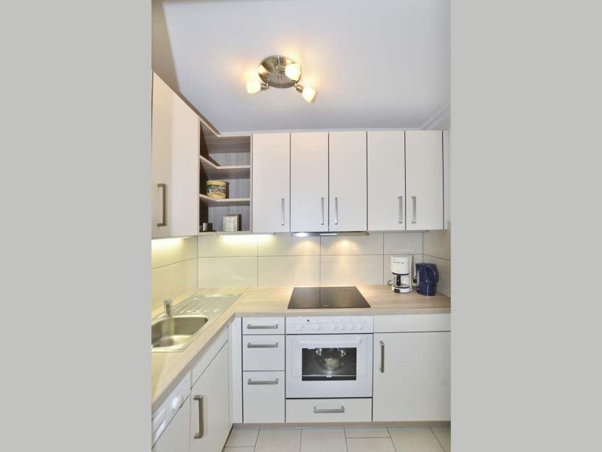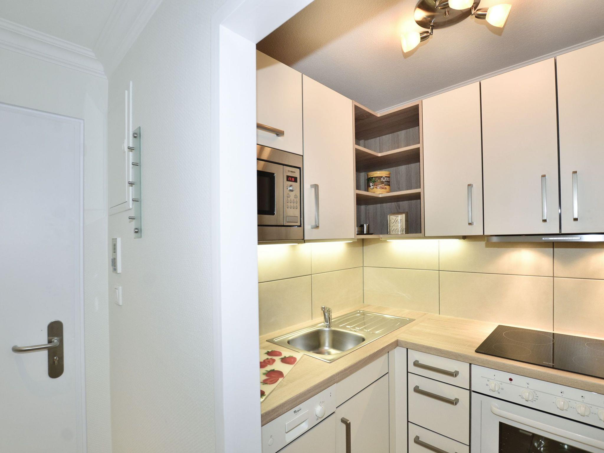 Die gut ausgestattete Küche verfügt über einen Geschirrspüler, einen Herd mit Backofen und 4-Platten-Ceranfeld, eine Mikrowelle sowie einen Kühlschrank mit 3*-Gefrierfach. Kaffeemaschine, Wasserkocher und Toaster gehören selbstverständlich zur Grundausstattung.