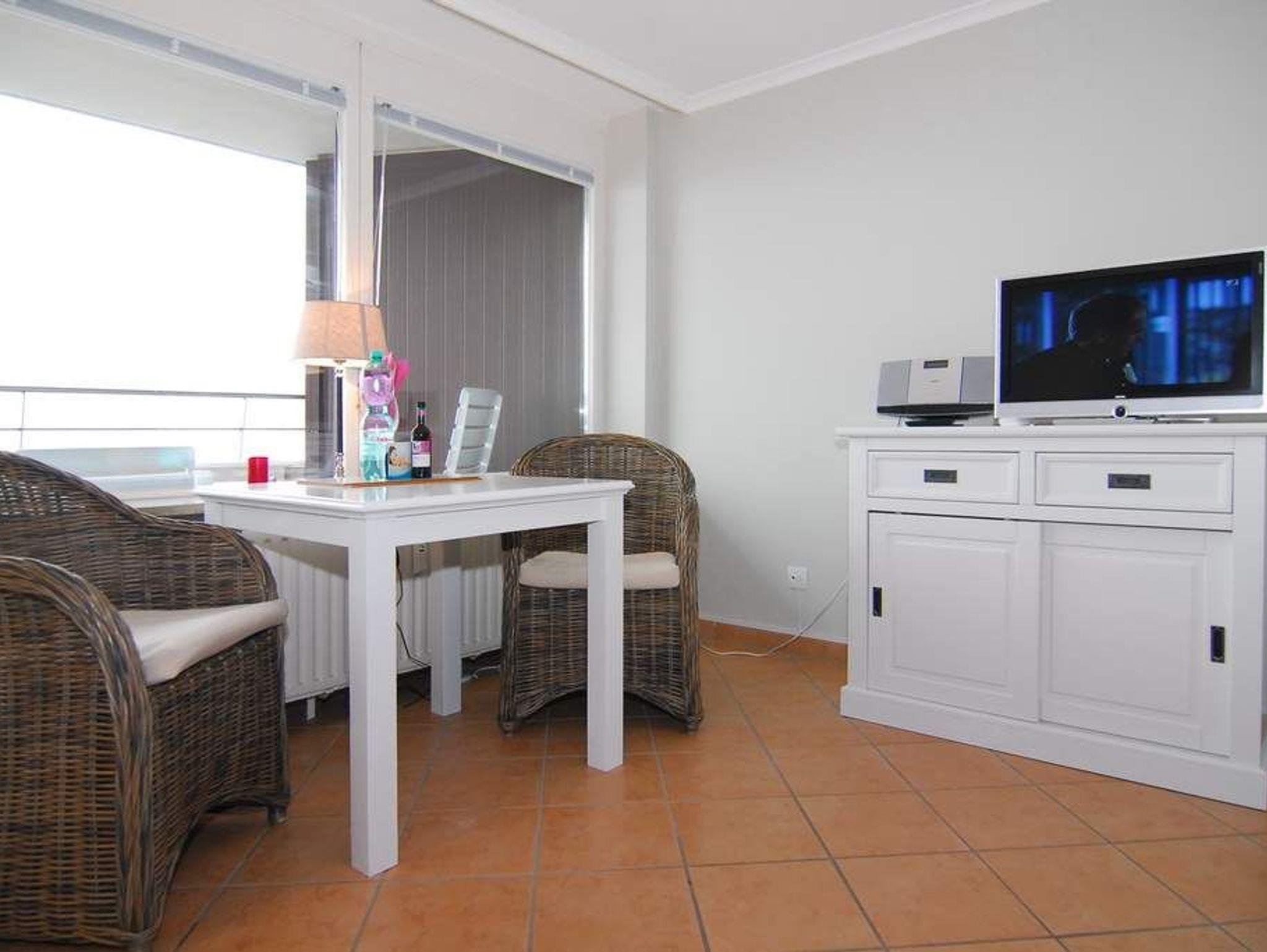 Moderne 1-Zimmer-Ferienwohnung im Haus Metropol. Ca. 34m² im 3. OG mit Westbalkon und freiem Meeresblick. Helles Wohn-/ Schlafzimmer mit Doppelbett (2x80x200), Eßplatz am Fenster, 2-Sitzer-Couch, Flat-TV/Radio, W-Lan (ohne Gewähr), Balkon mit Balkonmöbeln und herrlichem Meeresblick, moderne Küchenzeile im Flur mit Geschirrspüler, Duschbad/WC. Das Apartment ist gefliest und für Nichtraucher und ohne Tierhaltung ausgewiesen. Bettwäsche und Handtücher sind zur Anreise aufgezogen. Ein PKW-Stellplatz kann kostenpflichtig zugebucht werden.