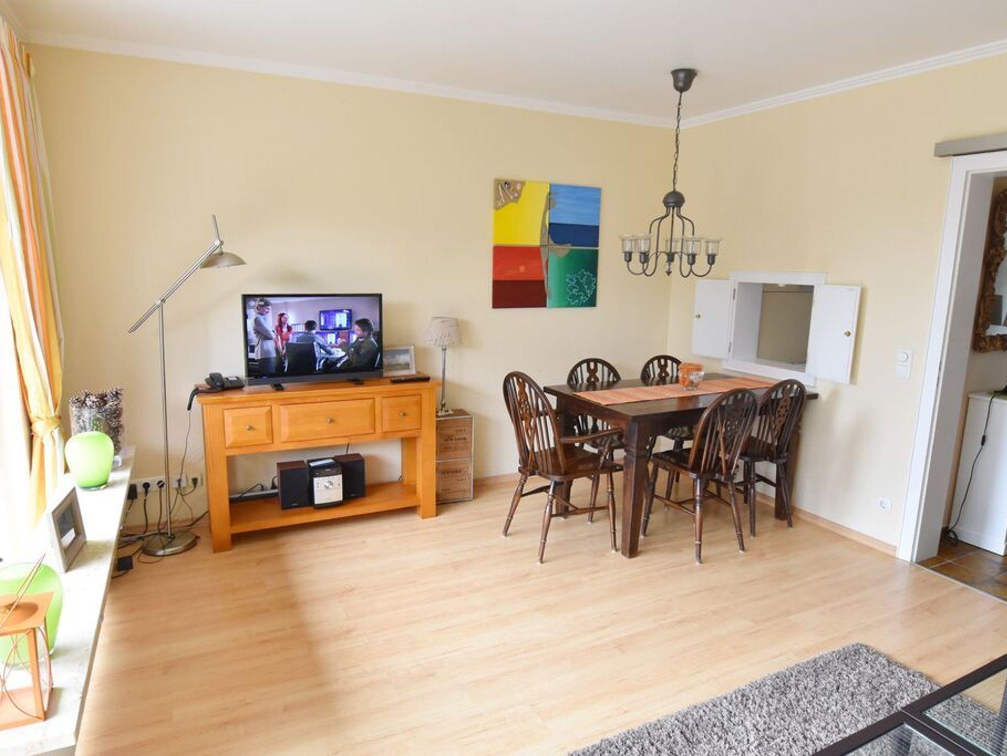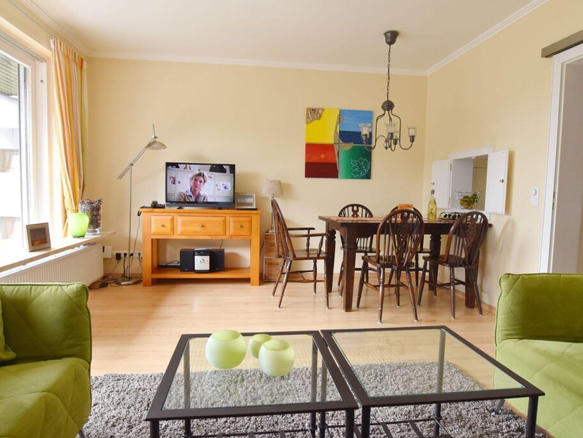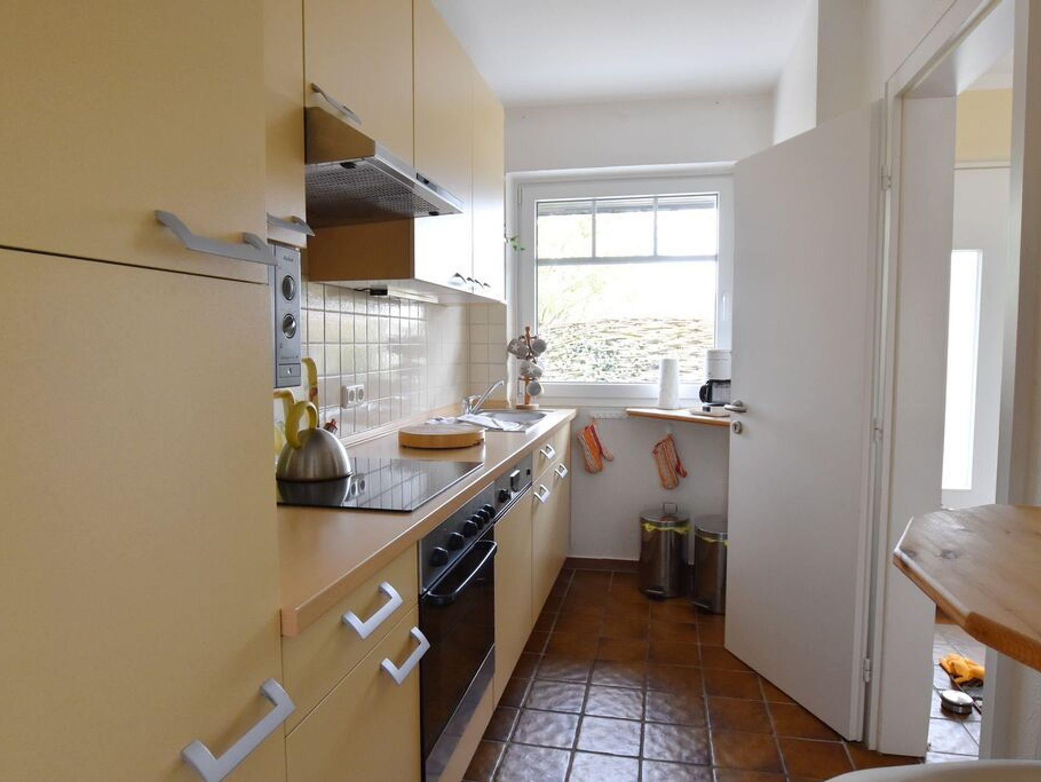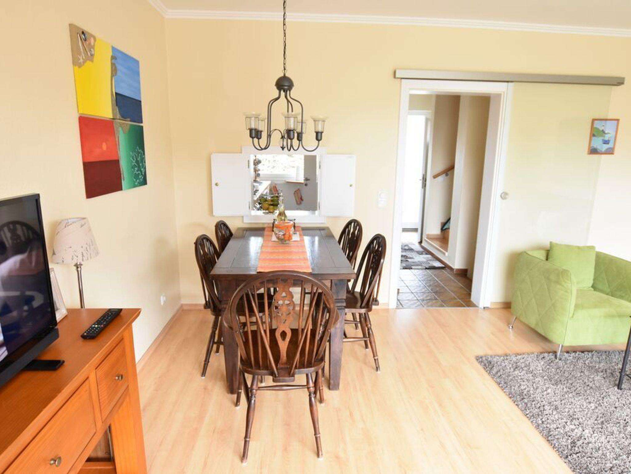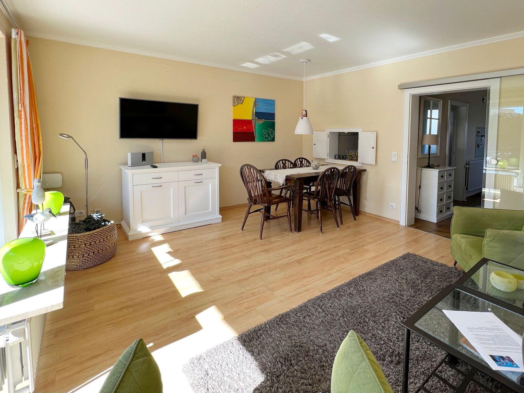 Erdgeschoss: Wohnzimmer mit Essecke und Sitzgruppe. Separate Küche mit Durchreiche zum Wohnzimmer und ein Gäste-WC