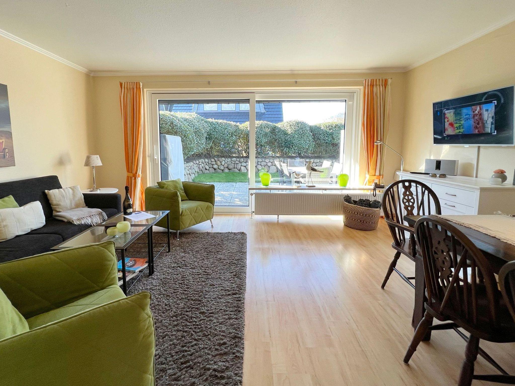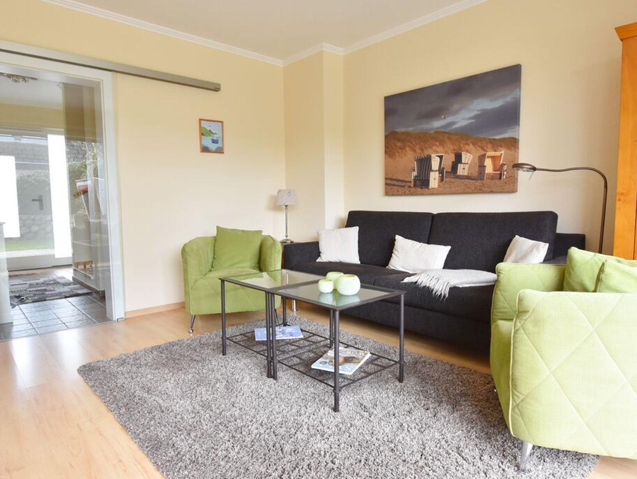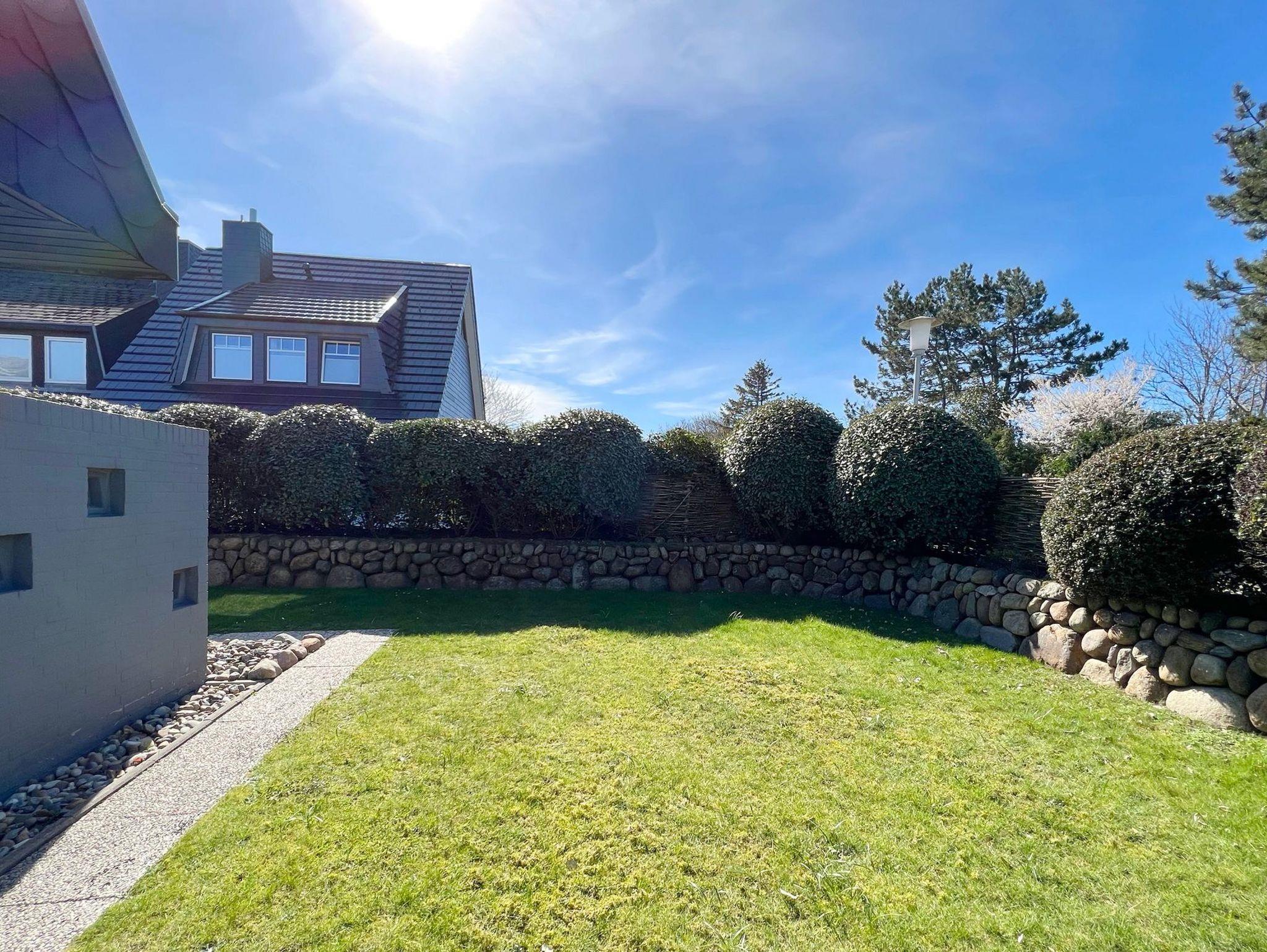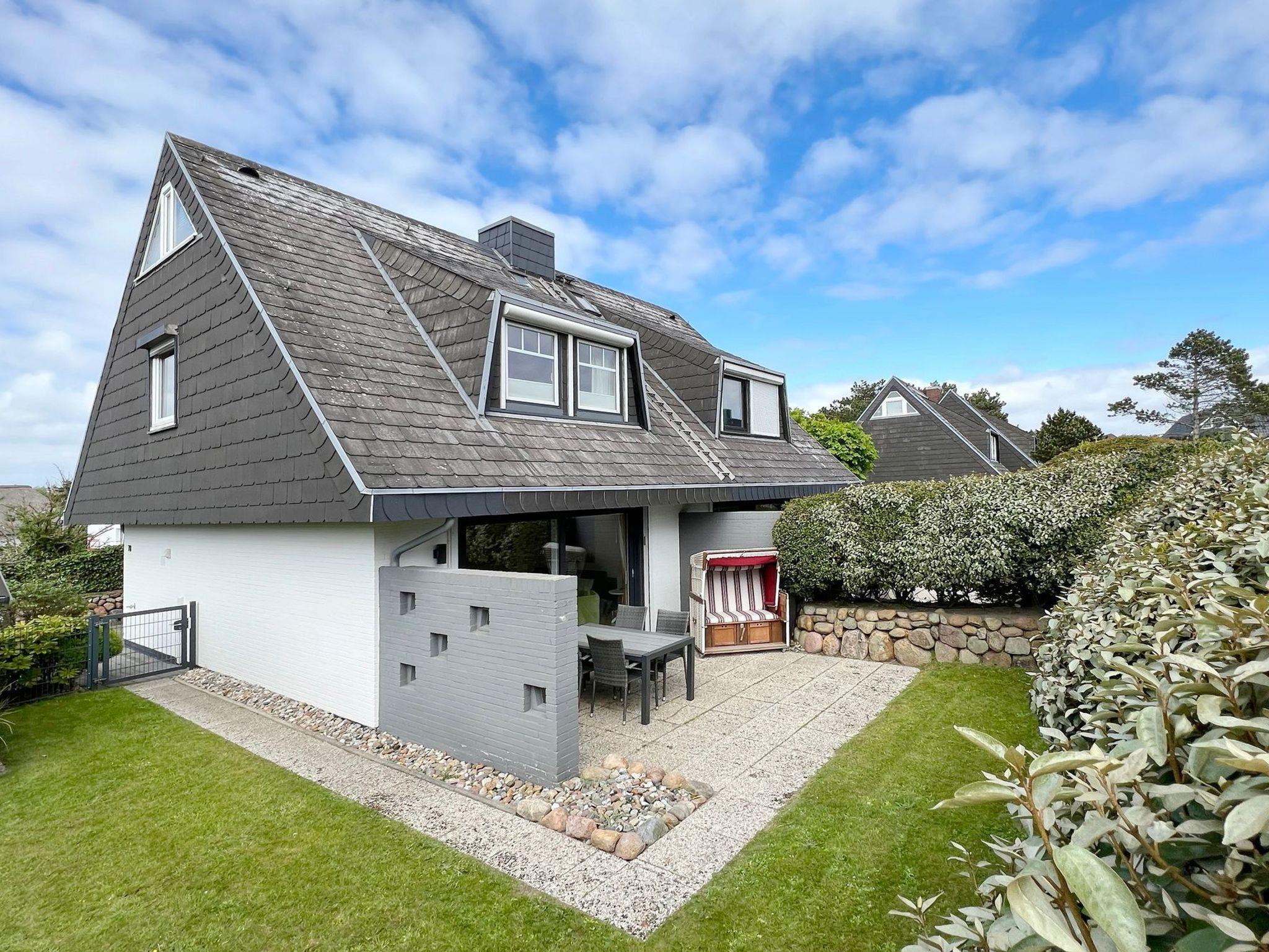 Das Ferienhaus Denappel Huis in Alt-Westerland bietet Garten, Terrasse mit Strandkorb und modernen Komfort für erholsame Urlaubstage.