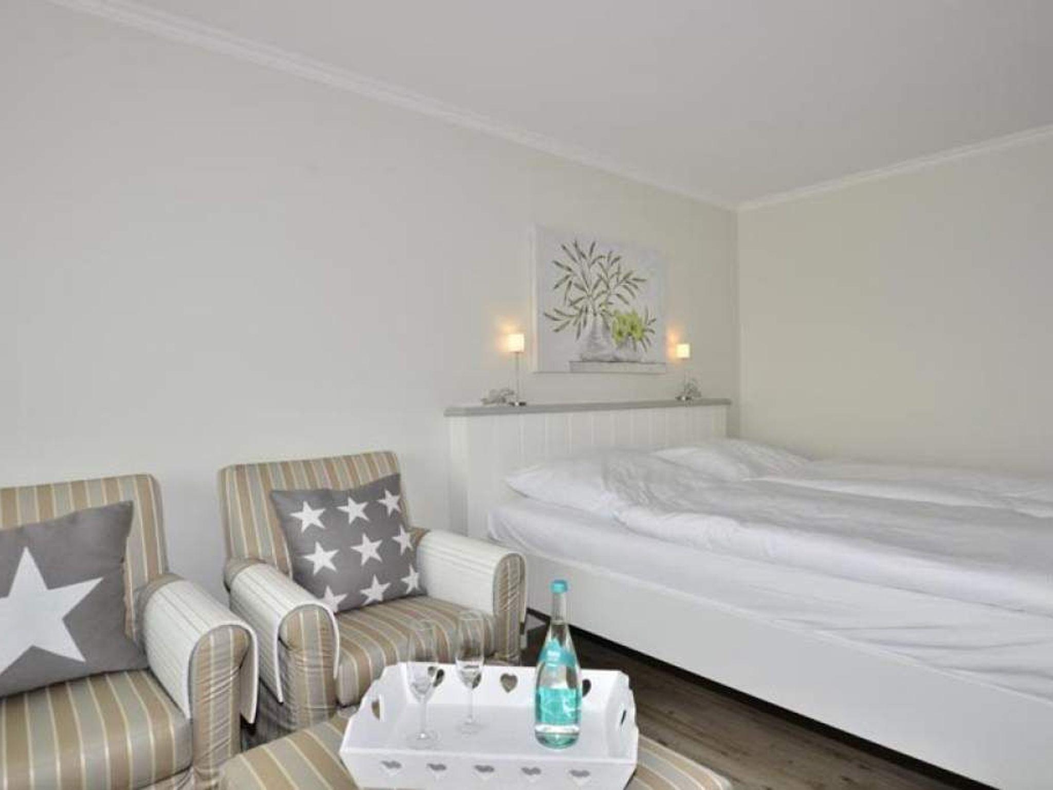 Die für 2 Personen geeignete Ferienwohnung hat eine Westloggia (Seeseite) mit Balkonmöbeln und Auflagen.
