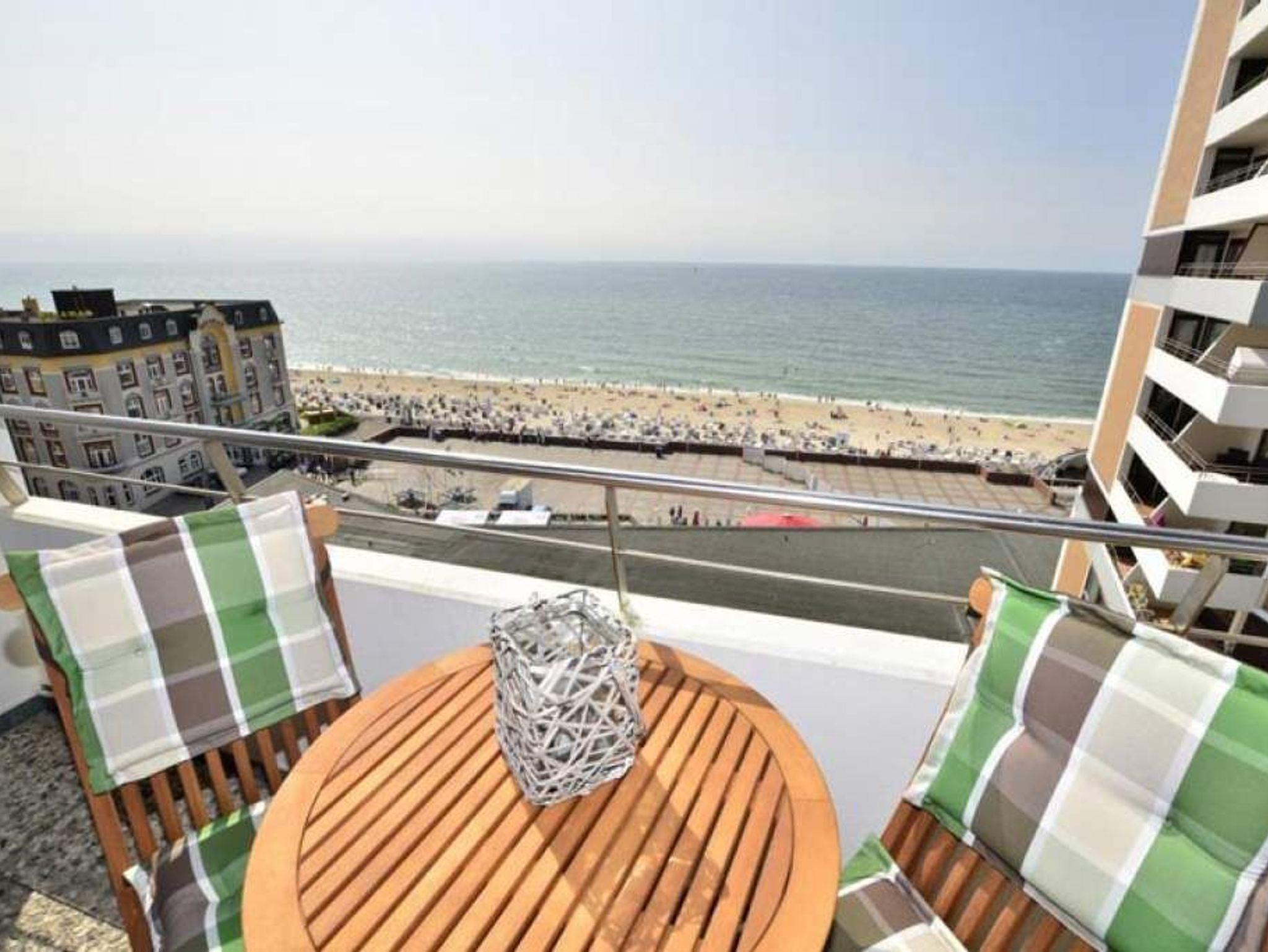 Top gelegene und im modernen Strandhaus-Stil komplett renovierte 1-Zimmer-Nichtraucher-Ferienwohnung (ca. 34 qm) mit spektakulärem Meerblick in der 7. Etage.