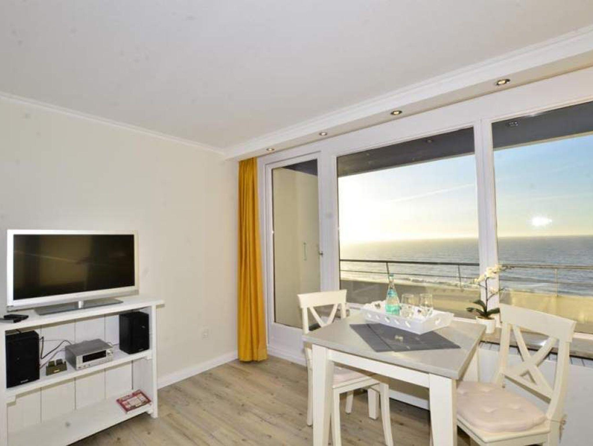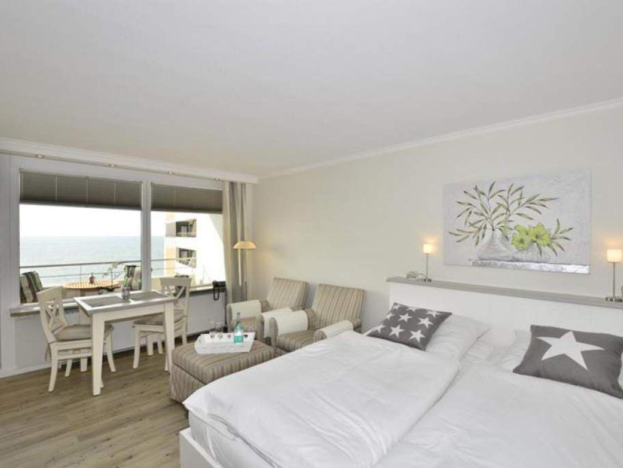 Moderne 1-Zimmer-Ferienwohnung mit spektakulärem Meerblick und Westloggia direkt am Strand in Westerland auf Sylt.