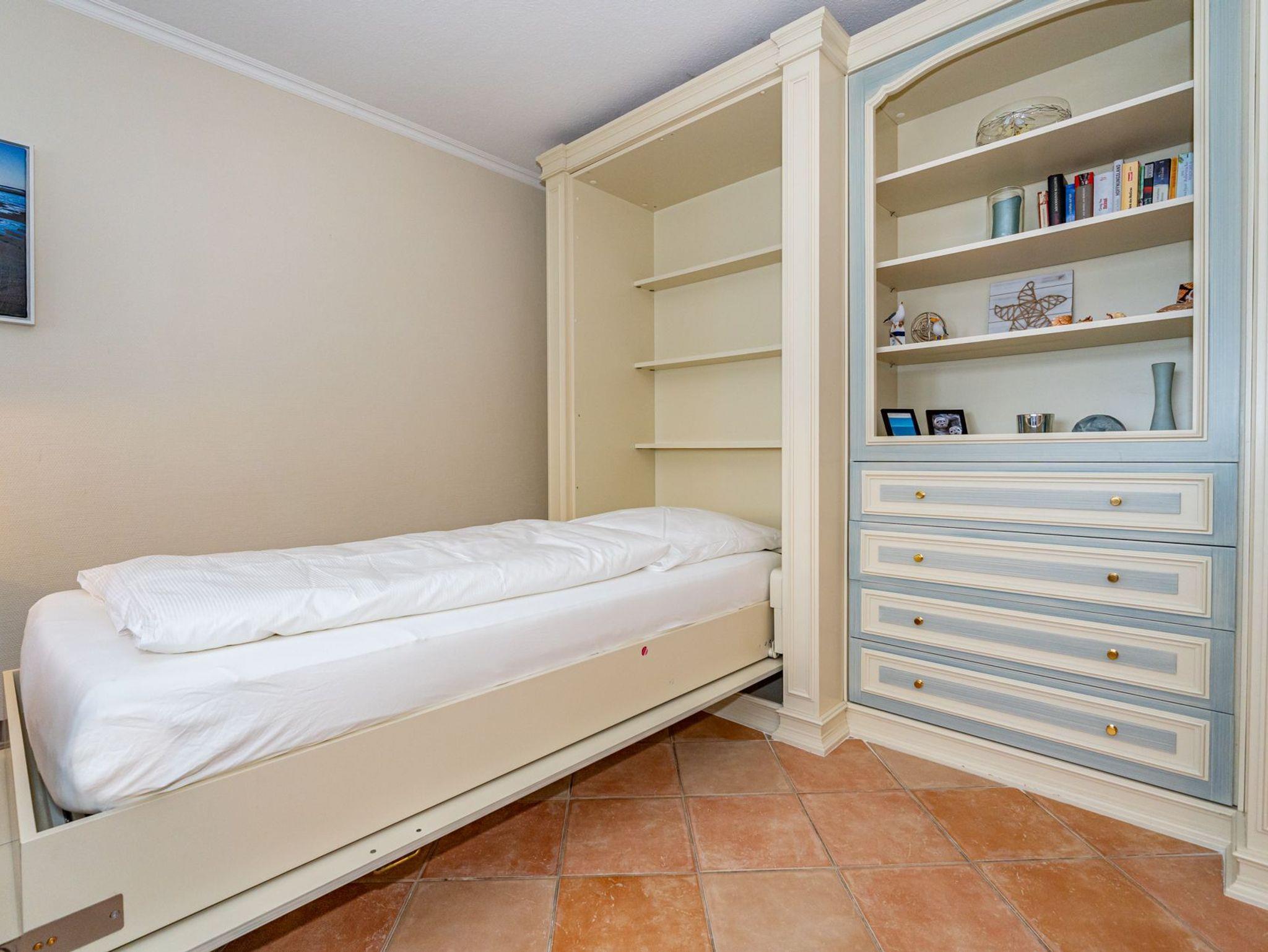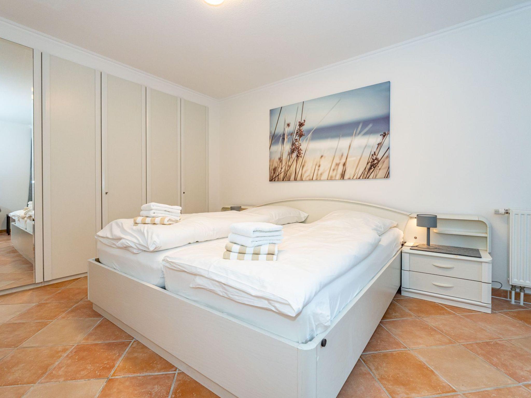 Im Schlafzimmer (mit einem weiteren Austritt zur Westloggia) befinden sich ein Doppelbett und ein Kleiderschrank.