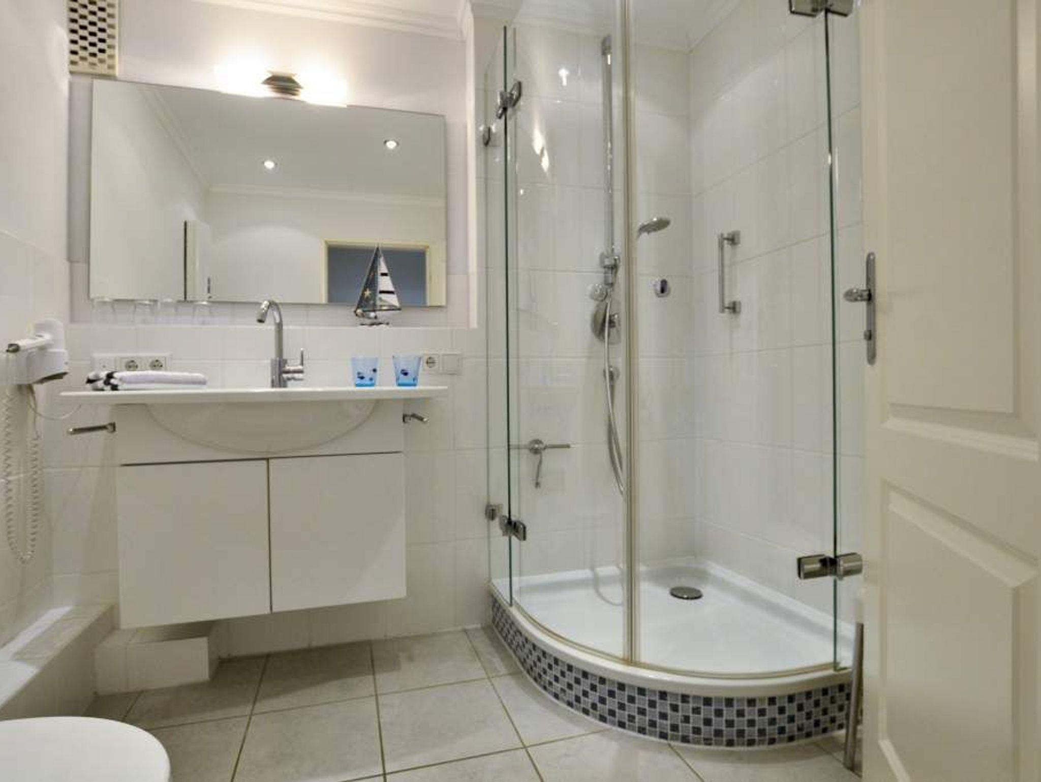 Komplett mit Fliesen ausgelegte 2-Zimmer-Nichtraucher-Ferienwohnung, ca. 51 qm im Hochparterre zur Seeseite mit Westloggia (Nachmittagssonne, mit Balkonmöbeln und Auflagen) für max. 4 Personen.