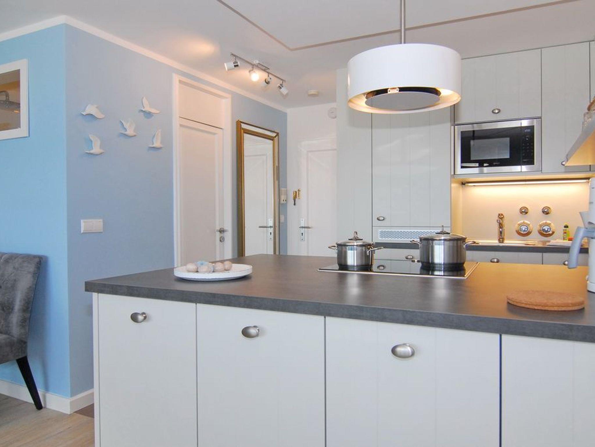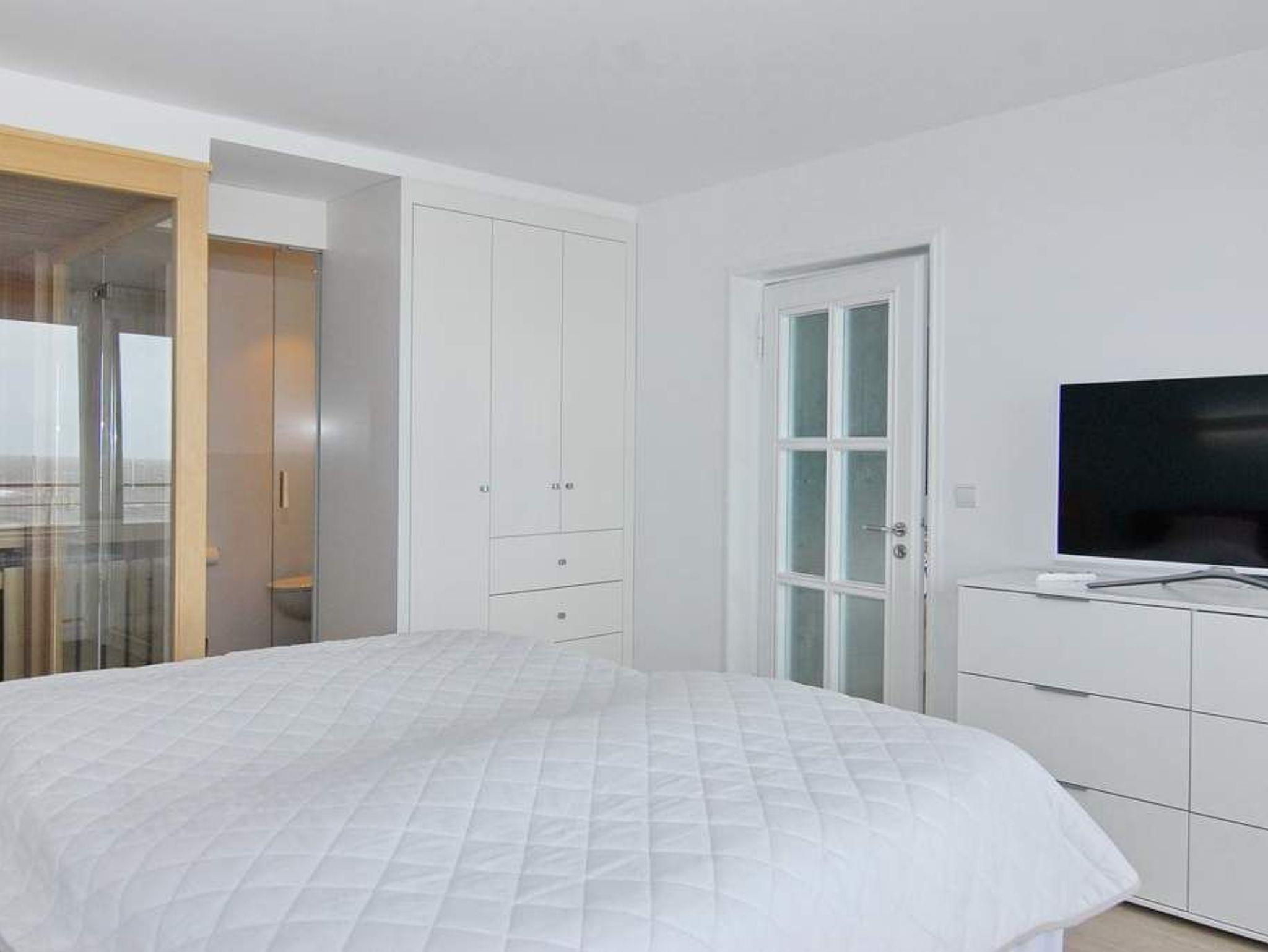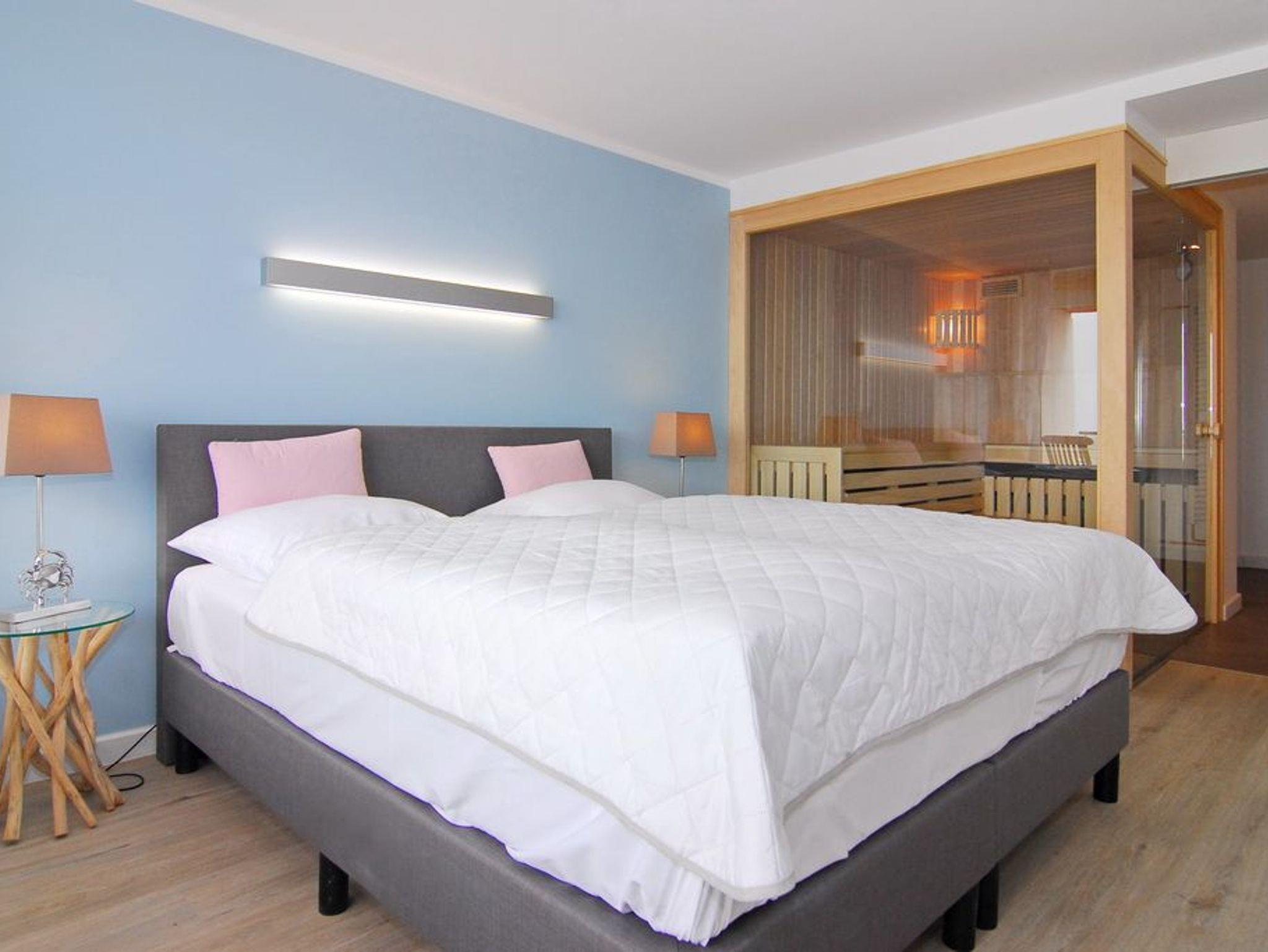 Das ist nicht zu toppen. Diese exklusive 2-Zimmer-Ferienwohnung im Haus Metropol bietet neben einer wunderschönen Ausstattung eine Sauna mit Blick auf das Meer. Genießen Sie auf 76m² ein elegantes Wohnzimmer mit geräumiger Sitz- und Essecke und einer Küche, die keine Wünsche offen lässt. Der freie Küchenblock bietet viel Arbeitsfläche, so dass hier jeder kulinarischer Traum erfüllt werden kann. Die Sitzecke lässt sich zu einer Schlafgelegenheit mit einer Liegefläche von 140 x 200 cm umfunktionieren. Das separate Schlafzimmer mit Doppelbett (2x90x200), Kleiderschrank und Flat-TV verfügt genauso wie das Wohnzimmer über einen eigenen Westbalkon. Direkt ans Schlafzimmer angrenzend befindet sich die finnische Sauna mit großer Panoramascheibe, so dass Sie von hier aus auf das Meer schauen können. Zwei Duschbäder mit Regenduschen sorgen für die entsprechende Abkühlung. Ein Abstellraum mit Schrankfläche bietet nochmals Platz für Kleidung und Gepäck. Diese Wohnung ist eine strikte Nichtraucher-Wohnung, Tierhaltung ist hier nicht gestattet. Ein PKW-Stellplatz kann kostenpflichtig gebucht werden. Bettwäsche und Handtücher sind zur Anreise aufgezogen.
