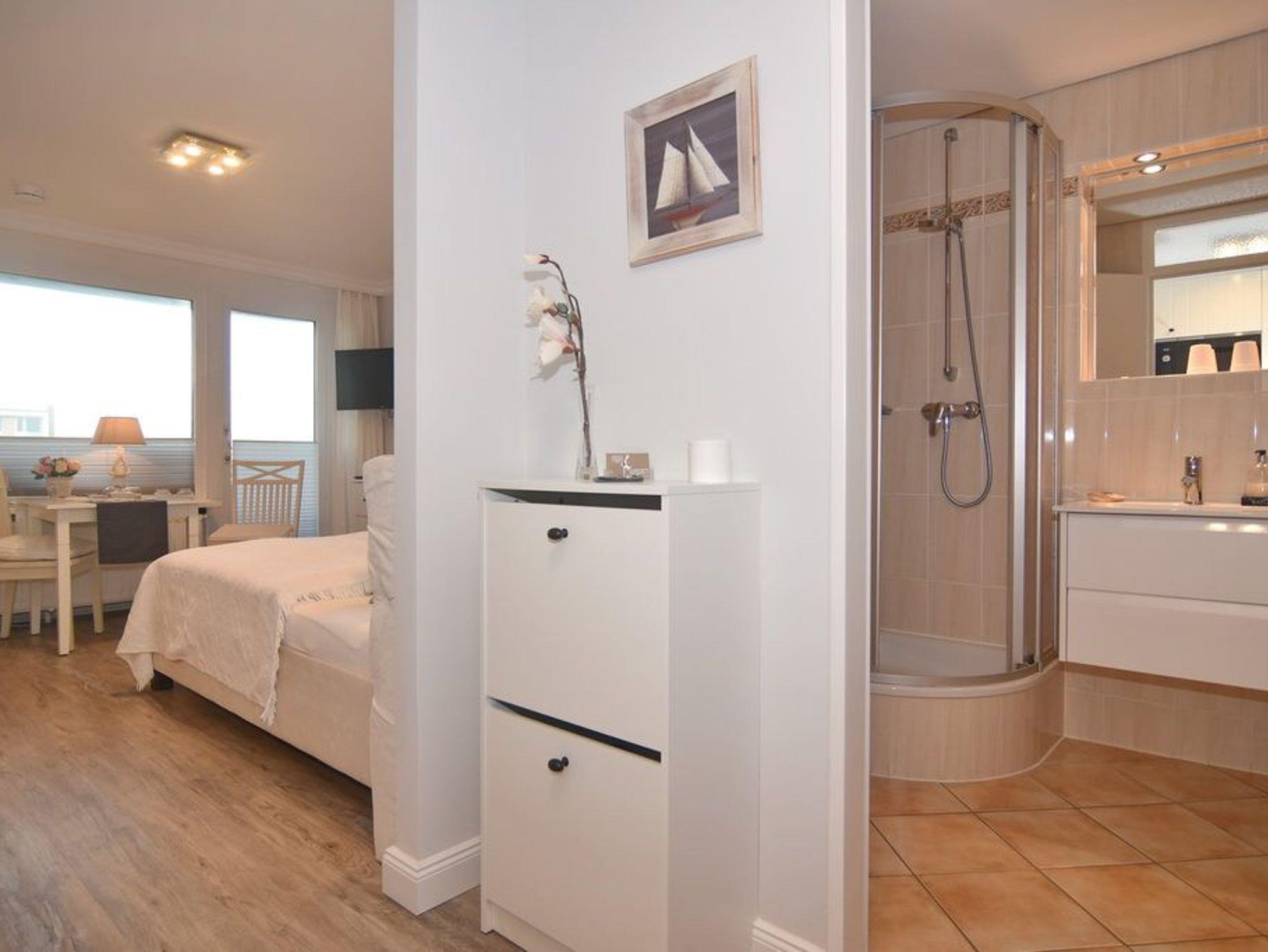 Moderne 1-Zimmer-Wohnung mit Balkon und Küchenzeile in Westerland auf Sylt, nur 50 m vom Strand entfernt.