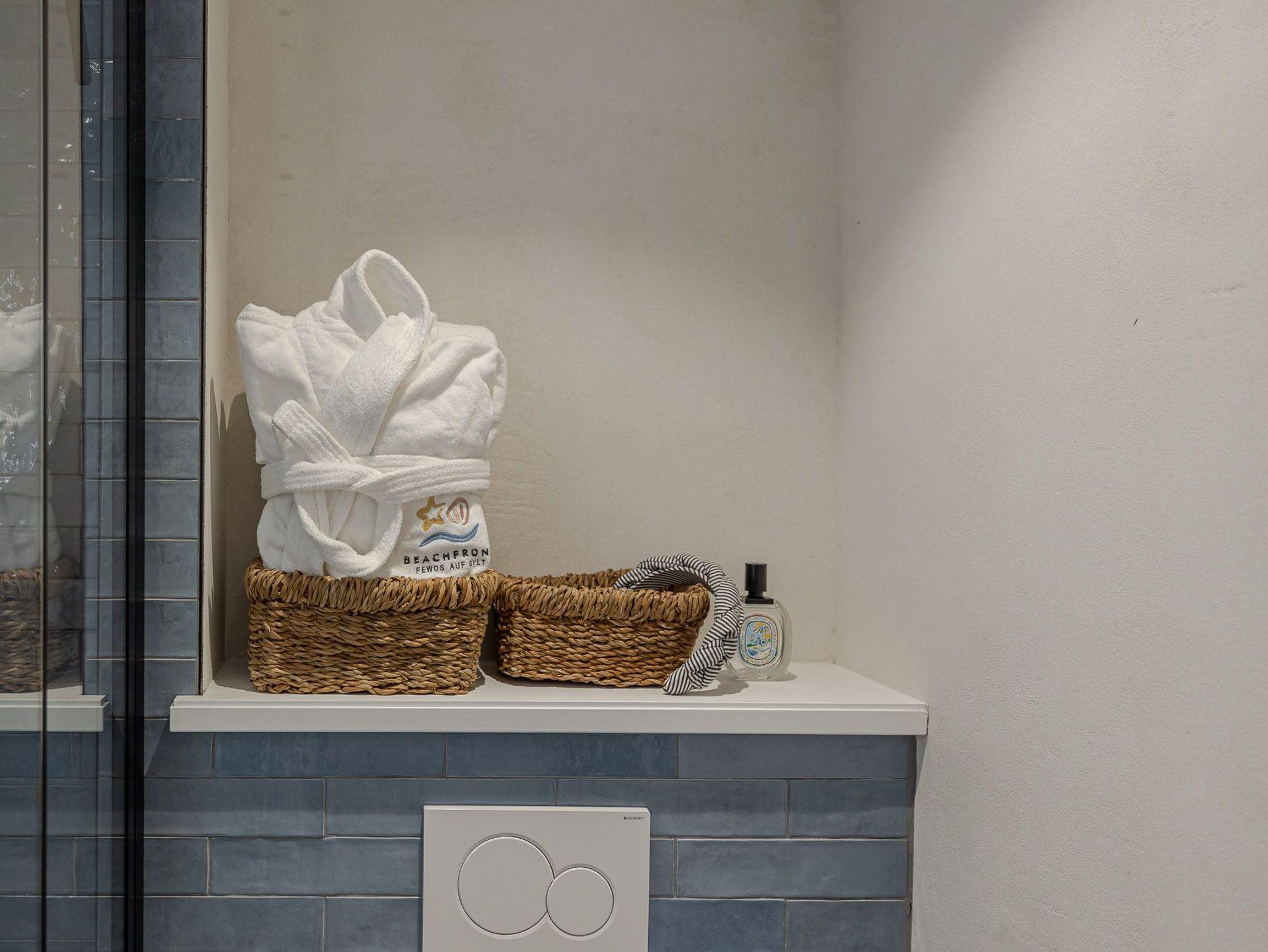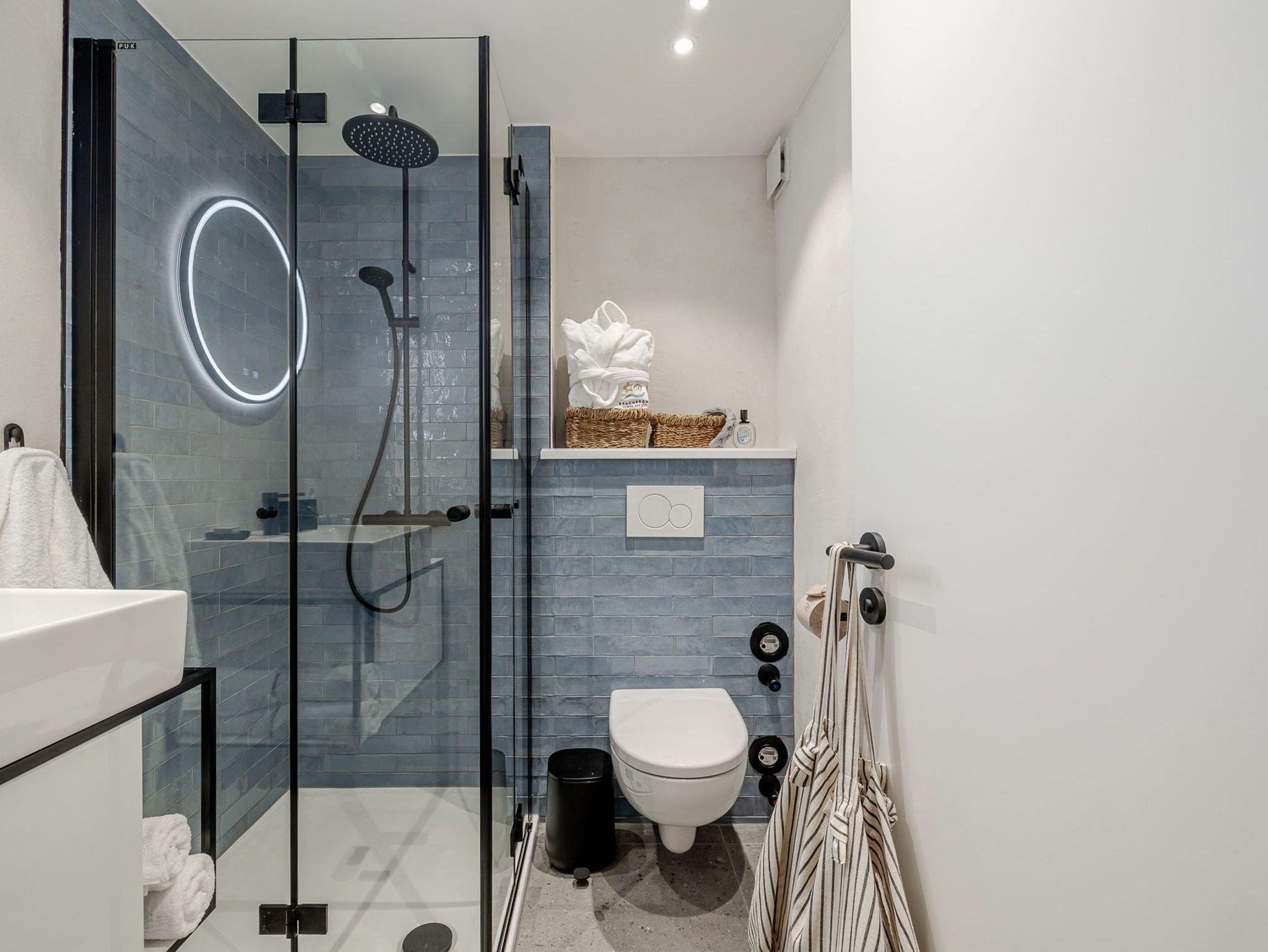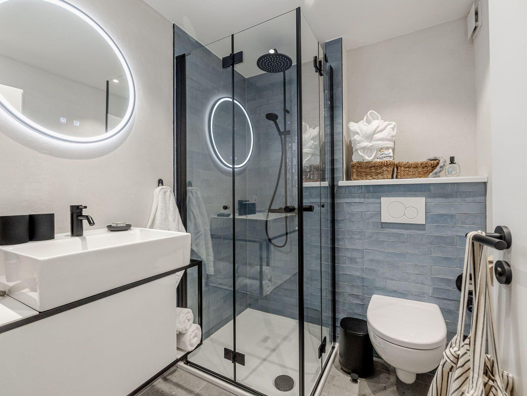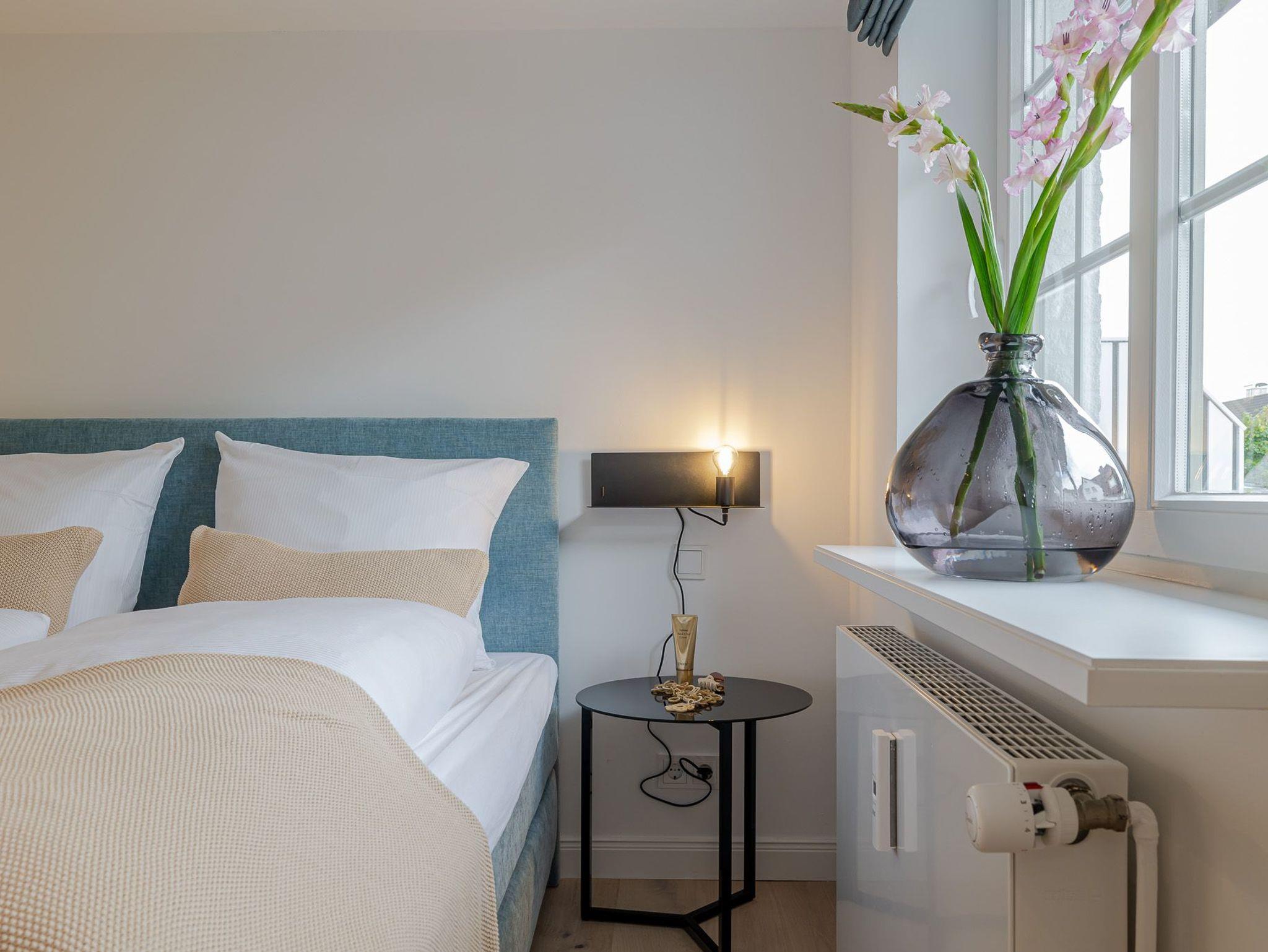 Beginnen Sie jeden neuen Tag nach einer erholsamen Nacht, welche Sie in Ihrem Schlafzimmer dank des höchst komfortablen Boxspringbetts der Marke Schramm verbracht haben. Direkt angrenzend befindet sich Ihre private Wellness-Oase. Das moderne Badezimmer, in den „Inselfarben“ Meerblau und Sand, erwartet Sie mit einer prickelnden Regendusche sowie einer angenehmen Fußbodenheizung, welche gerade an den etwas frischeren Tagen ihre wohltuende Wirkung voll entfaltet.