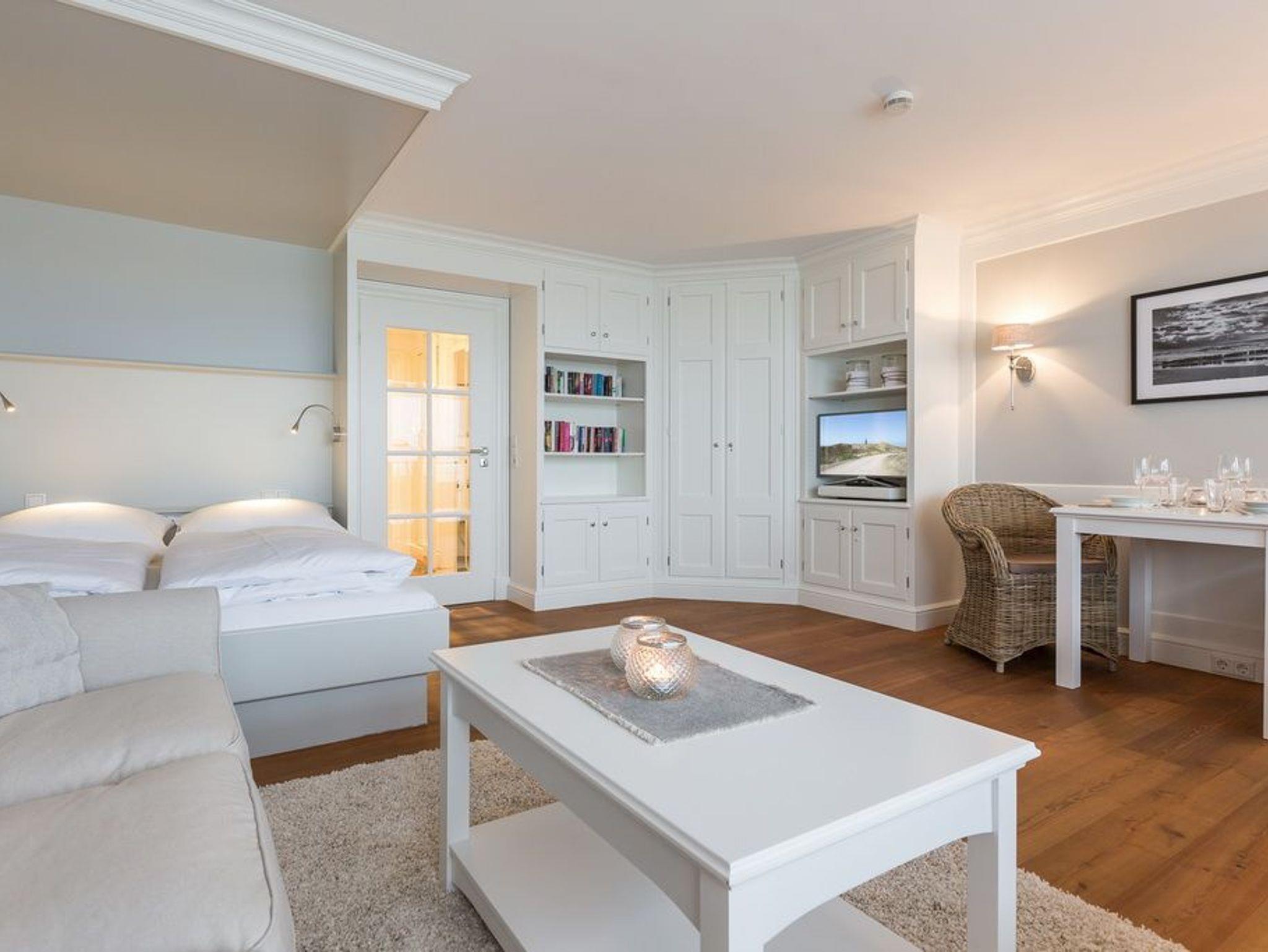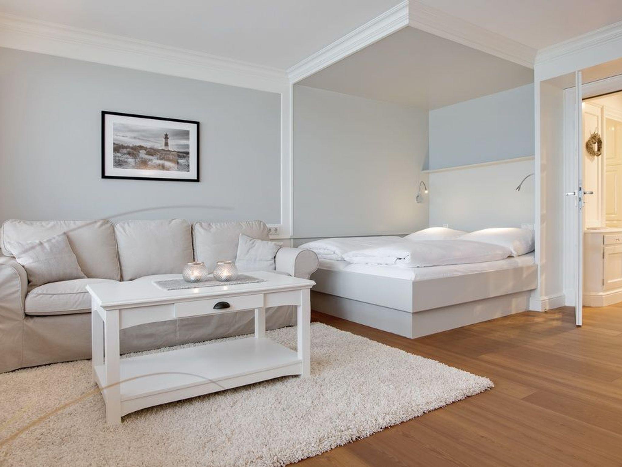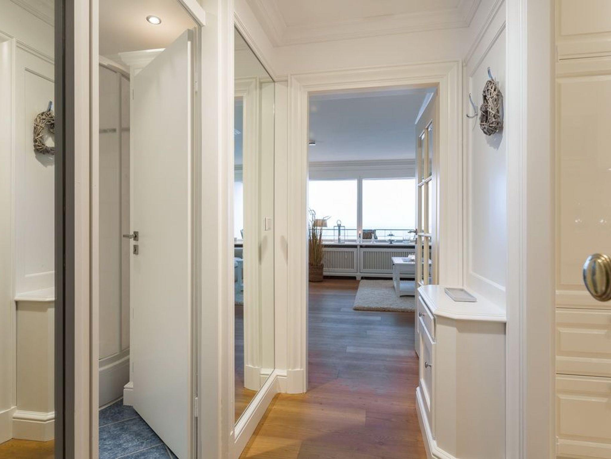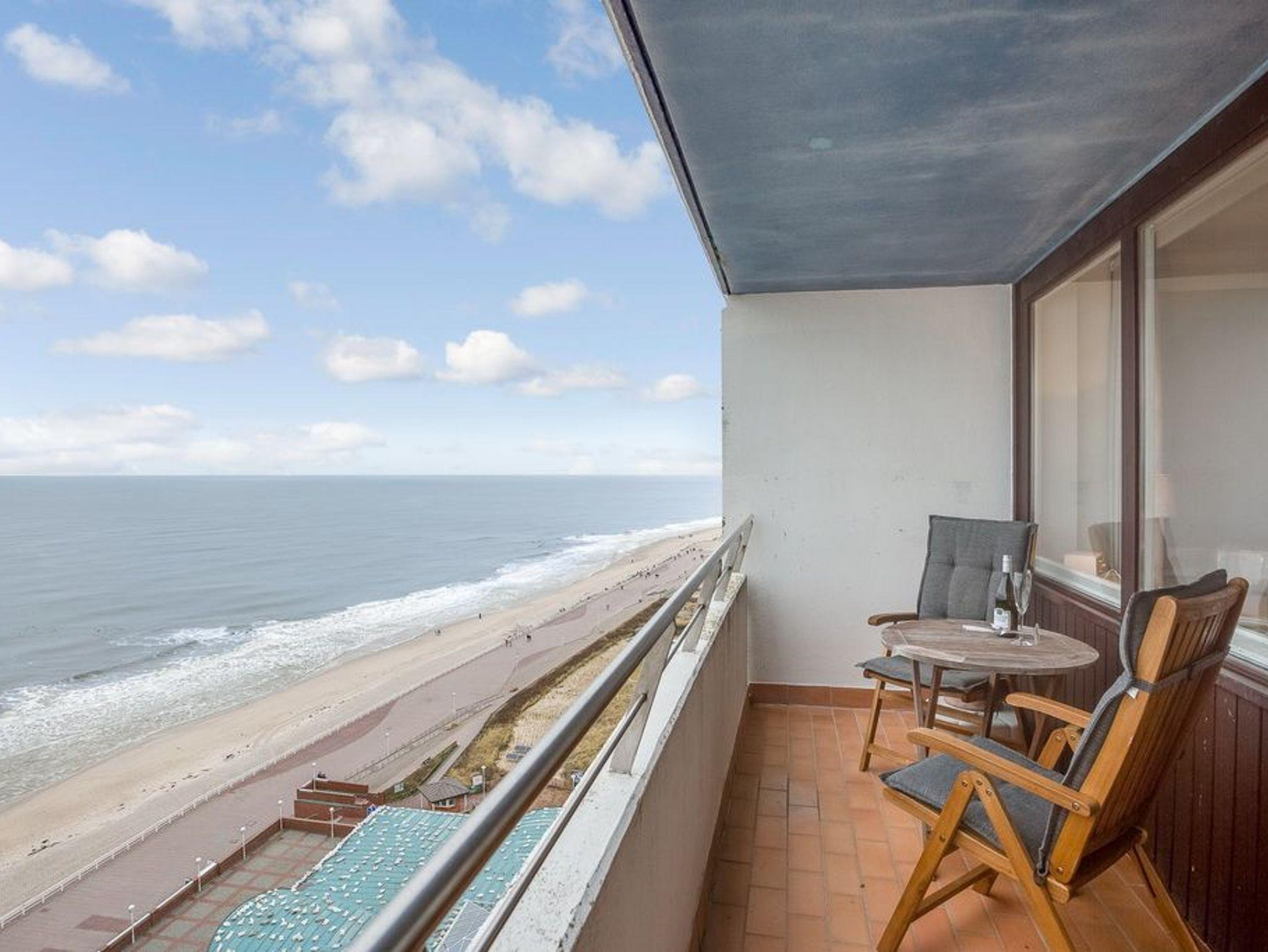 Exklusive 1-Zimmer-Ferienwohnung im 12.OG des Haus Metropol mit einmaligem Blick auf die Nordsee. Ca. 43m². Wohn- und Schlafzimmer mit eingebautem Doppelbett (2x80x200cm), Essplatz am Fenster und Couchecke mit Beistelltisch. Kabel-TV, Radio, WLAN (ohne Gewähr). Separate Küche mit Geschirrspüler, Mikrowelle und Cerankochfeld. Schickes Badezimmer mit Dusche. Garderobe im Flurbereich. Großer Westbalkon. Nichtraucherwohnung. Keine Tierhaltung.Bettwäsche und Handtücher sind zur Anreise aufgezogen. Ein PKW-Stellplatz kann kostenpflichtig zugebucht werden.
