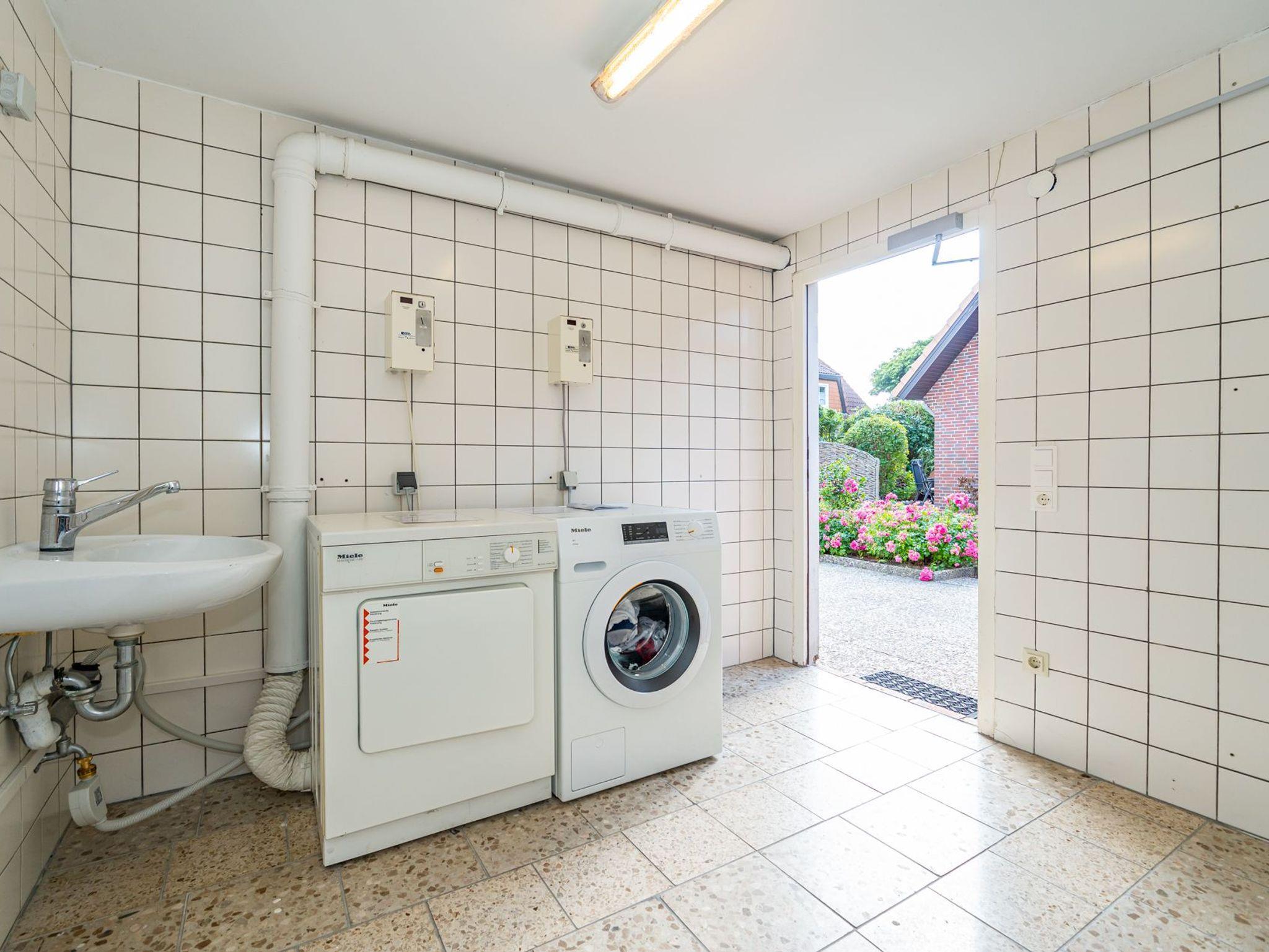 Am Haus steht eine kostenlose Einzelgarage, ein überdachter, von außen nicht einsehbarer geschützter Fahrradabstellplatz, eine Waschküche (Waschmaschine + Trockner gegen Münzeinwurf) und ein Kinderwagenabstellraum inklusive zur Verfügung. In dem an die Terrasse angrenzenden Abstellraum befindet sich außerdem ein Weber-Grill (Gas) und ein Bügelbrett mit Bügeleisen.