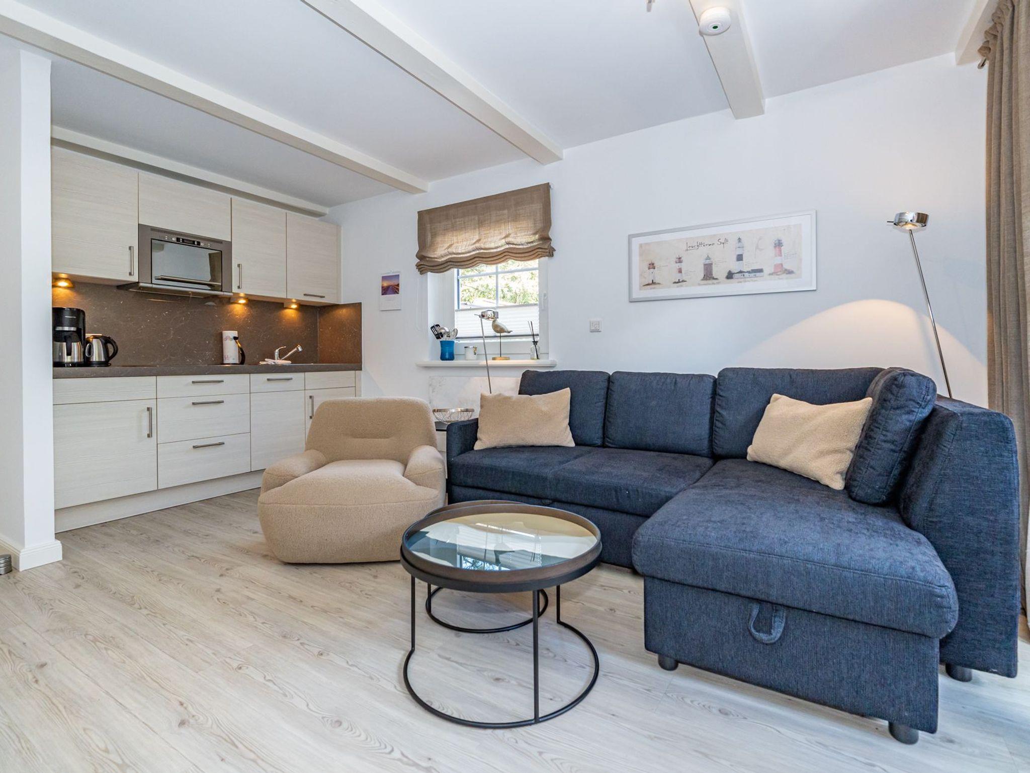Exklusive 2-Zimmer-Ferienwohnung in Westerland mit Südterrasse, Kamin und Einzelgarage in ruhiger, strandnaher Lage.