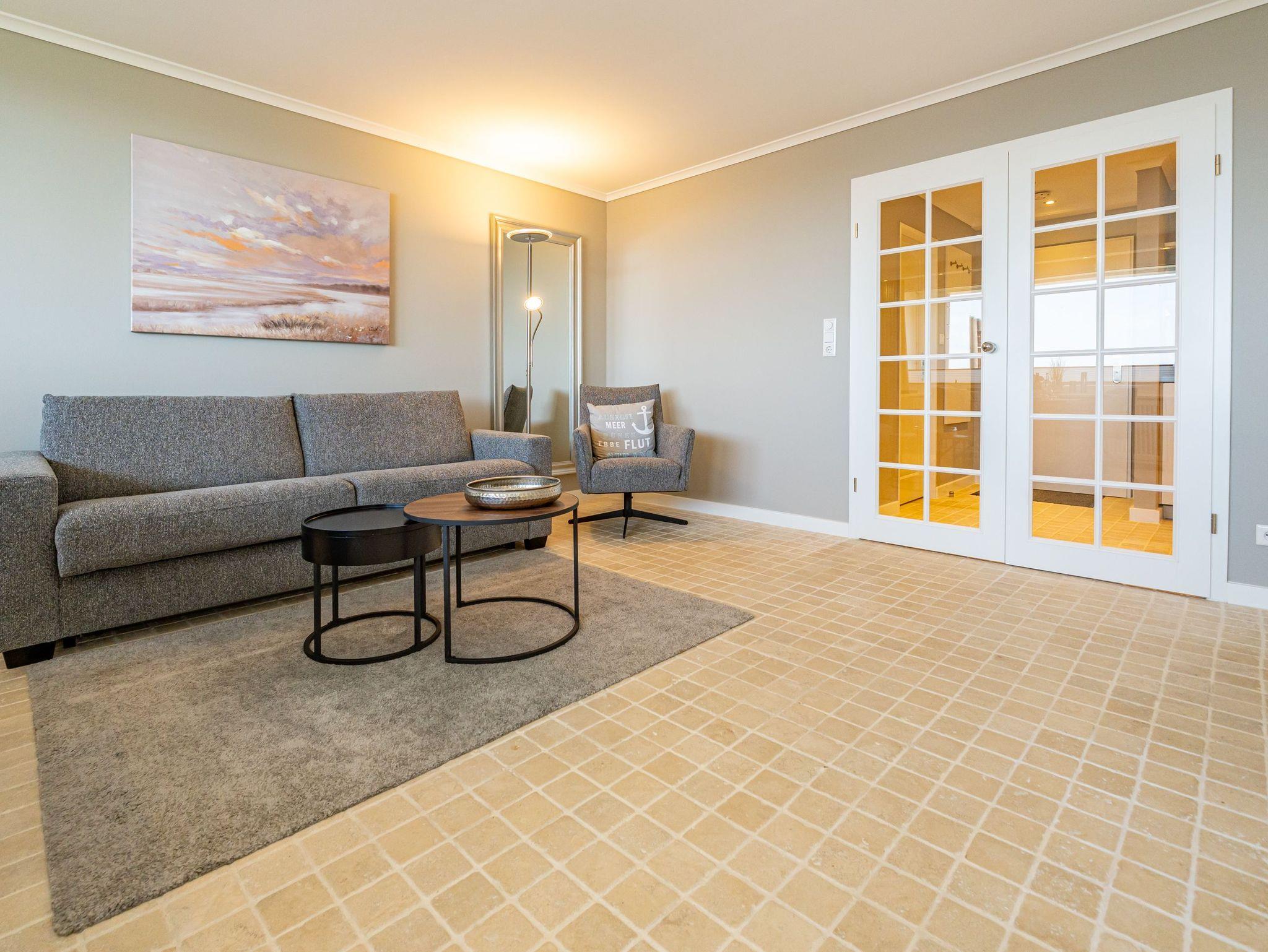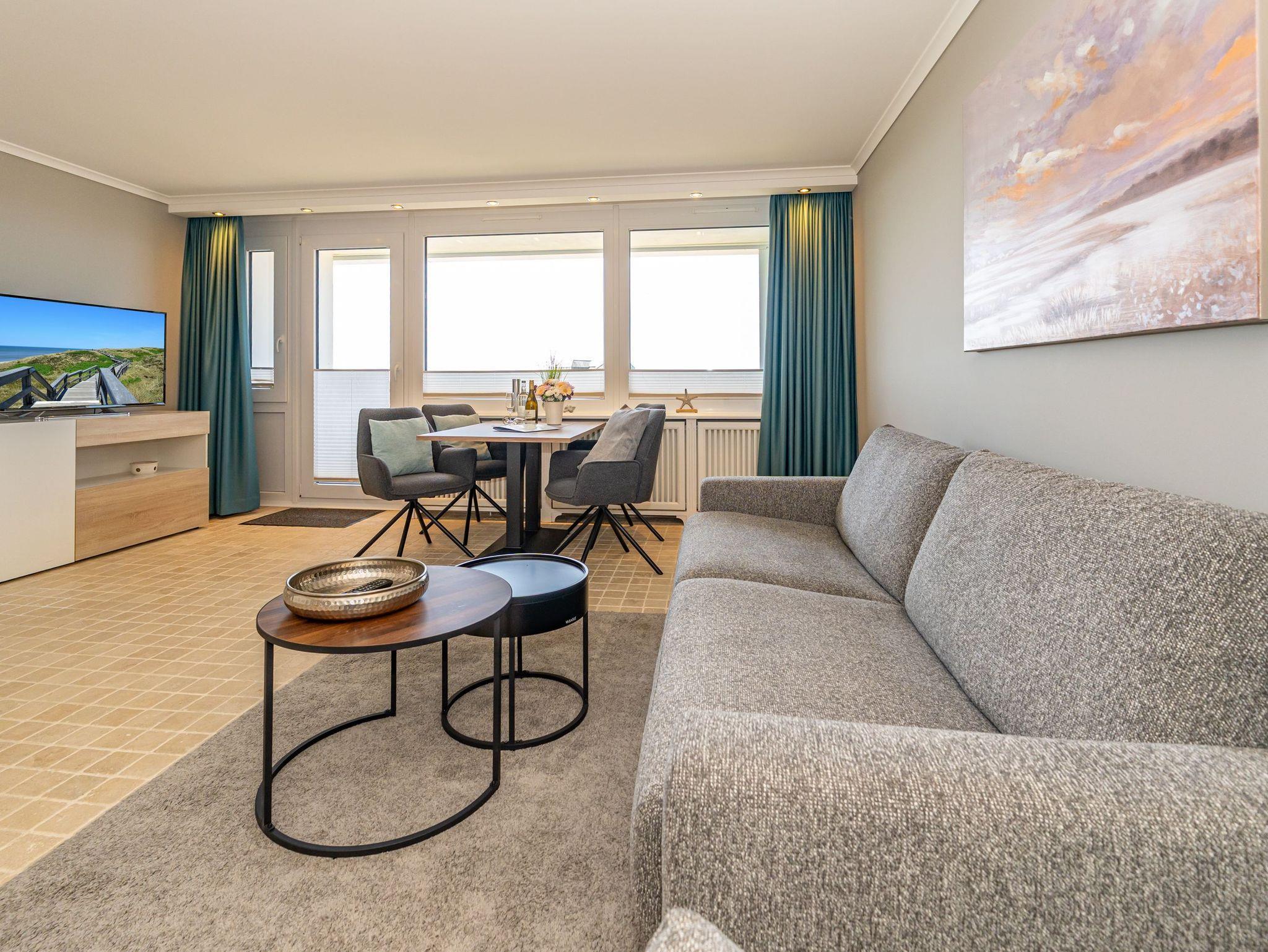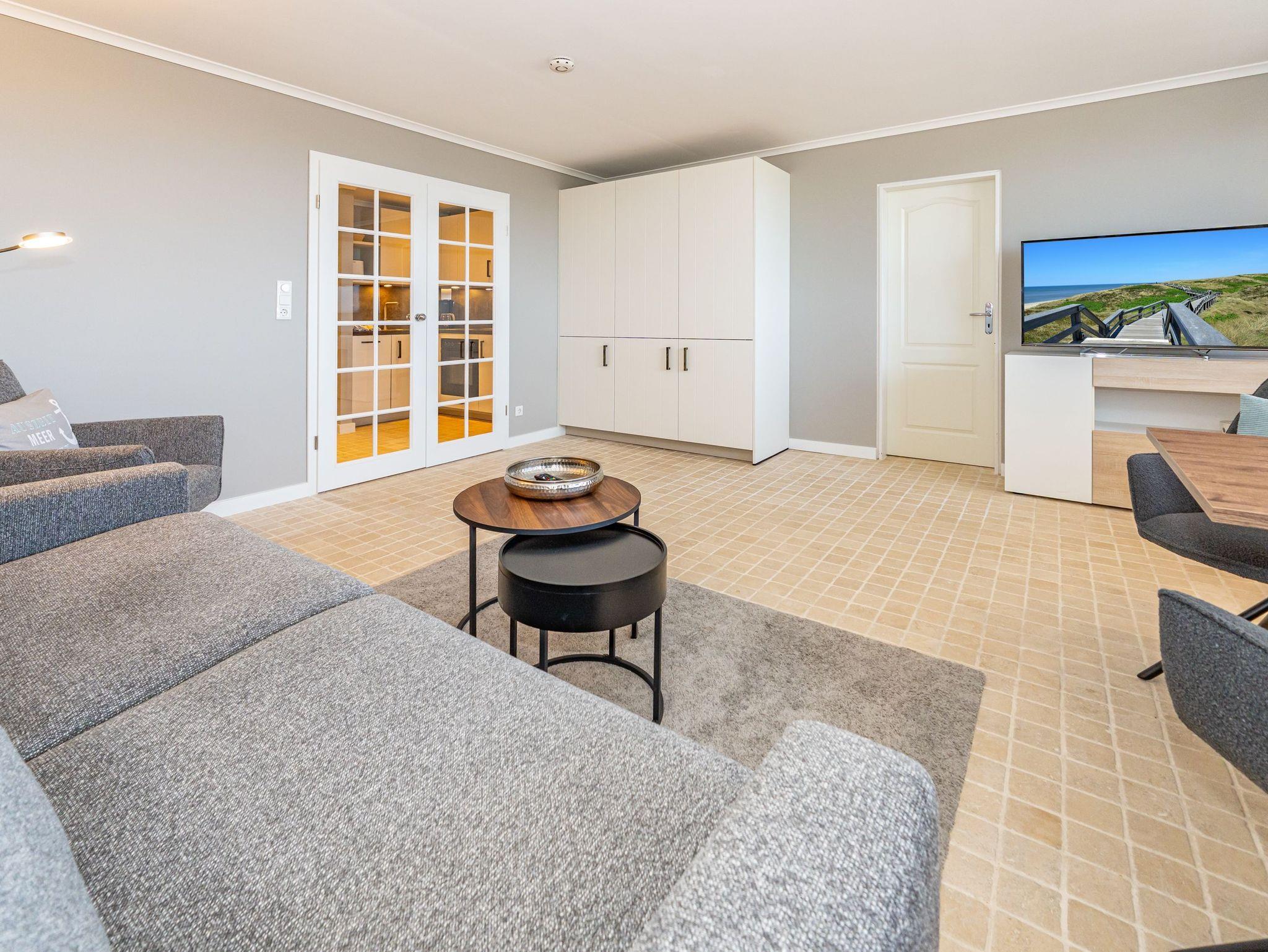 Stilvolle, frisch renovierte Ferienwohnung in Westerland mit Naturstein und Meerblick, ideal für erholsame Tage auf Sylt.