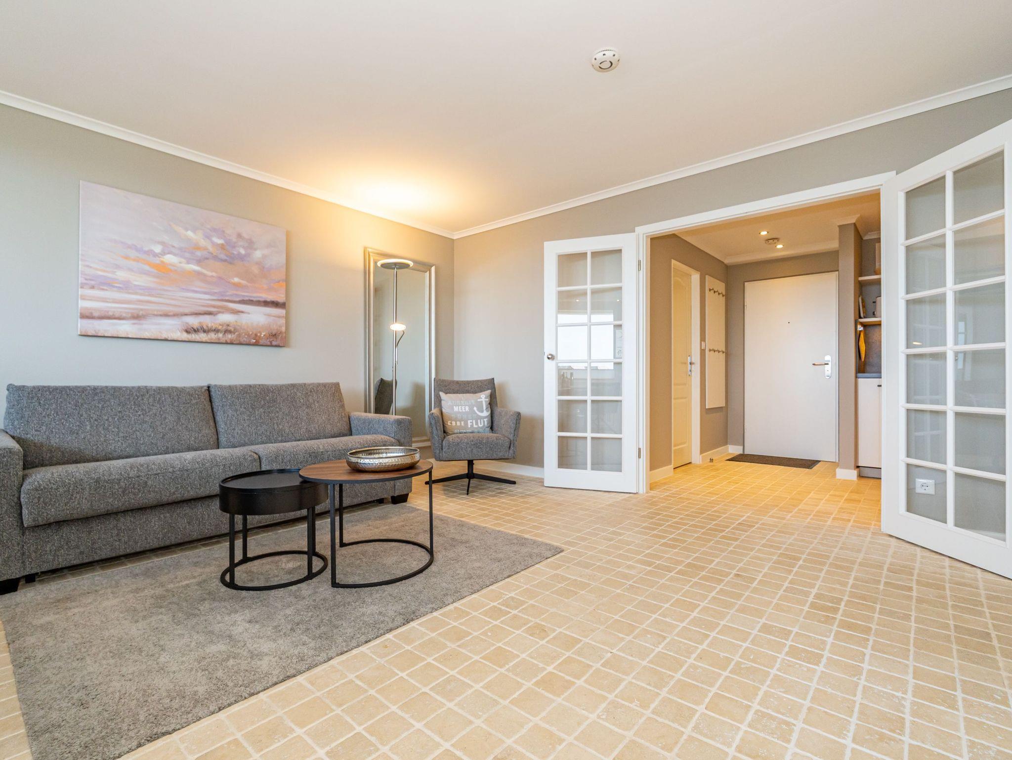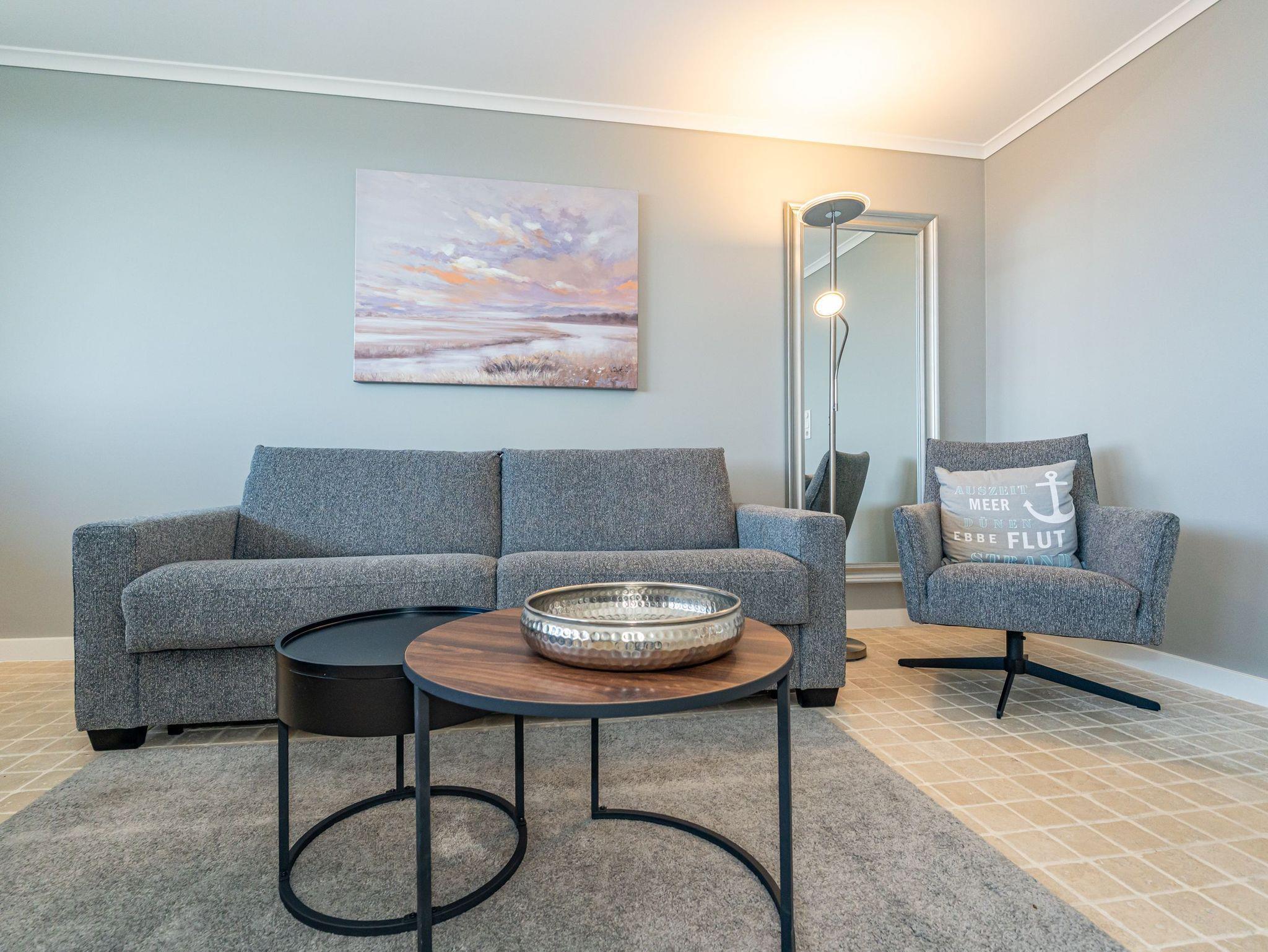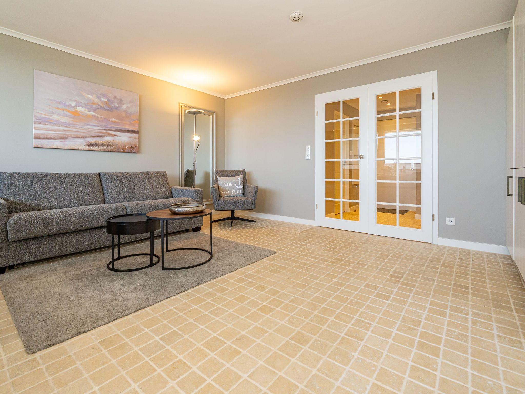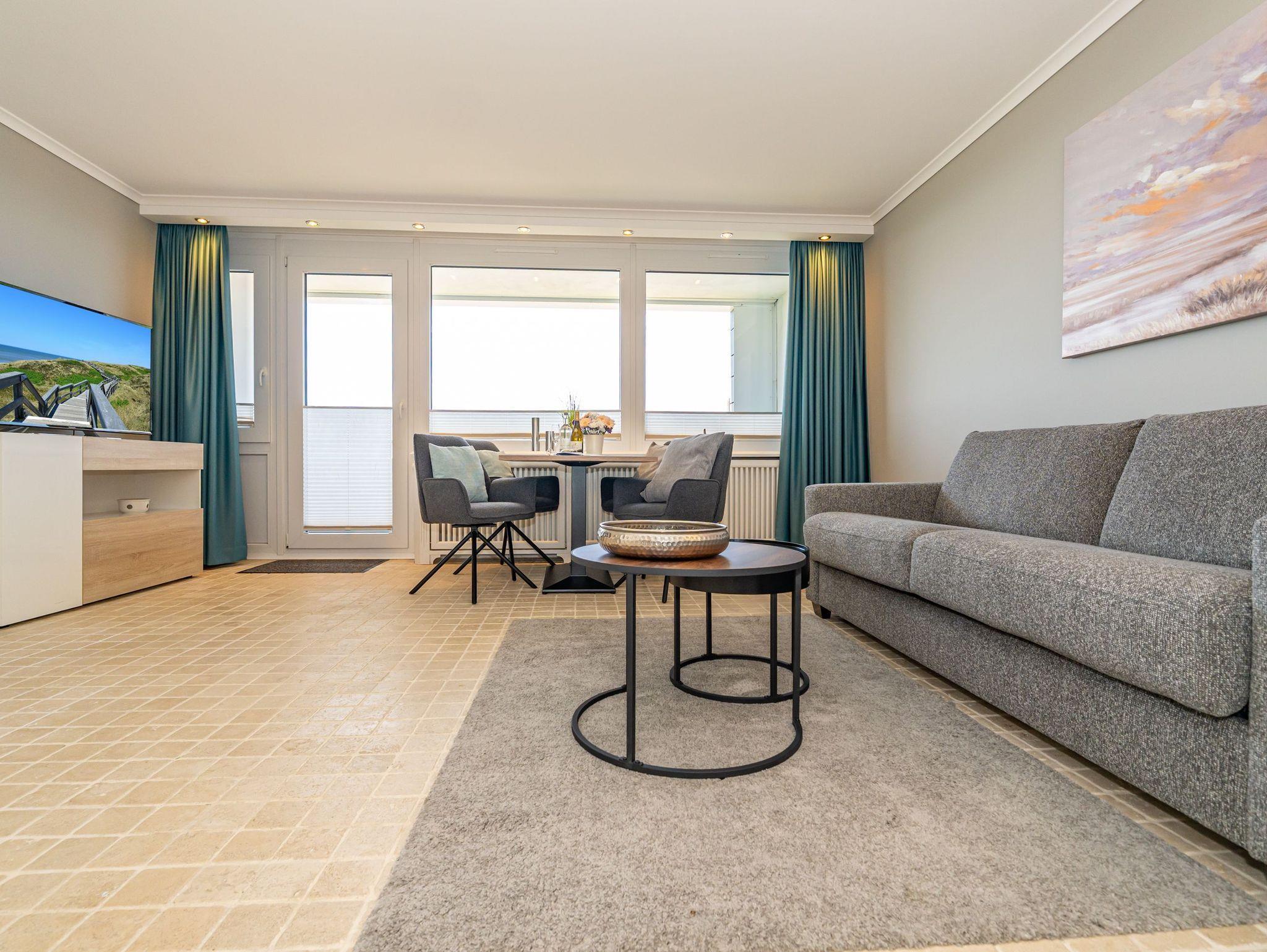Stilvolle, frisch renovierte Ferienwohnung in Westerland mit Naturstein und Meerblick, ideal für erholsame Tage auf Sylt.