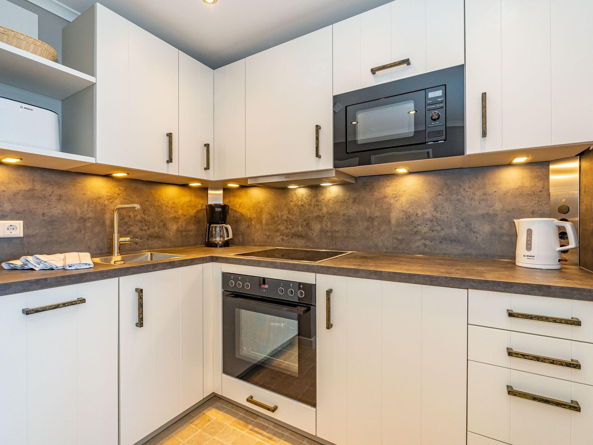 Die neue Küche ist mit Geschirrspüler, Nespresso-Maschine, Mikrowelle, Backofen, Ceranfeld und Kühlschrank (mit 3*Gefrierfach) ausgestattet. Kaffeemaschine, Wasserkocher und Toaster gehören zur Grundausstattung.